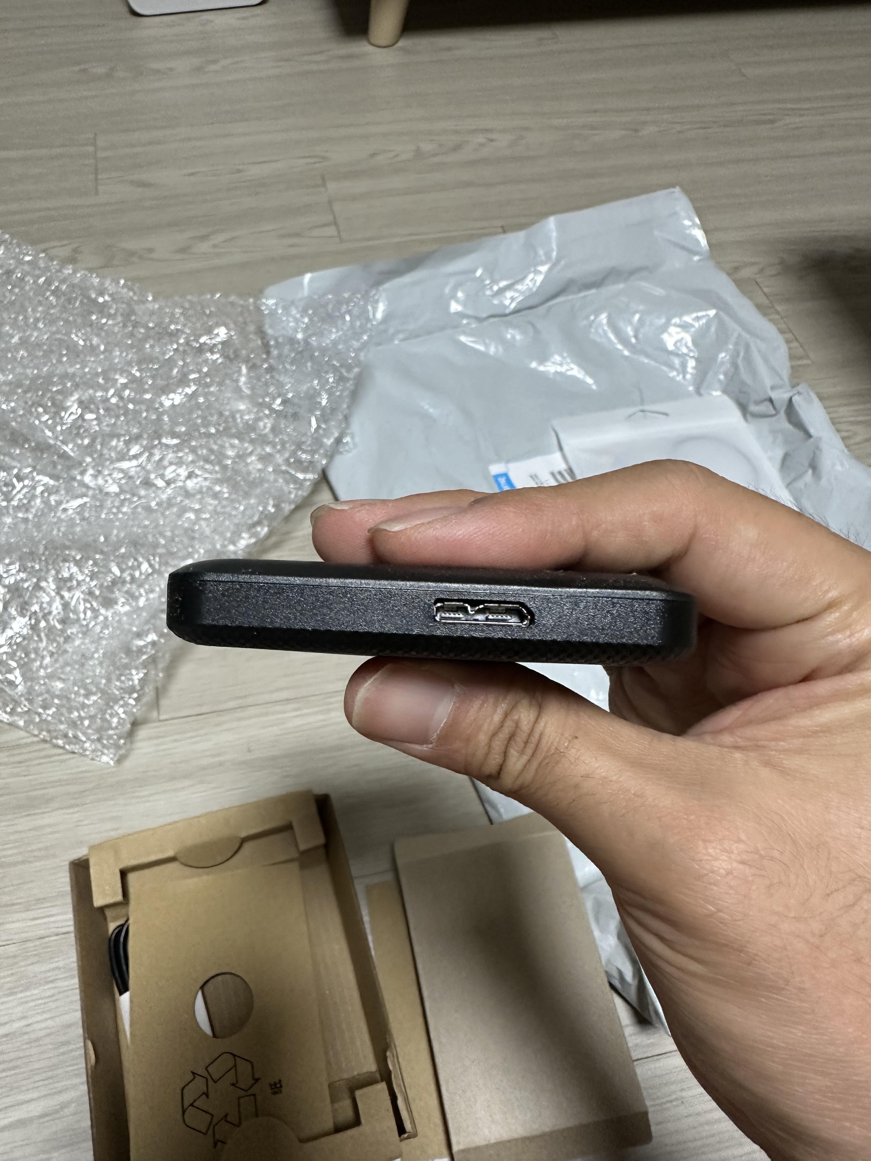 - 보통 국내에서 생산되는 외장하드의 경우에는 반대편 케이블은 USB입니다.