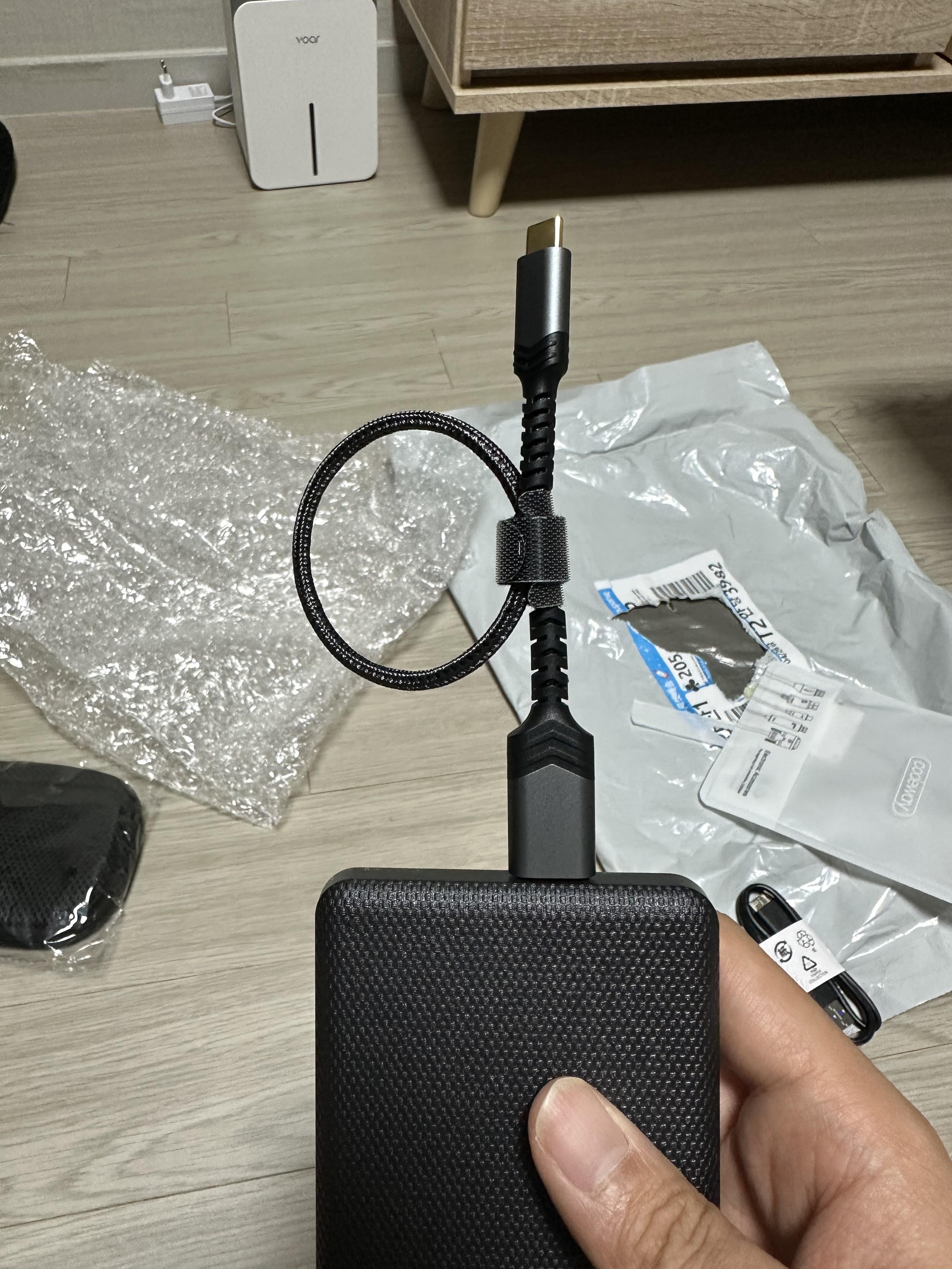 코드웨이 USB C타입 to 마이크로B 케이블의 경우 깔끔한 케이브리 스트랩으로 구성되어이있습니다. 따라서 깔끔하게 보관하고 보관할 수 있었습니다.