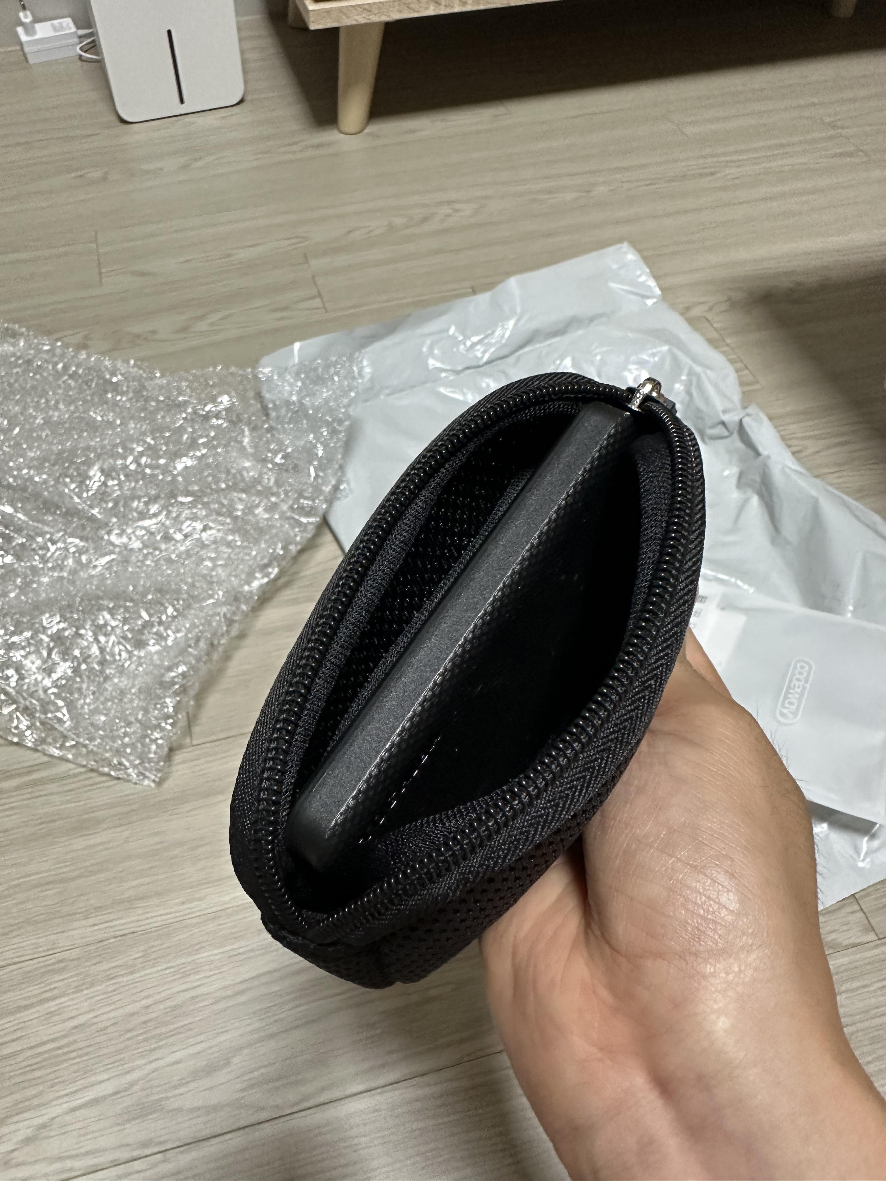 도시바 외장하드를 구매하면 제공되는 파우치 입니다. 파우치는 무겁지도 않습니다. 가벼운 도시바 외장하드를 파우치에 쏙 들어갑니다. 보통 무상으로 제공되는 파우치의 경우 냄새가 나거나 상태가 안좋은 경우도 있는데요. 재질 상태도 괜찮고 들고 다니기에도 좋았습니다.