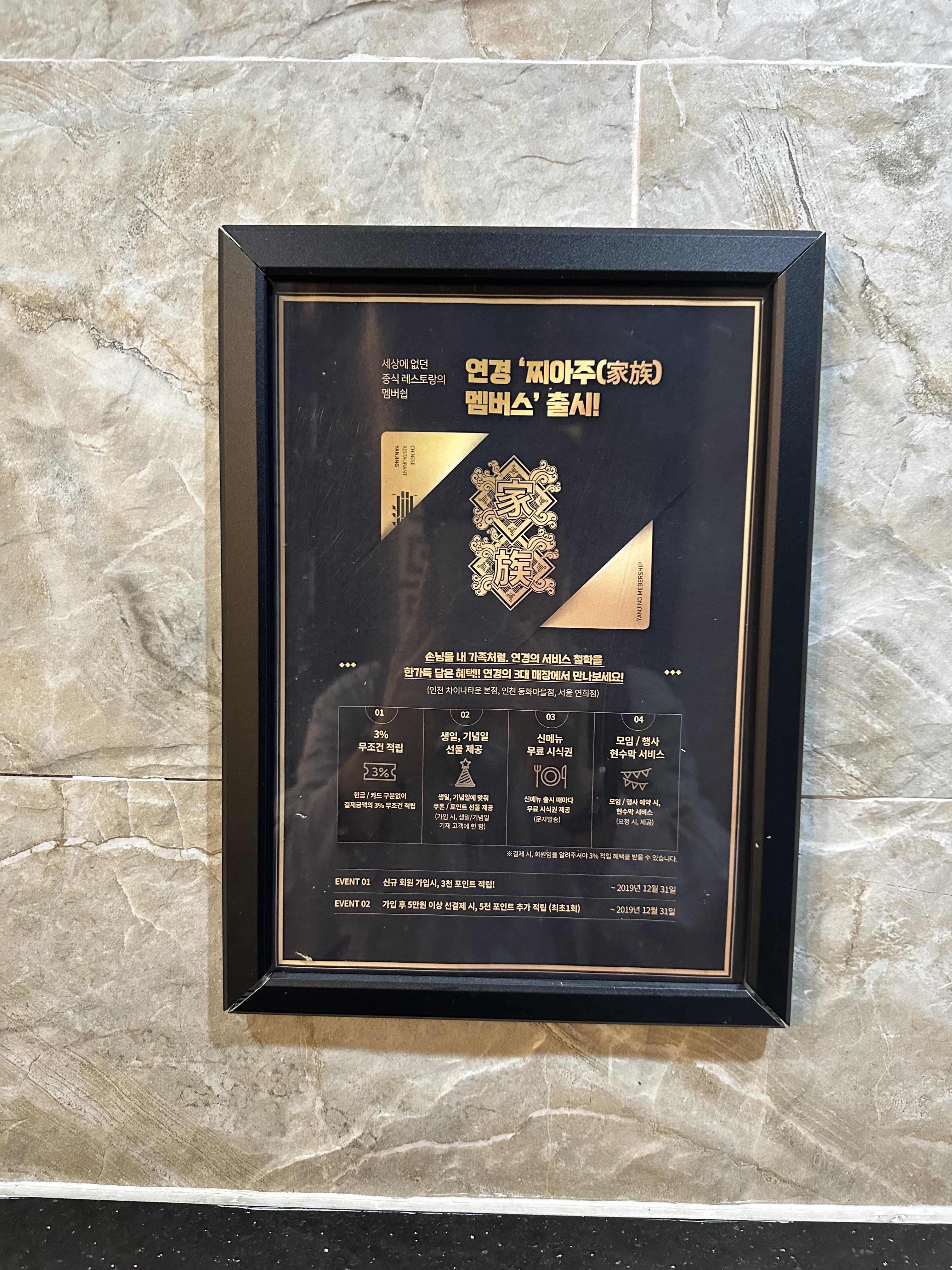 연경은 다른 중국집과는 다르게 멤버십이라는 것도 있었습니다. 흔히 멤버십은 미용실이나 성형병원, 백화점, 마트, 카페, 프랜차이즈 음식점 등에서 흔히 볼 수 있는데요. 중국집에서는 처음보았습니다.