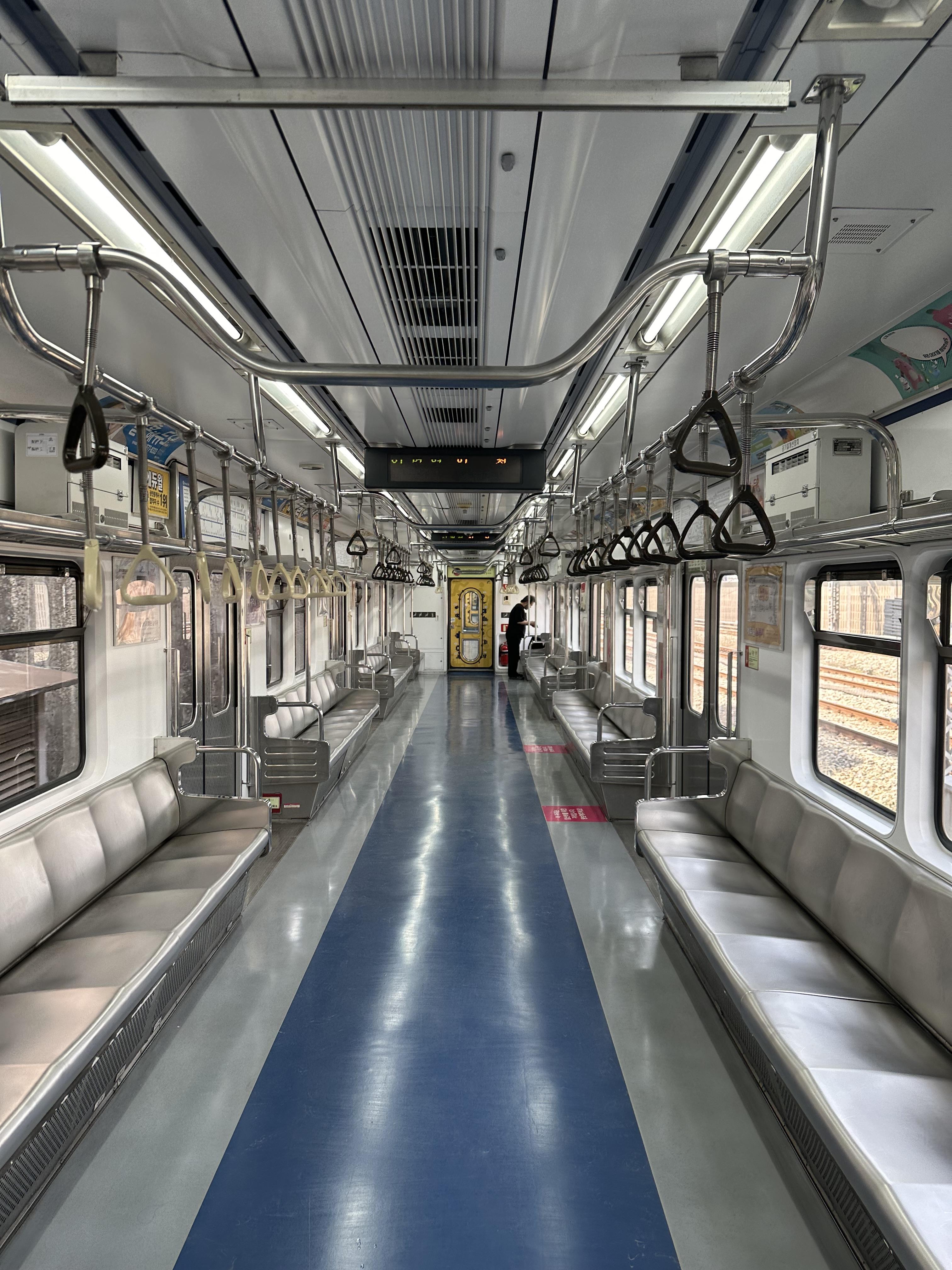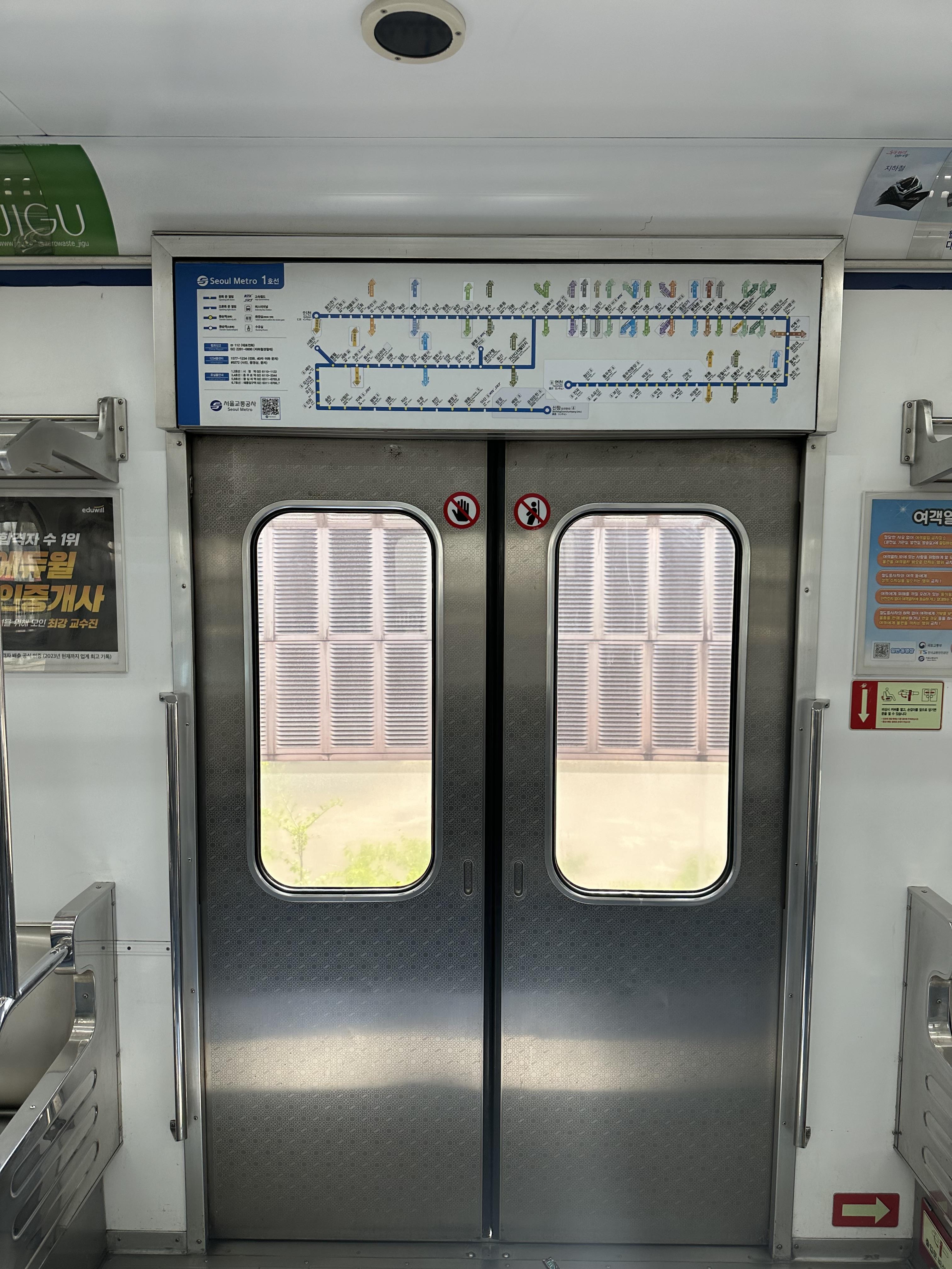 최근에 지하철 1호선 뿐만 아니라 서울 지하철의 경우 노후화된 차량들을 폐차 하면서 신형 철도차량들이 오고 있습니다. 제가 타고온 지하철은 신형은 아니고 구형 차량이었습니다. 사진 좌측이 구형 철도차량이고 사진 우측은 최근에 출시된 신형 전동차량이었습니다. 신형 전동 차량은 신형 ITX마음이나 KTX 이음 철도처럼 지하철에서도 무선으로 핸드폰을 충전하는 장비도 갖추어져있습니다.