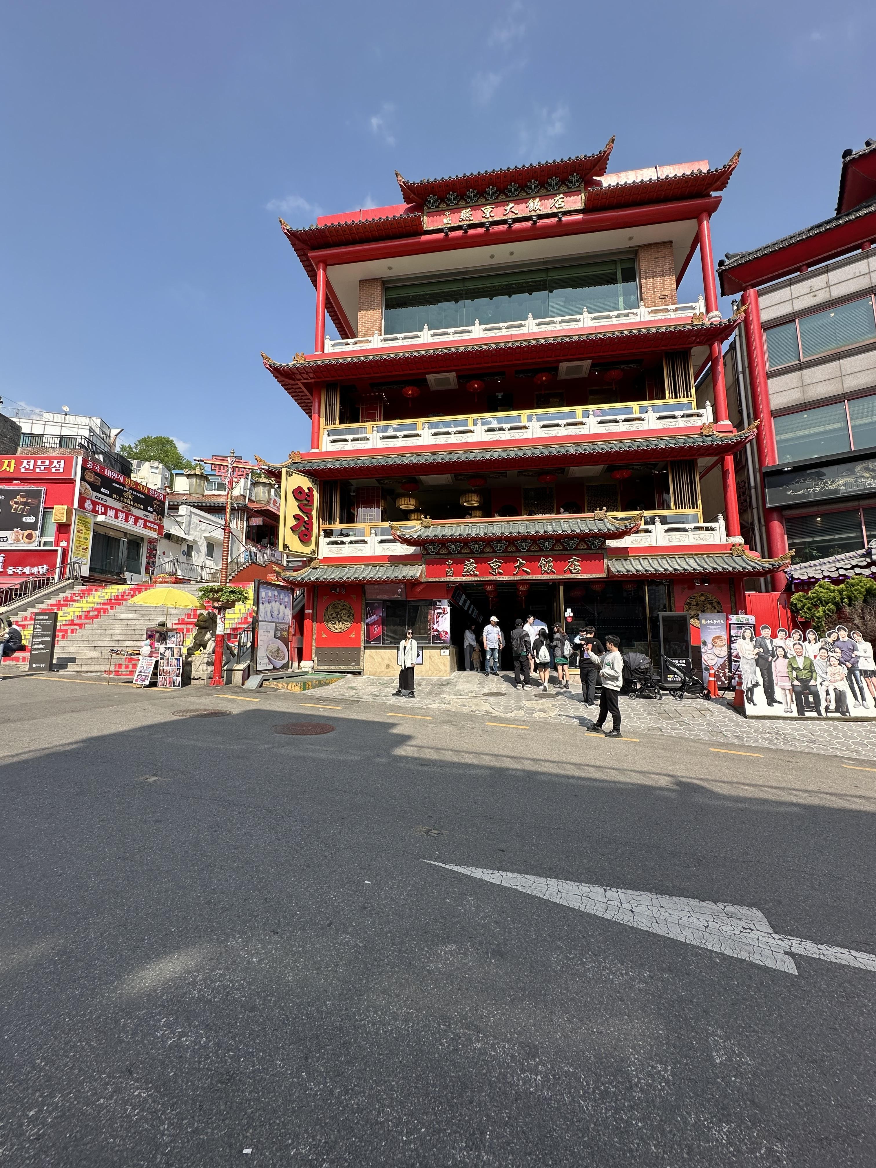 차이나 타운 오르막길에 다 올라오면 연경 차이나타운점이 보입니다. 그리고 그 주변에는 다양한 중국식 건물 분위기를 가진 중국집이 펼쳐집니다. 차이나타운 앞에 향래객이라는 중국집도 있었습니다. 몇개월전에는 이곳에서 볶을밥 먹었던 기억이 있습니다. 연경이 이번이 처음은 아닌거 같은데요. 5년전에도 연경에서 먹었던 것같은데 그때는 차이나타운에 수인분당선 개통되서 아무것도 모르고 와서 사실 기억이 나지 않습니다. 연경 앞에는 당시 MBC 드라마 가화만사성의 배우들이 있는 등신대가 있었습니다. 당시 배우 김영철과 최윤소, 김소연, 이상우, 이필모 등 유명했던 배우들이 함께 했습니다. 저는 이 드라마를 보진 않고 채널을 돌리다 보면 유명하고 인기 배우들이 나오는구나 하면서 채널돌리며 대충 봤던 기억이 났습니다. 차이나타운에는 가화만사성을 제외하고 다양한 영화와 드라마를 촬영했습니다.