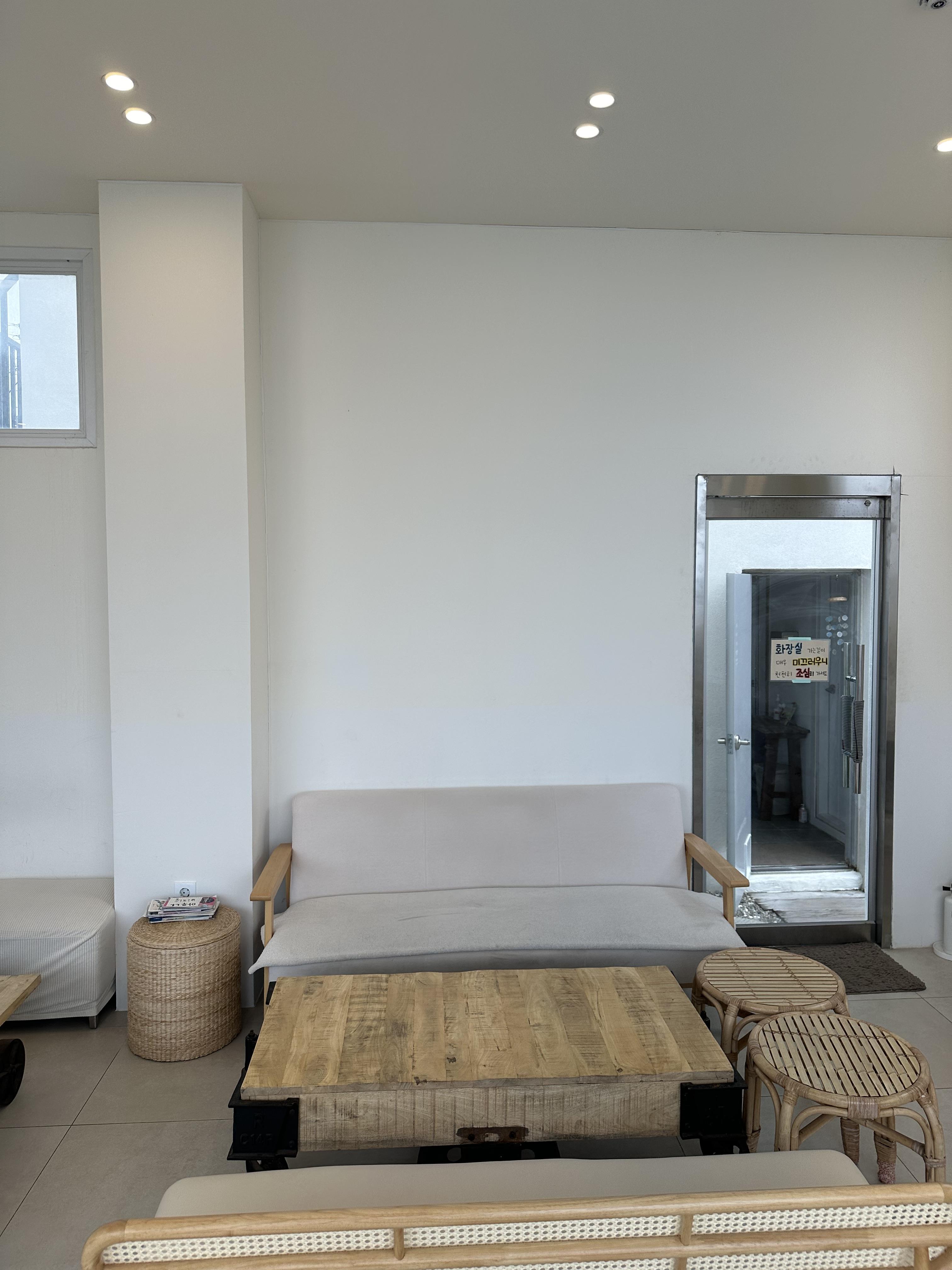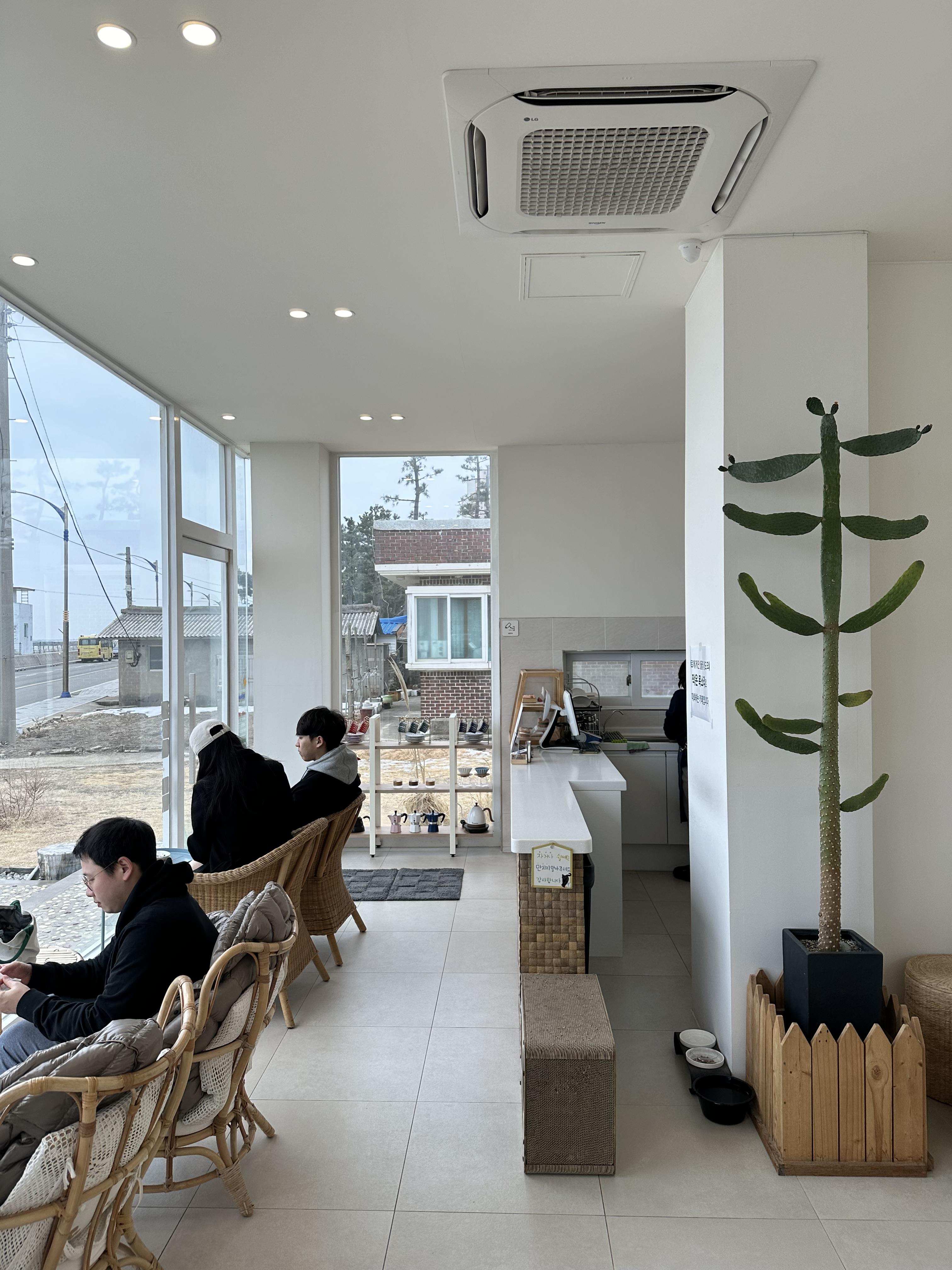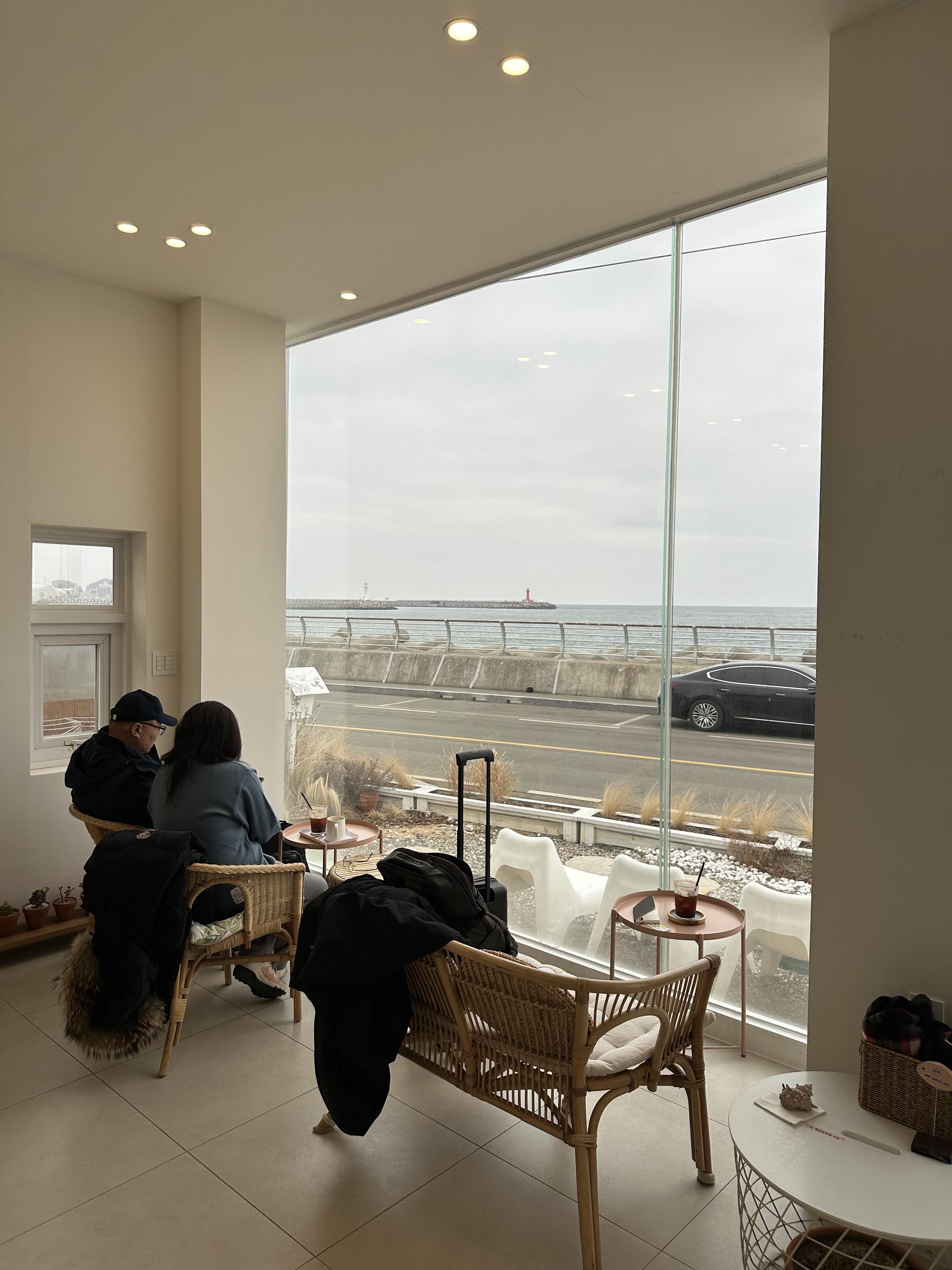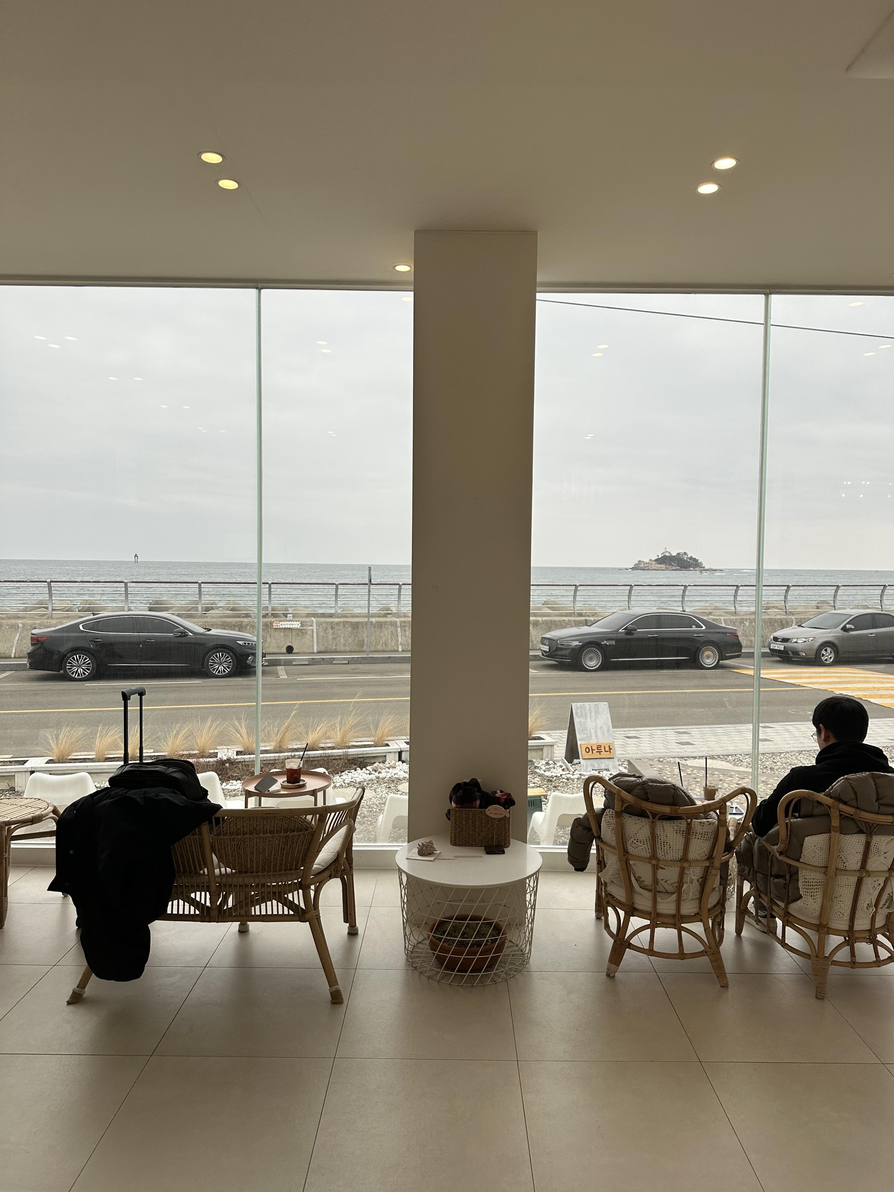 점심시간이 지났더라면 카페에 사람이 많았을텐데요. 대부분 숙소에서 퇴실 후 늦은 아침먹으러 갔는지 다소 붐비지는 않았습니다. 카페 자체가 작다보니 아무래도 단체손님들은 잘안오는거 같긴합니다. 보통은 저처럼 1인손님 혹은 연인, 가족 등으로 2-4인정도 오는 것 같았습니다. 카페 입실 후 운이 좋게 바다가 보이는 쪽에 자리가 바로 있어서 자리를 잡고 아이스아메리카노가 나올때까지 기다렸습니다.