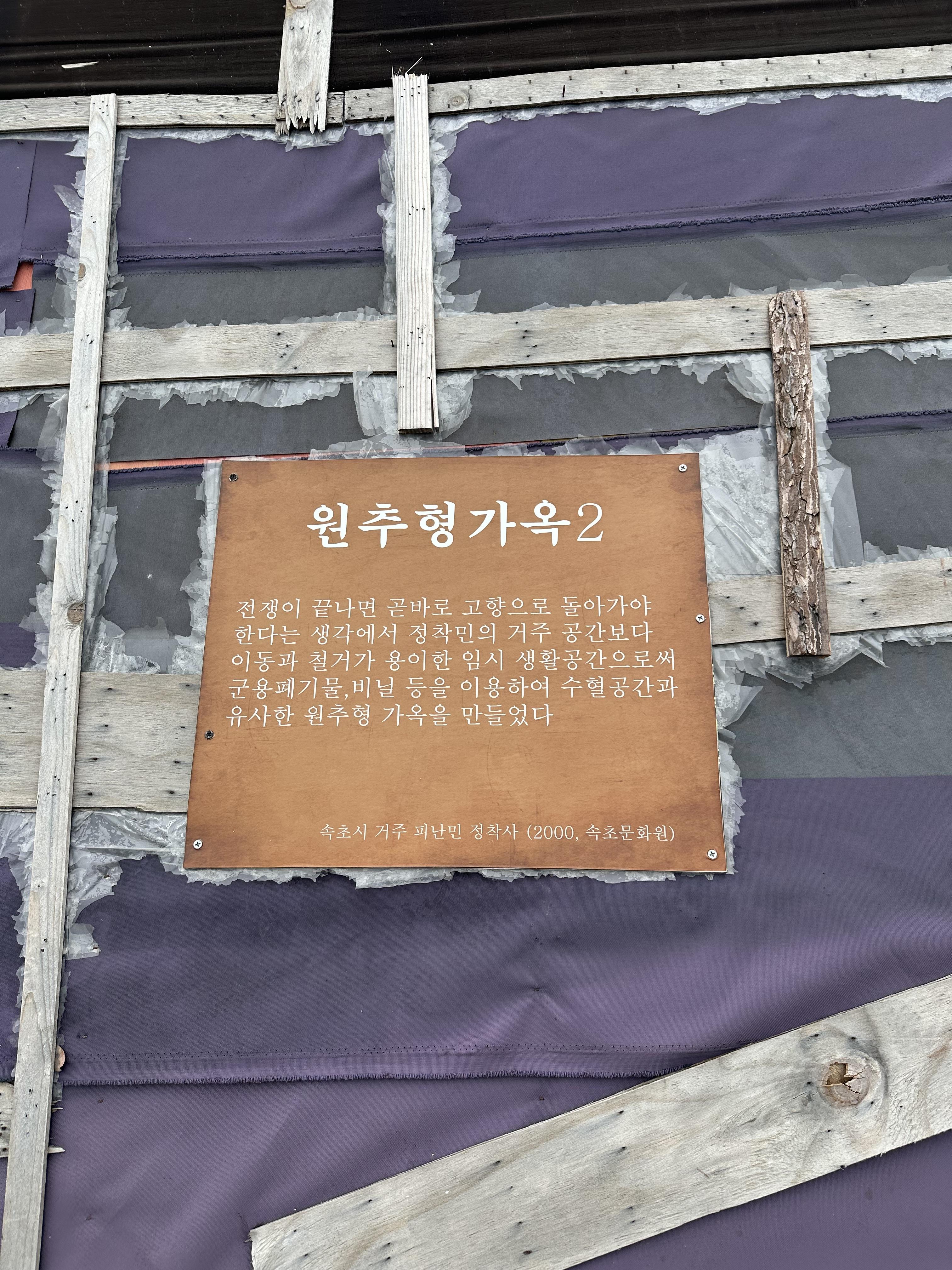 속초 해변 따라 SBS펜션과 더뷰펜션을 보며 지난 과거 속초 여행을 회상하며 가다보니 어느덧 목적지인 아루나 카페에 거의 도착해있었습니다. 지난 2021년에는 보지 못했는데 아루나 카페 근처에는 원추형 가옥이라는 허름한 집이 하나 있었습니다. 지금은 살지 않았습니다. 625 전쟁으로 인해 집을 잃은 사람들이 임시 생활공간이었던 것 같습니다.