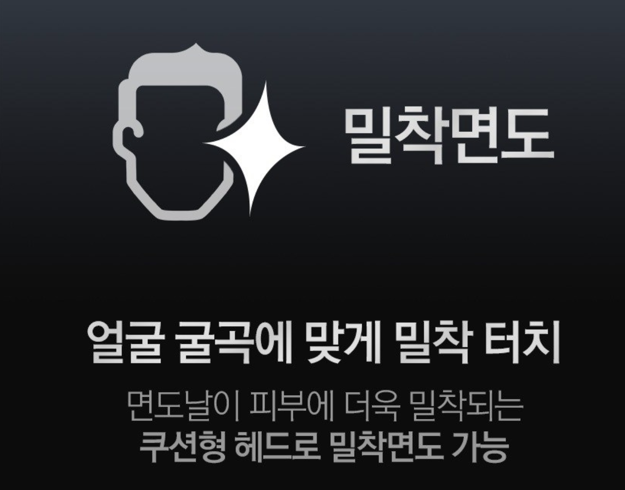 - 얼굴 굴곡에 맞게 밀착 터치! 면도날이 피부에 더욱 밀착되는 쿠선형 헤드로 밀찬면도가 가능하다고 해요