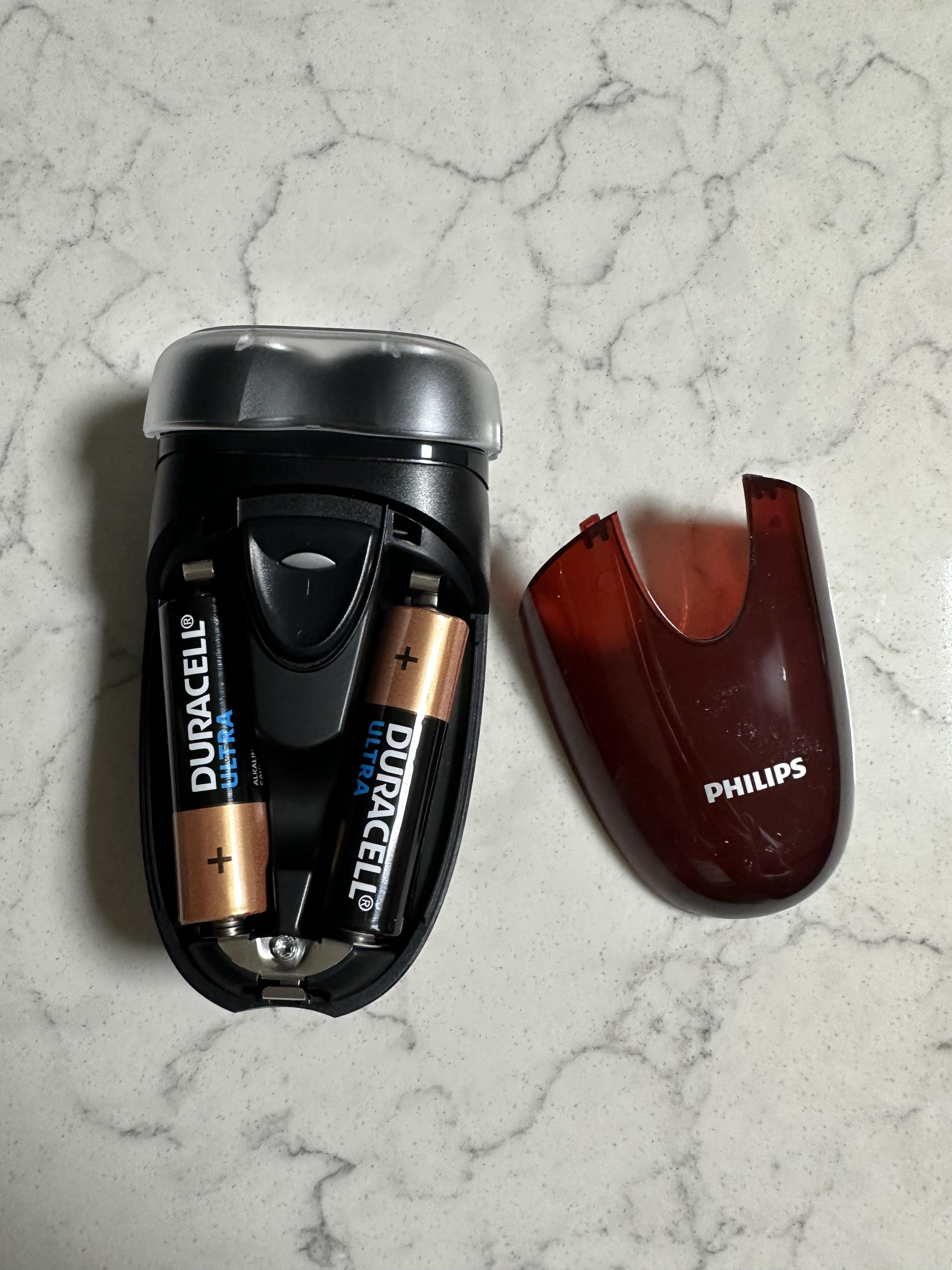 보통 건전지가 들어가면 조금 더 무거워지는 느낌이 있는데요. 건전지 두개가 들어가더라도 필립스 휴대용 면도기는 전혀 무겁지 않았습니다. 어떻게 처음부터 가볍게 만들어진거 같았습니다.