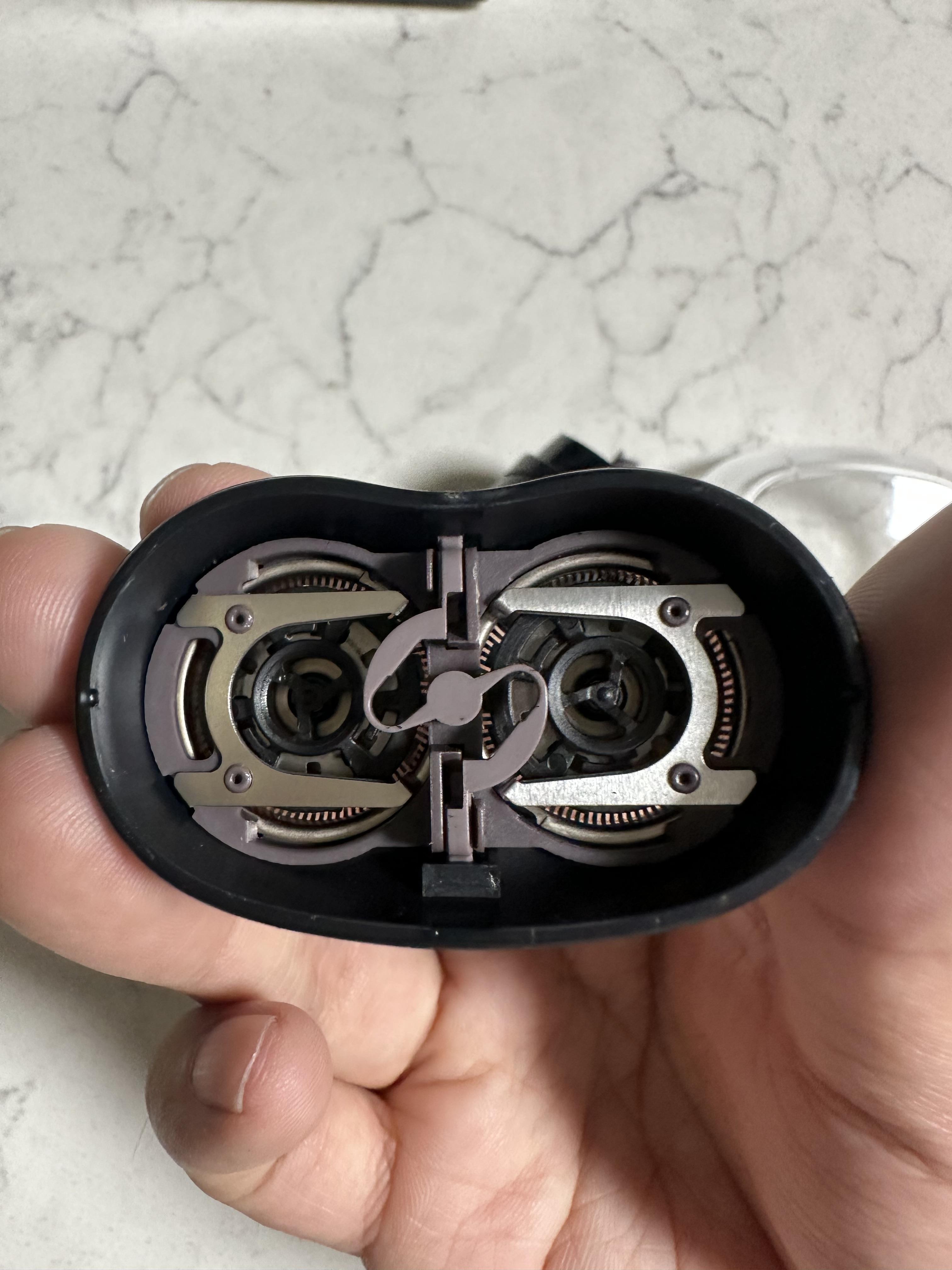 작은 크기라 그런지 면도기 작았습니다. 면도기 날이 어떻게 생겼는지 내부를 열어보았는데요. 정말 단순하게 생겼습니다. 그러나 매운 고추가 더 맵다는 말이 있죠. 필립스 휴대용 면도기가 작고 저렴하긴 하지만 작은 만큼 비싸고 좋은 면도기에 뒤지지 않을만큼 가벼우면서 면도도 잘되었습니다.