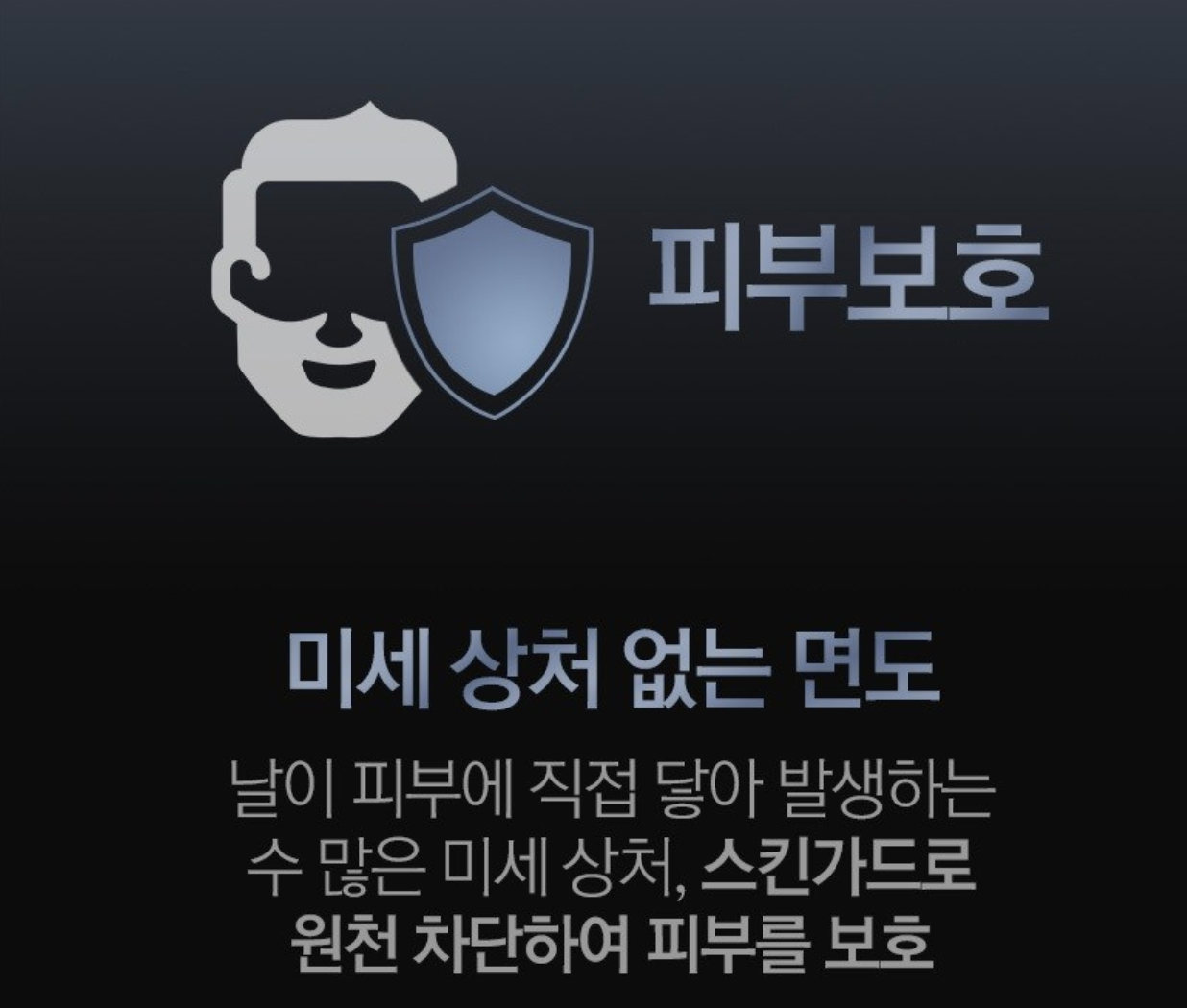 - 미세 상처 없는 면도가 가능하다는데요. 날이 피부에 직접 닿아 발생하는 수 많은 미세 상처, 스킨카드로 원천 차단하여 피부를 보호한다고 해요.