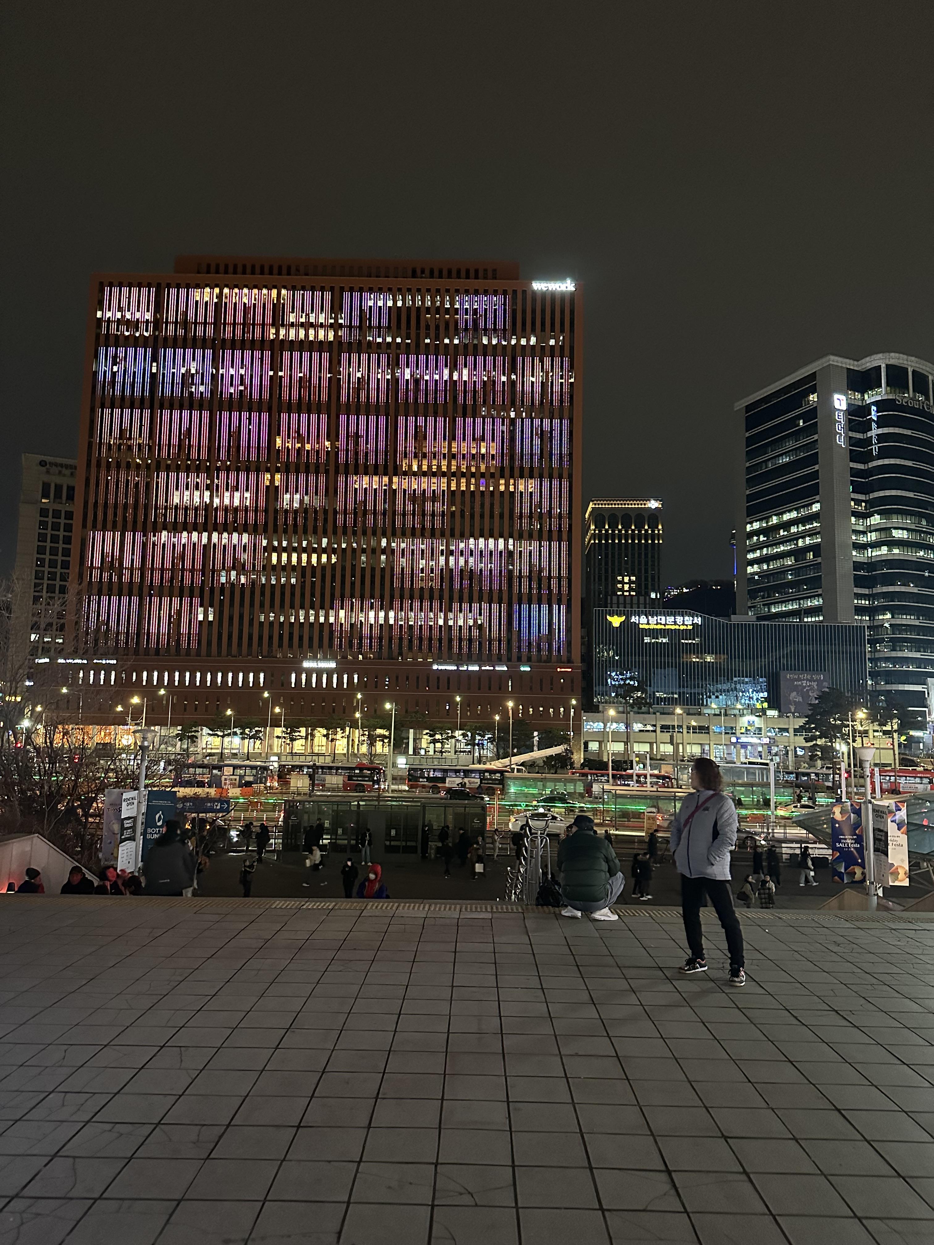 서울역은 주거 공간보다는 각종 상업과 업무 지역이었습니다. 늦은시간임에도 서울역 앞 위워크 건물에서는 네온사인과 함께 서울역의 밤은 화려하고 멋있었습니다. 주말에도 늦은시간까지 일하고 있는 사람들도 있는 것 같습니다. 서울역 옆에 있는 백화점과 롯데백화점 주변에도 화려한 불빛과 함께 주말에도 사람들이 많이 오고갔습니다.