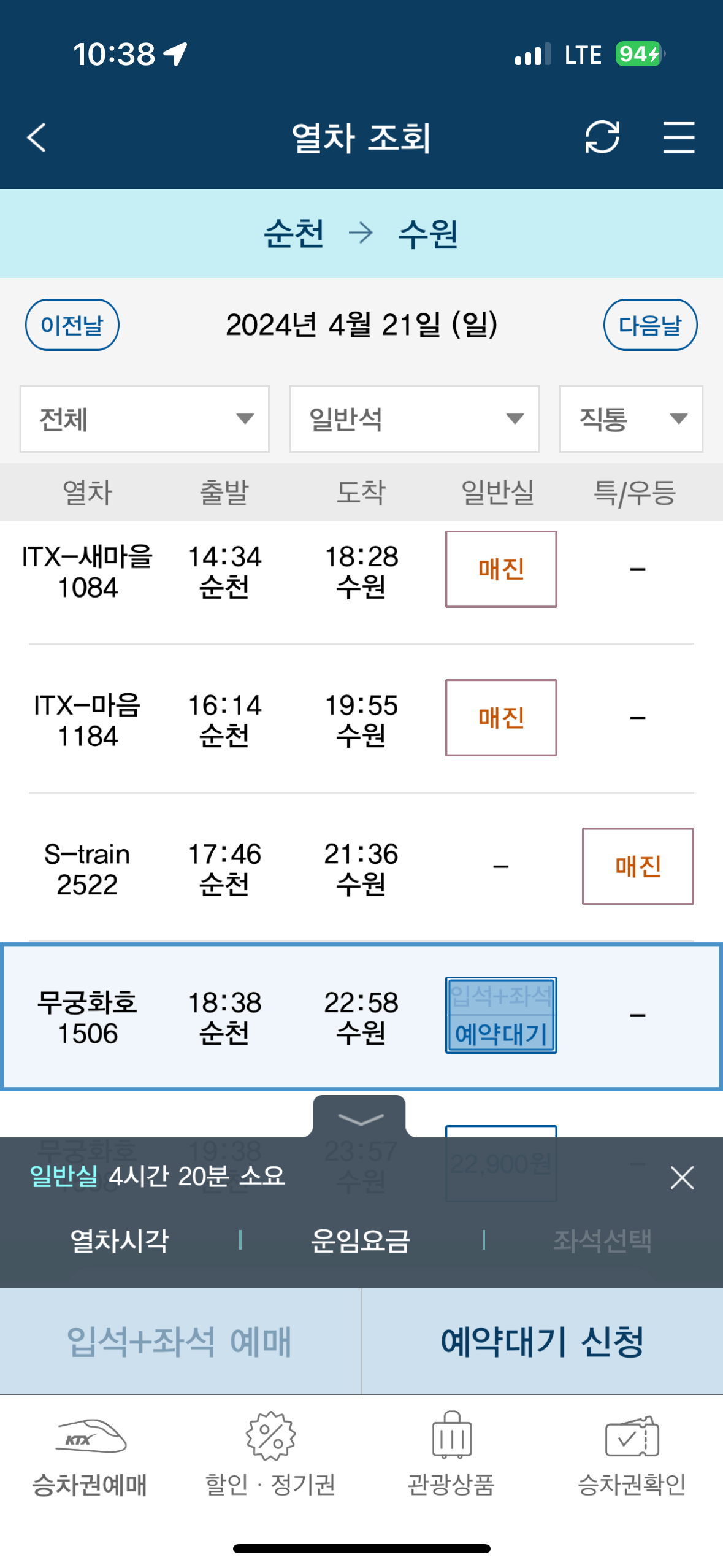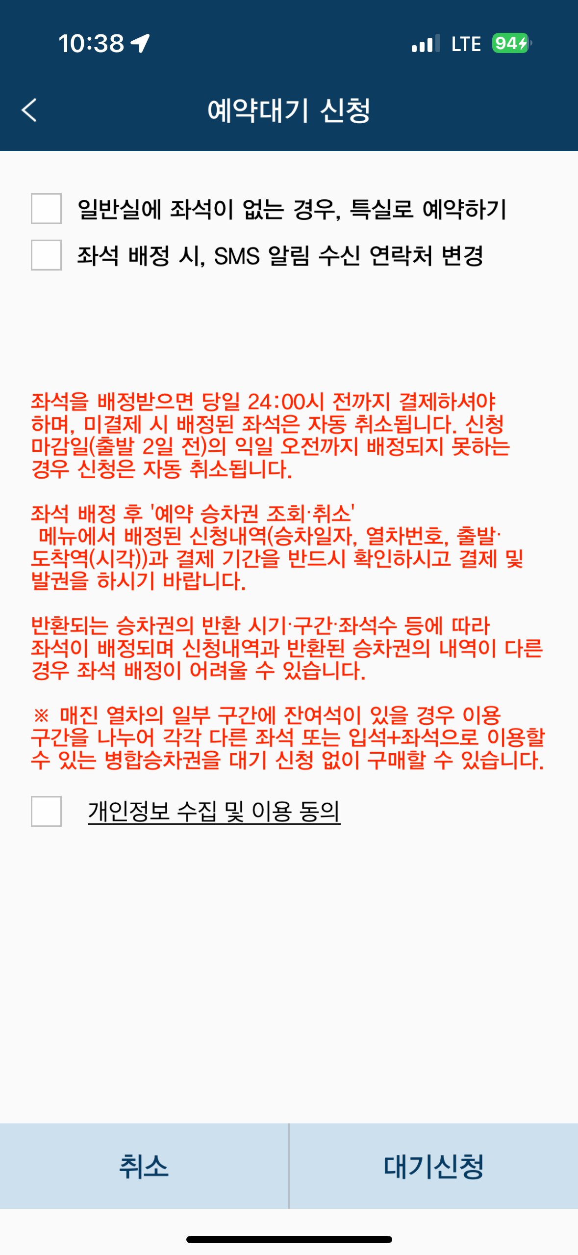 코레일 앱에서 예약 대기를 통한 예약 하는 방법