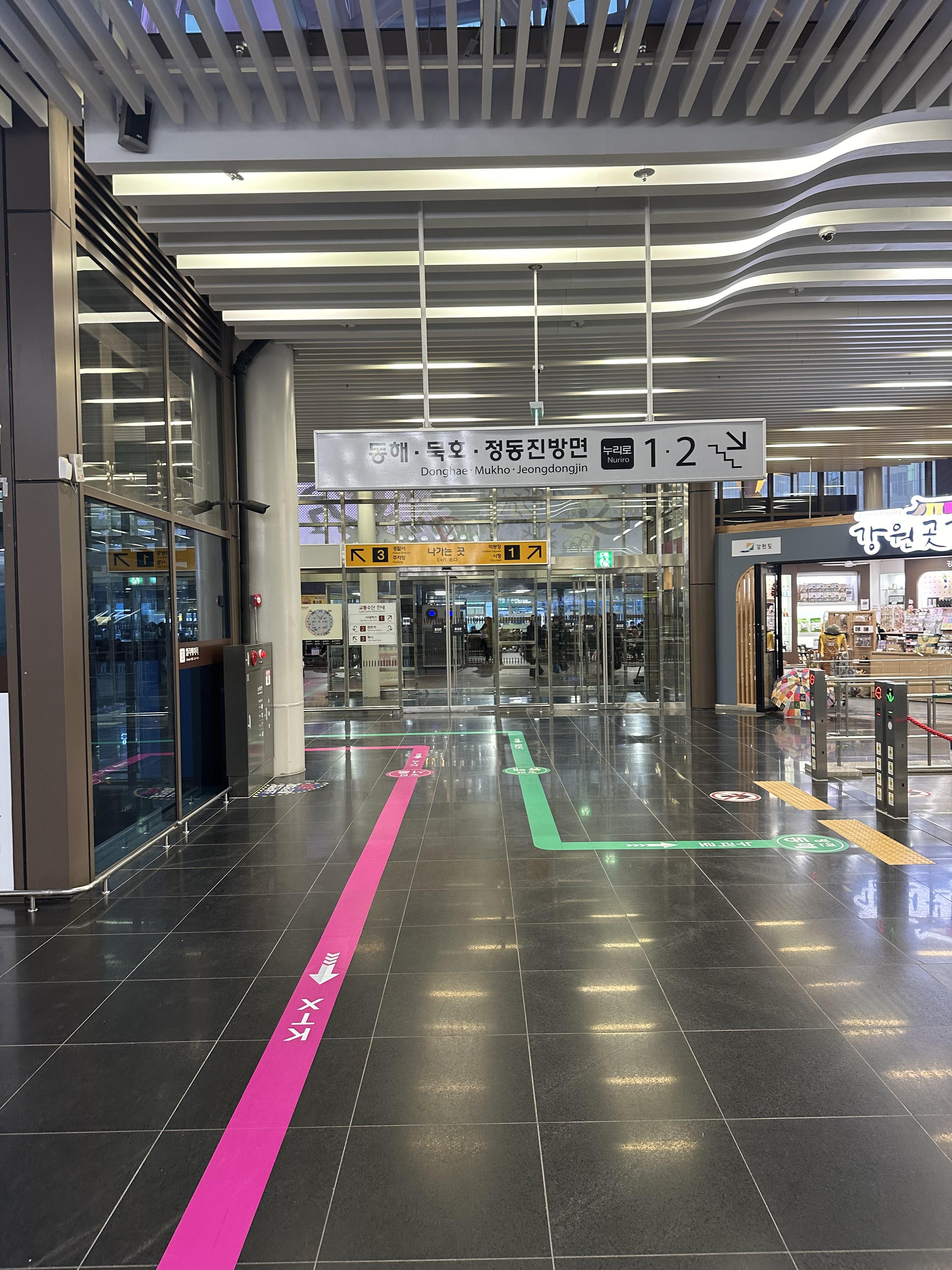 속초에 오기전에도 묵호에서 속초를 가기 위해 동해에서 강릉까지 이어주는 셔틀열차 누리로를 타고 강릉역에 왔는데요. 강릉역은 평창동계올림픽으로 인해 개편된 역이라 그런지 다른 역들에 비해 좀 더 화려하고 웅장한 역이었습니다.