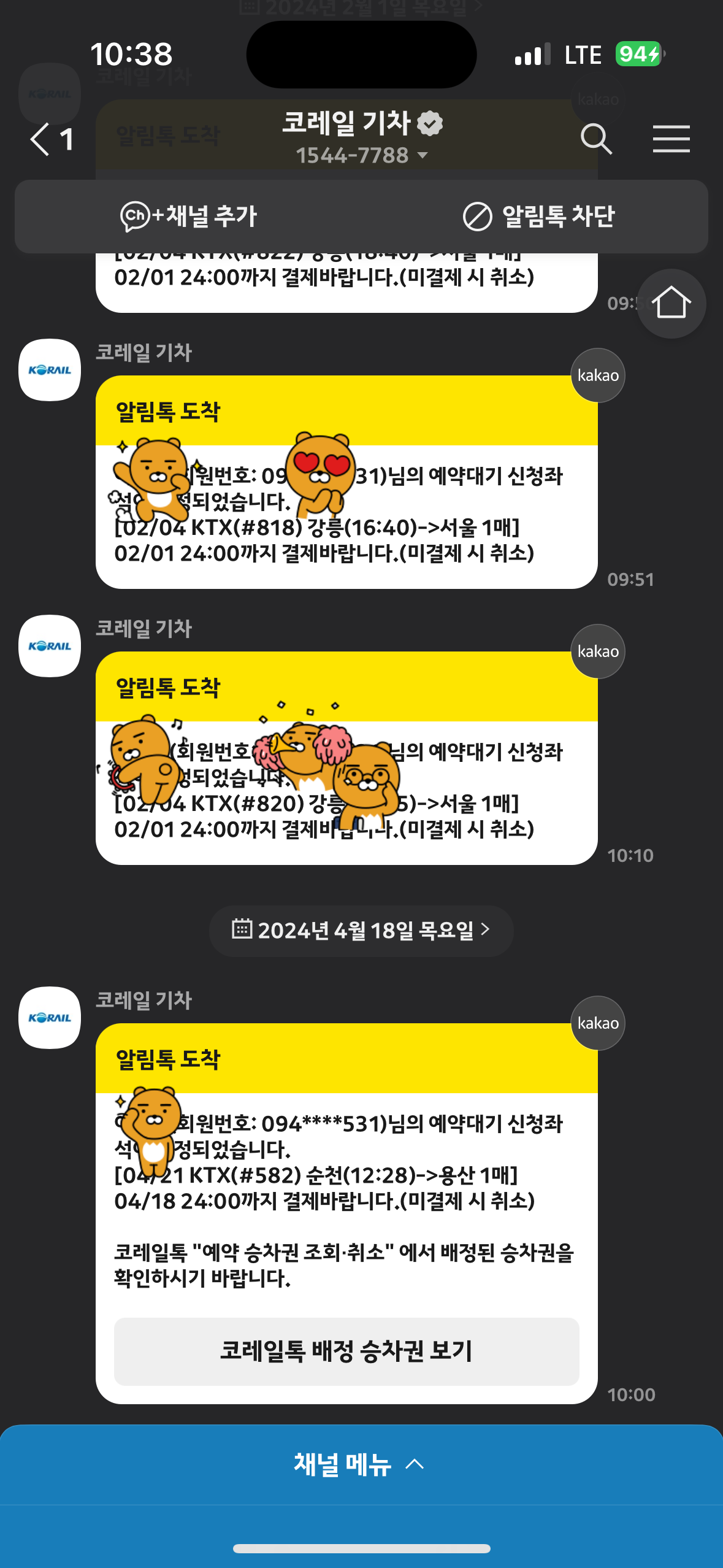 - 예약 대기 후 좌석이 생기면 카카오톡 알림톡으로 알려주고 있습니다.
