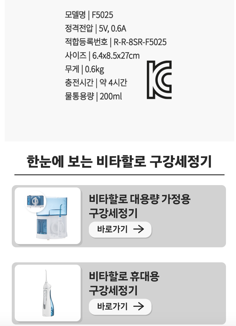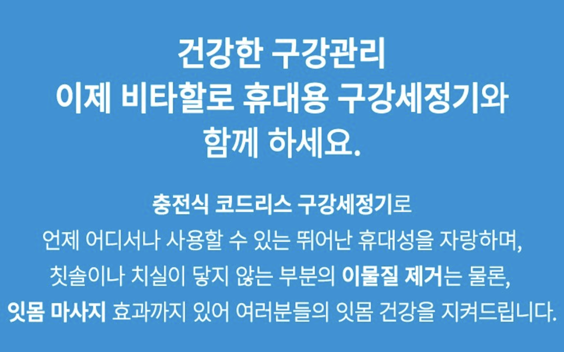 - 그렇지 않고 핵심만 짧게 하시는분이면 비타할로 휴대용 구강 세정기로도 충분해요.