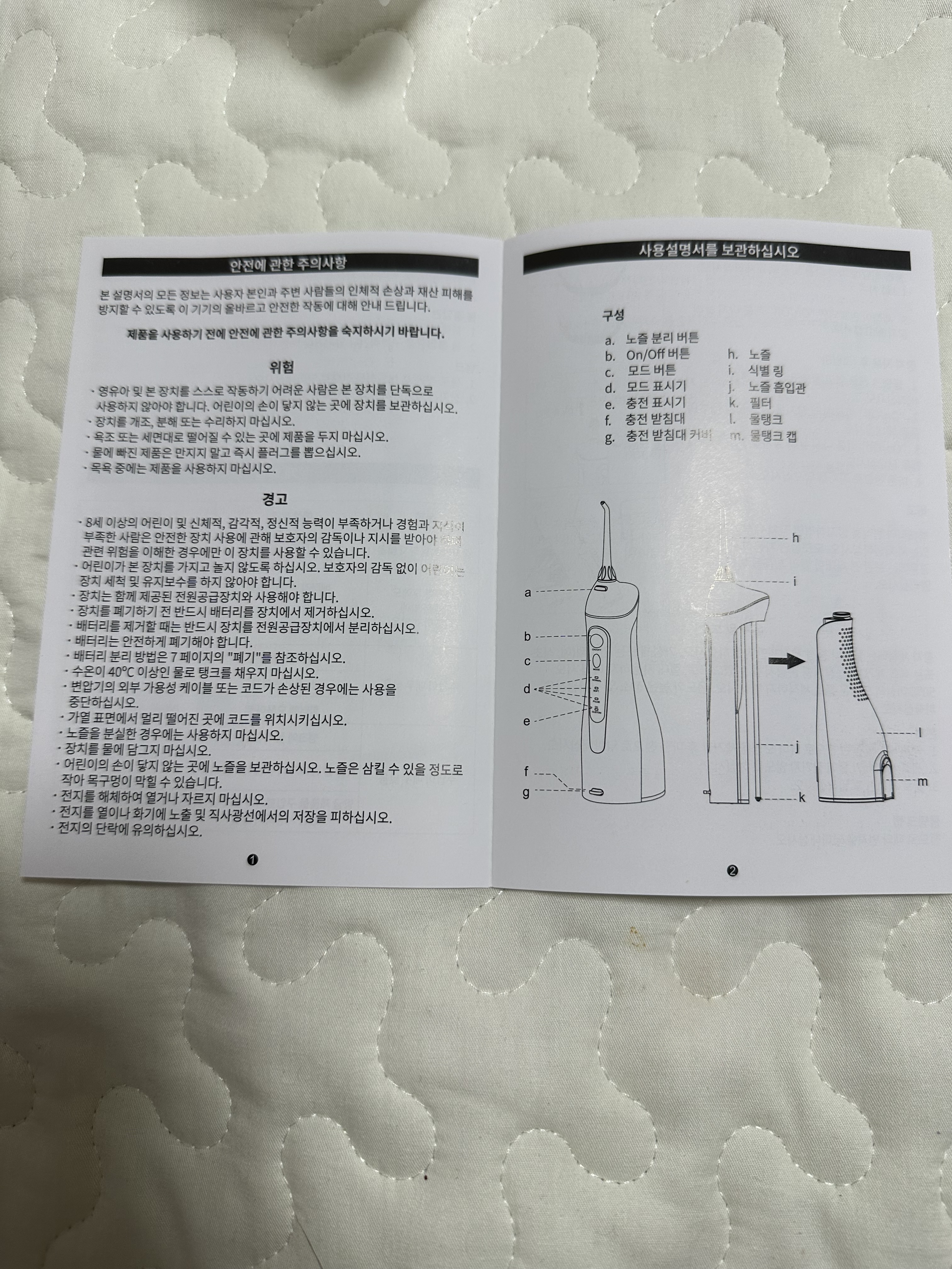 온라인이든 오프라인에서 제품을 구매할 때 꼼꼼하게 보지 않고 외관만 보고 마음에 들거나 저렴하니까 그냥 사는 분들이 있습니다. 특히 쿠팡 같은 경우는 제품 상세페이지에 모두 나오는게 아니고 상세보기를 눌러야 계속 정보가 이어지더라구요. 물론 이렇게 하는건 웹 페이지에 이미지와 정보를 모두 띄우기에는 리소스가 많이 잡아먹어서 그럴 수 있는데요. 저도 그렇고 간혹 상세보기를 누르지 않고 더 이상 정보가 없는줄 알고 눌러버린 경험이 있습니다. 뭐 그런 의도에서 그런건 아니지만 비타할로 구강 세정기 제품 박스에는 제품의 구성표와 제품의 기능과 치아 세정기를 통해 효율적인 구강 관리하는 방법까지 이미지와 함께 상세하게 나와있습니다. 제품을 구매 시 가장 중요한점은 온라인에서 구매 시 제품 상세정보를 통해 나와 맞는 상품인지를 확인하는 것이고, 제품을 수령했을때도 제품 박스와 설명서를 통해 사용방법과 제품에 대해 꼼꼼하게 살펴보는 태도인 것 같습니다.