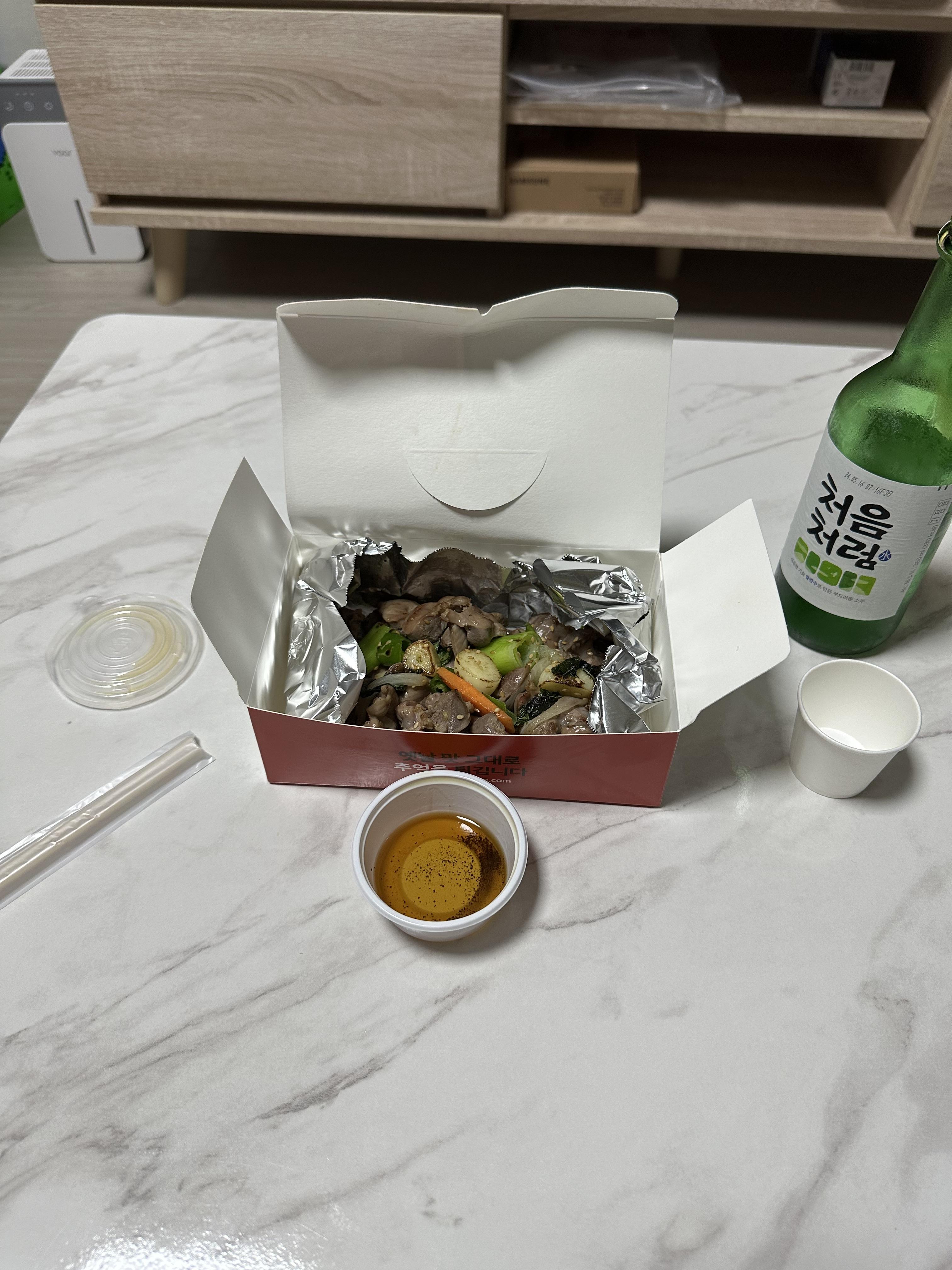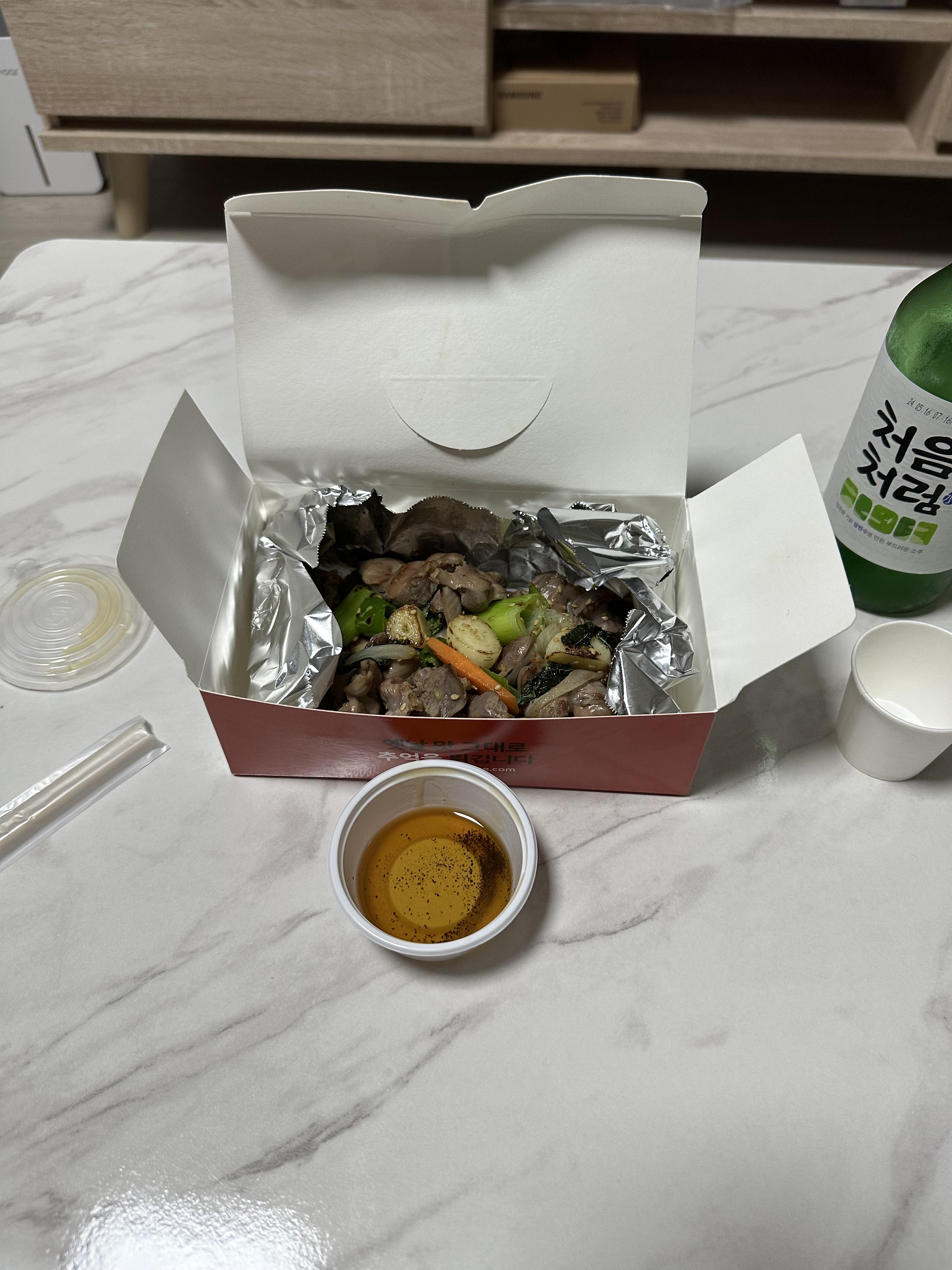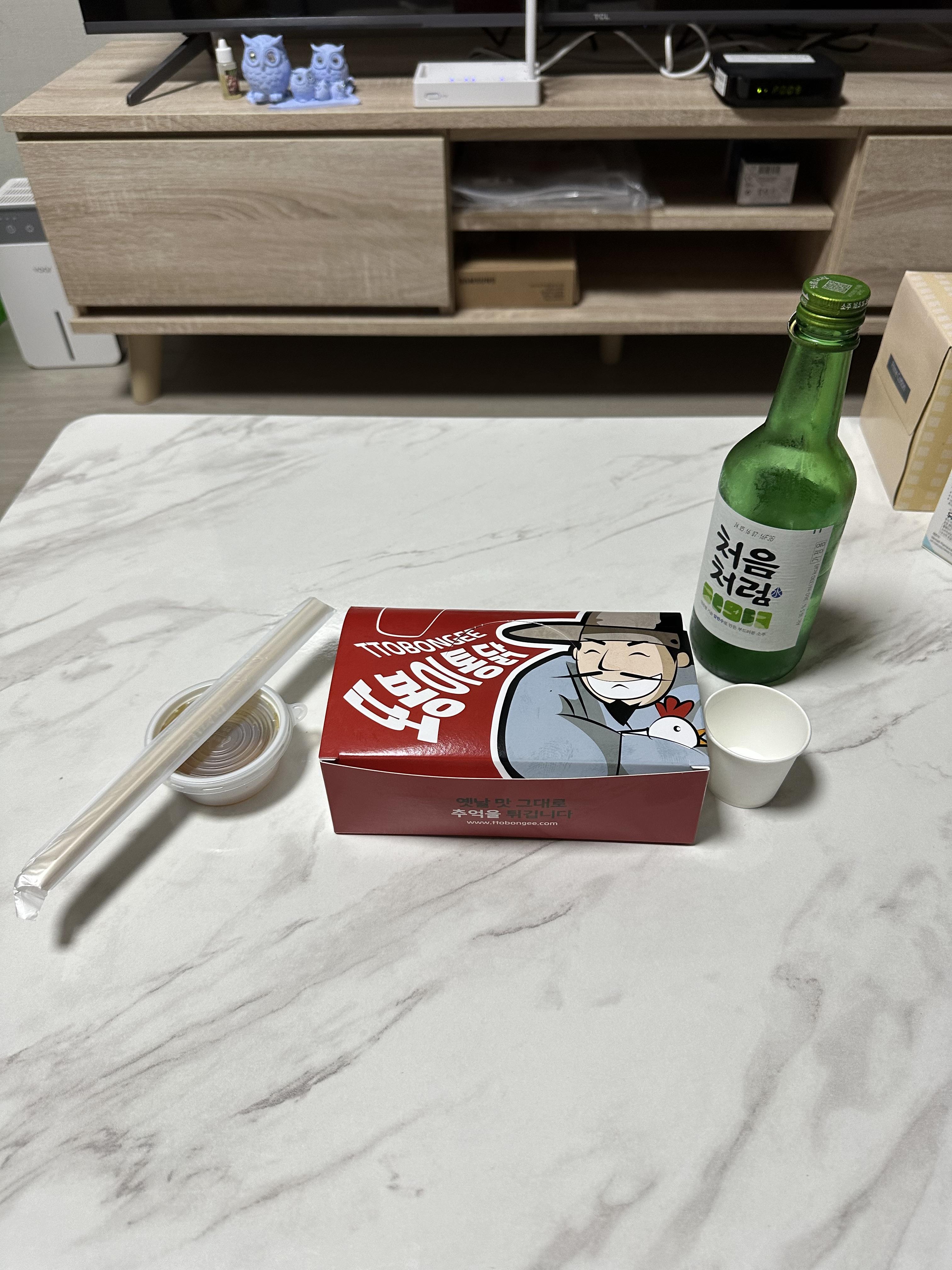 역시 똥집 볶음에는 소주가 최고이겠죠. 전날 마시던 소주가 있어서 소주와 함께 똥집 볶음을 먹었습니다. 또봉이 통닭 상자에는 옛날 맛 그대로 추억을 튀긴다는 문구가 있었습니다. 선비로 보이는 캐릭터가 재미있게 생겼습니다. 또봉이 통닭에서 주문해서 가져온 똥집 볶음은 매운 고추와 마늘이 들어가있었습니다. 그래서 정말 매운 고추와 함께 똥집볶음을 입에 넣으니까 얼큰하니 매웠습니다. 소주 안주로 정말 딱이었습니다. 가격도 저렴한데다가 양도 많지 않아서 혼자서 먹어도 부담되지 않는 양이었습니다.