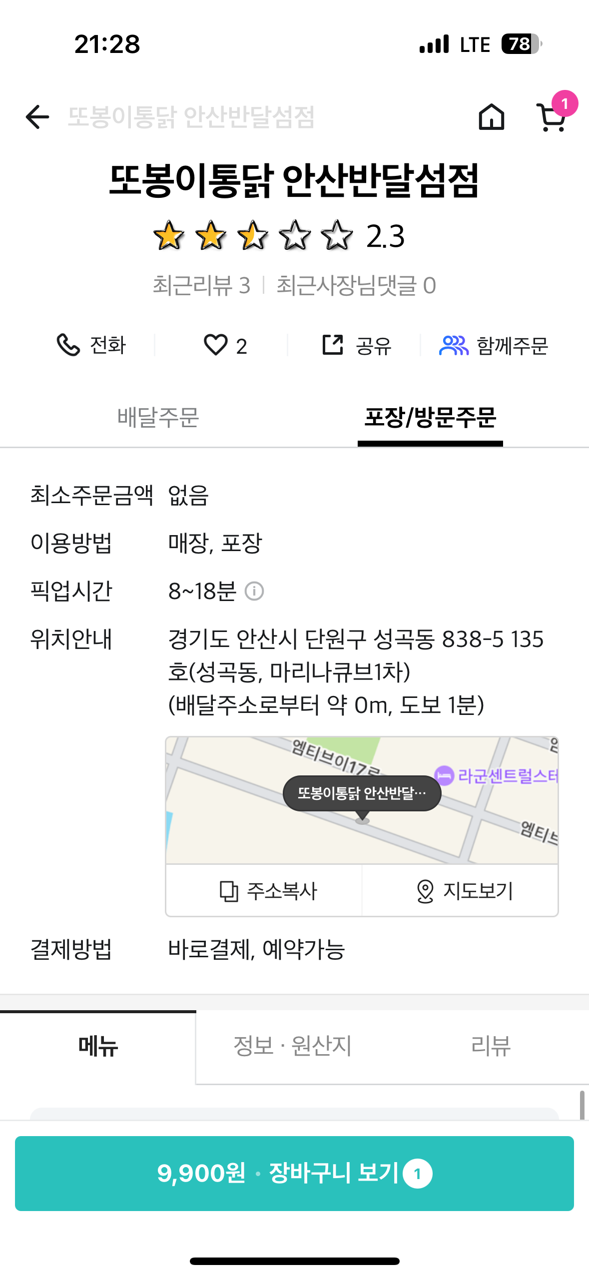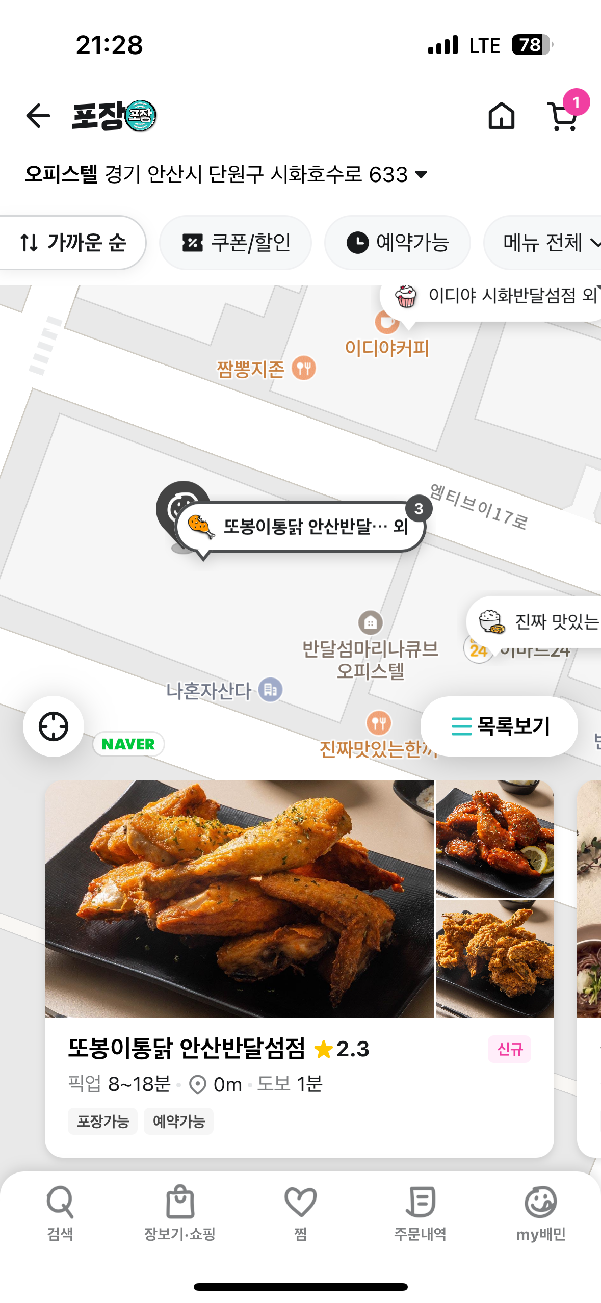 지난 2023년 7월 이후로 반달섬에 입주했지만 고금리 여파로 인해 빈 상가만 넘쳐났습니다. 배달을 하고 싶어도 인근에는 산업단지라서 30분 넘는 안산과 시흥 정왕동에서 배달이 와야 했습니다. 덕분에 배달료만 7000-8000원 지급을 하게 되었습니다. 올해 겨울은 유독 눈이 많이 오고 추웠습니다. 배달을 하고싶은데 눈이 와서 도로가 위험하다면서 배달이 되지 않는 일들도 있었습니다. 지난 코로나 시기에는 사회적 거리두기로 인해 배달이 일상화되었지만 코로나 이후로는 비싸진 물가덕분에 배달비가 상당히 부담이 되었습니다. 그러나 이제는 배달 하지 않더라도 안산 반달섬에 상가가 많이 들어섰습니다. 카페는 물론이고 치킨집도 또봉이 통닭 뿐만 아니라 기절초풍, 옛날 통닭까지 정말 다양하게 입점 했습니다. 앞으로도 이용 후 후기를 남겨보도록 할 예정입니다. 퇴근 하고 원시역에서 500번 버스를 타고 반달섬으로 이동 중이었습니다. 배달의 민족에도 또봉이통닭이 올라와있었습니다. 치킨 가격도 고물가 고금리 고환율 이후로 많이 올라갔습니다. 몇년전만 하더라도 만원짜리 통닭도 가능했는데 기본적으로 15000원이 넘어갔습니다. 이날은 치킨보다 가볍게 먹고 싶었고 마침 똥집볶음이 보였습니다. 고금리 시기에도 불구하고 9,900원에 판매되고 있었습니다. 이제는 반달섬에 상가가 많이 생겨 더이상 배달 하지 않고 포장을 이용하기로 했습니다. 1층인데 배달 시킬 이유는 없겠죠