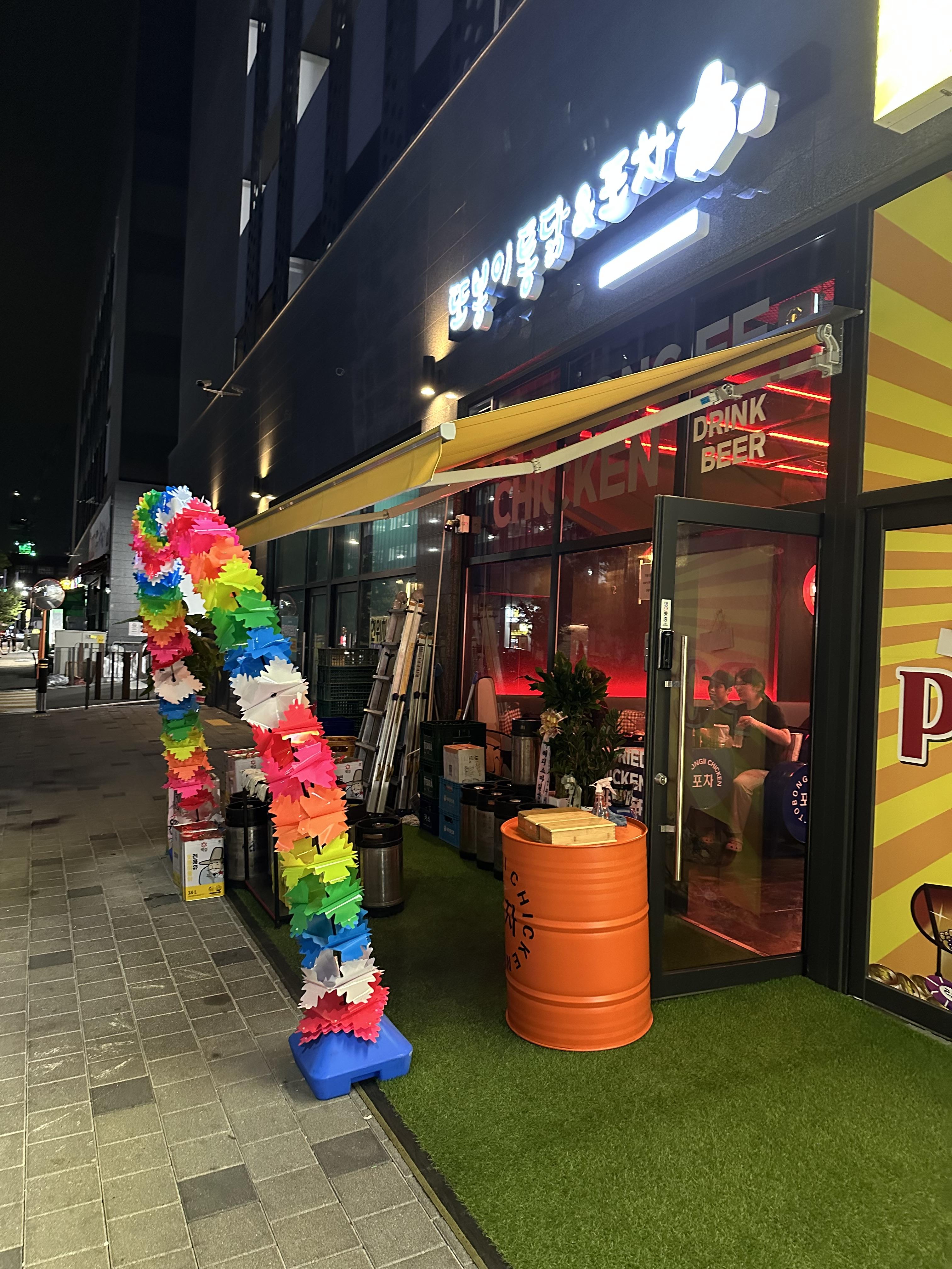 또봉이 통닭은 올해 2024년 6월 중순에 오픈 했습니다. 가게 안에서도 치킨과 맥주를 마실 수 있고 야외 테이블이 있어서 밖에서 사람들과 함께 치킨과 맥주를 마실 수 있습니다. 가격도 치킨집 치고 많이 비싸지 않고 만원 이하 음식도 있기 때문에 포장해서 혼자서 집에서 먹을 수 도 있습니다.