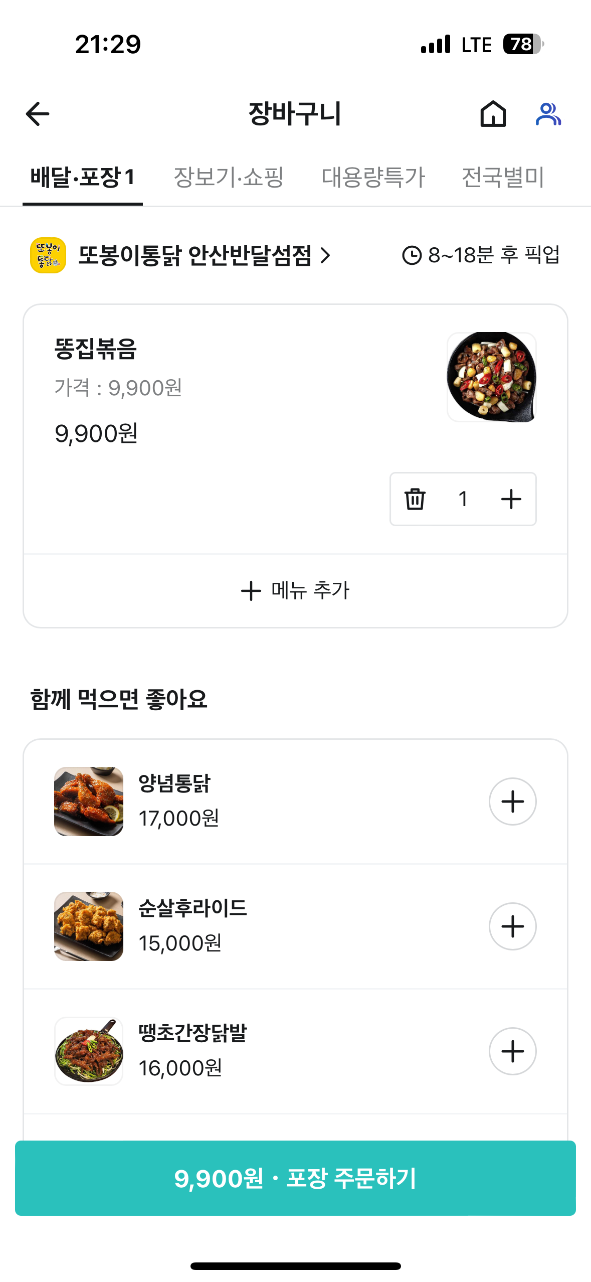 - 똥집볶음 9,900원