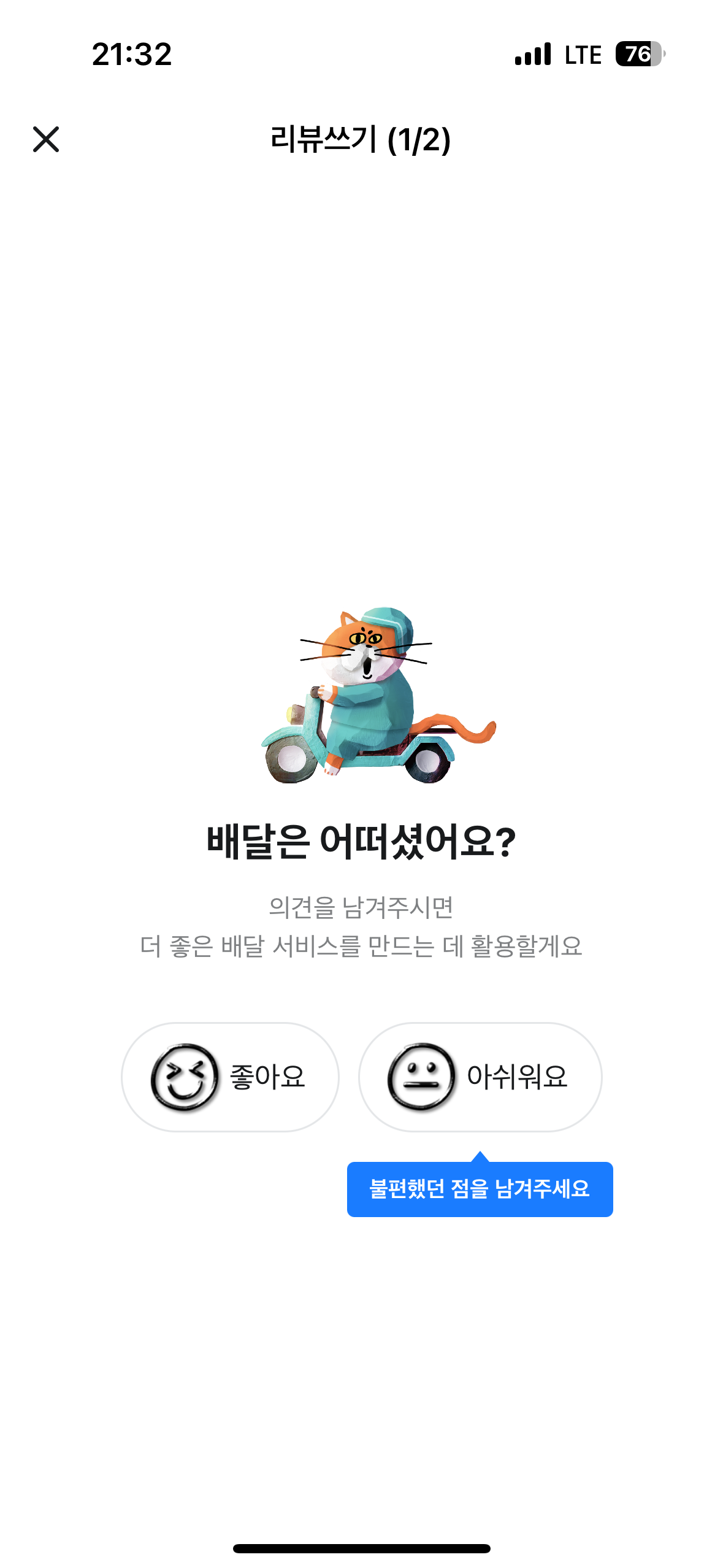 - 음식 수령 후 1분에서 1시간 이내 늦으면 1일안에 리뷰쓰기 버튼이 활성화 됩니다.
