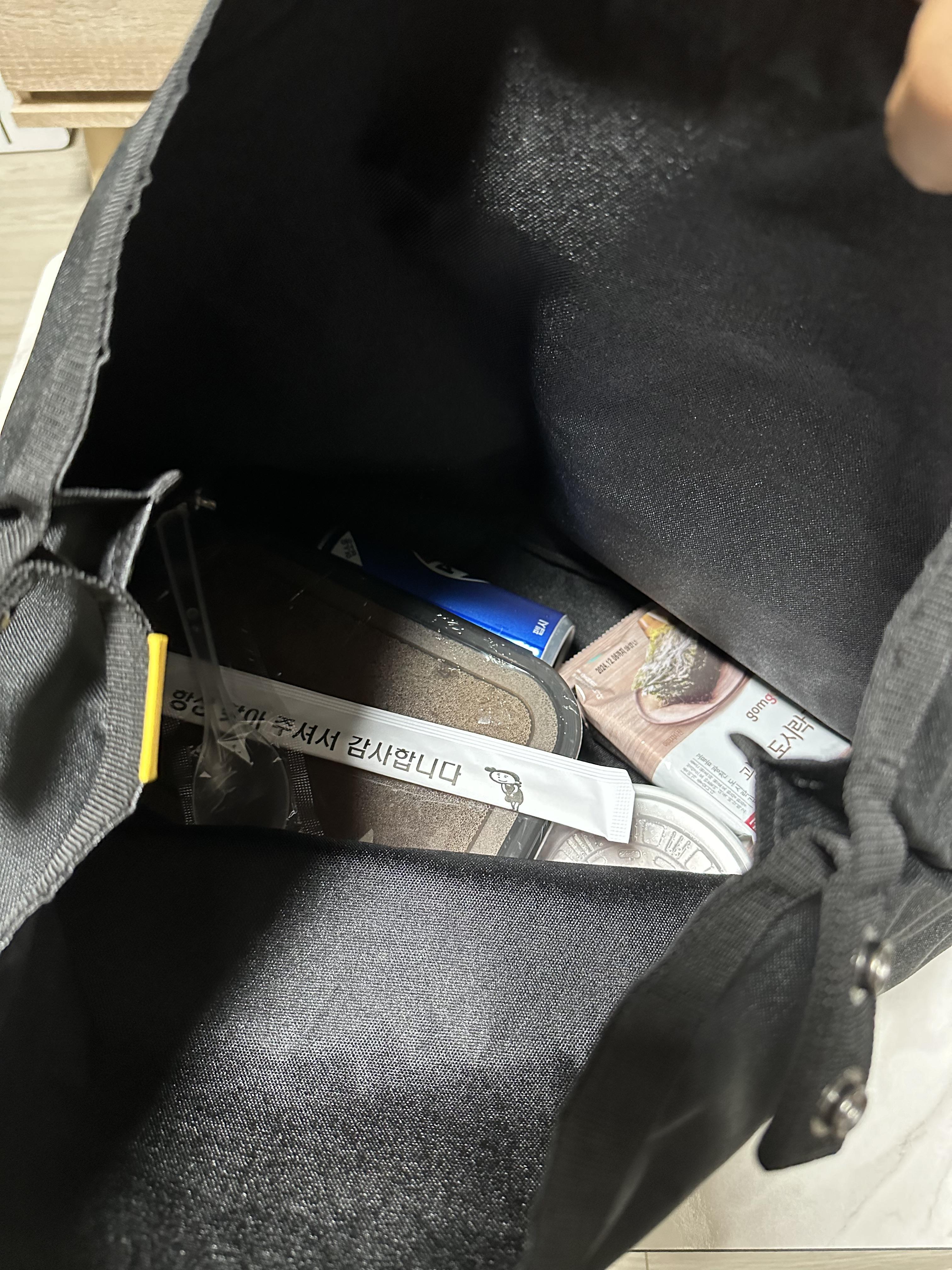 리턴잇이라는 다회용기 반납업체를 포장가방을 통해 주문한 음식이 들어있습니다. 배고프다고 그냥 먹기보다는 본인이 주문한 음식이 맞는지 확인을 먼저하는게 중요하다고 해요. 다회용기 가방에는 주문서가 함께 부착 되어있었습니다. 저는 1인분 김치찜에 세트, 돈삽겹, 매운맛 그리고 후기 이벤트로 비엔나를 신청 했어요. 쉐프뽁 묵은지 김치찜에서는 매운맛도 조정 할 수 있다고 해요. 매운맛에는 보통맛, 매운맛, 순한맛이 있고 저는 매운맛을 시켰어요.