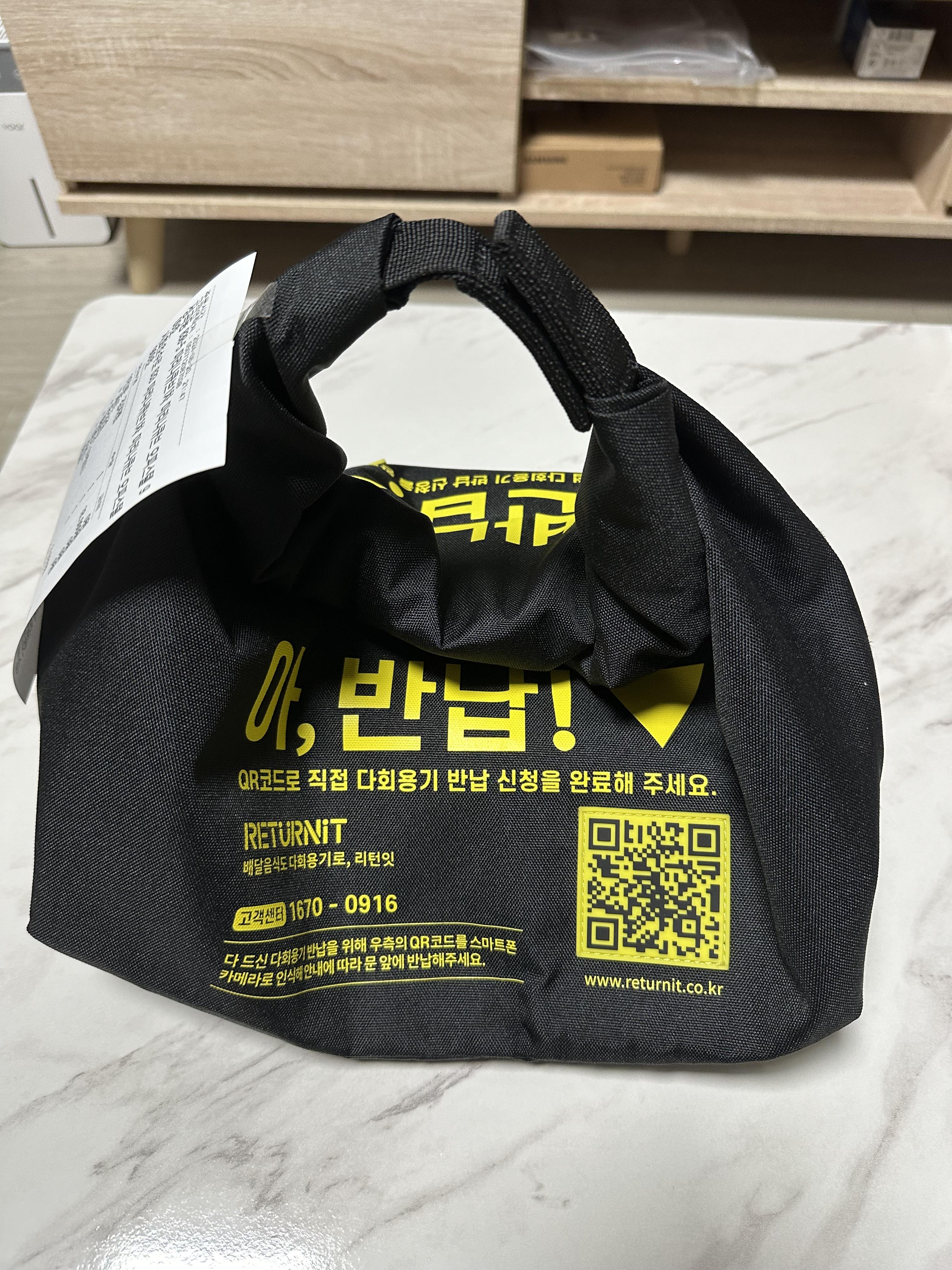 배달의 민족 앱을 사용하면서 다회용기로 받는 것은 이번이 처음이었습니다. 다회용기는 기존 일회용품과는 다르게 반납이라는 특징이 있긴 합니다. 그러나 IT 시대이다보니 반납도 과거와 다르게 문앞에 두는게 아니라 다회용기 가방에 QR코드를 통해 반납장소와 함께 입력 받을 수 있습니다. 반납방법은 리턴잇이라는 앱을 통해서 포스팅 끝날때즘에 다시 한번 소개 해드리겠습니다. 저는 세트 메뉴를 시켰으며 김치찜과 공기밥 1개 그리고 캔콜라와 김치 들어있다고 해요.