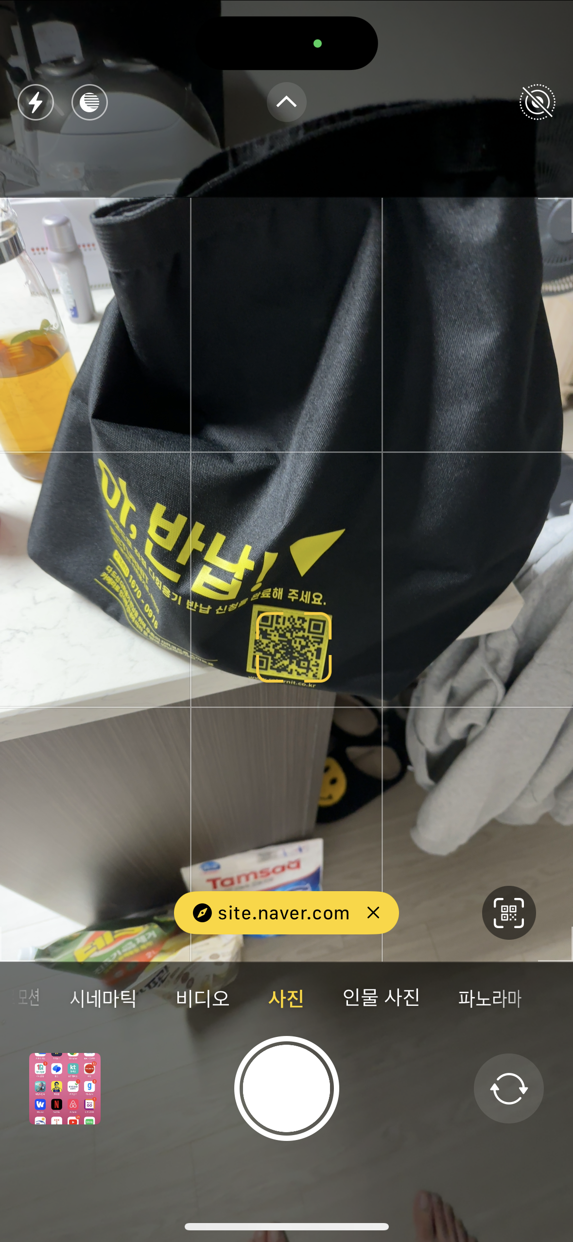 - 다회용기 가방에 보이는 QR 코드를 찍어서 카메라에 보이는 링크를 클릭합니다.