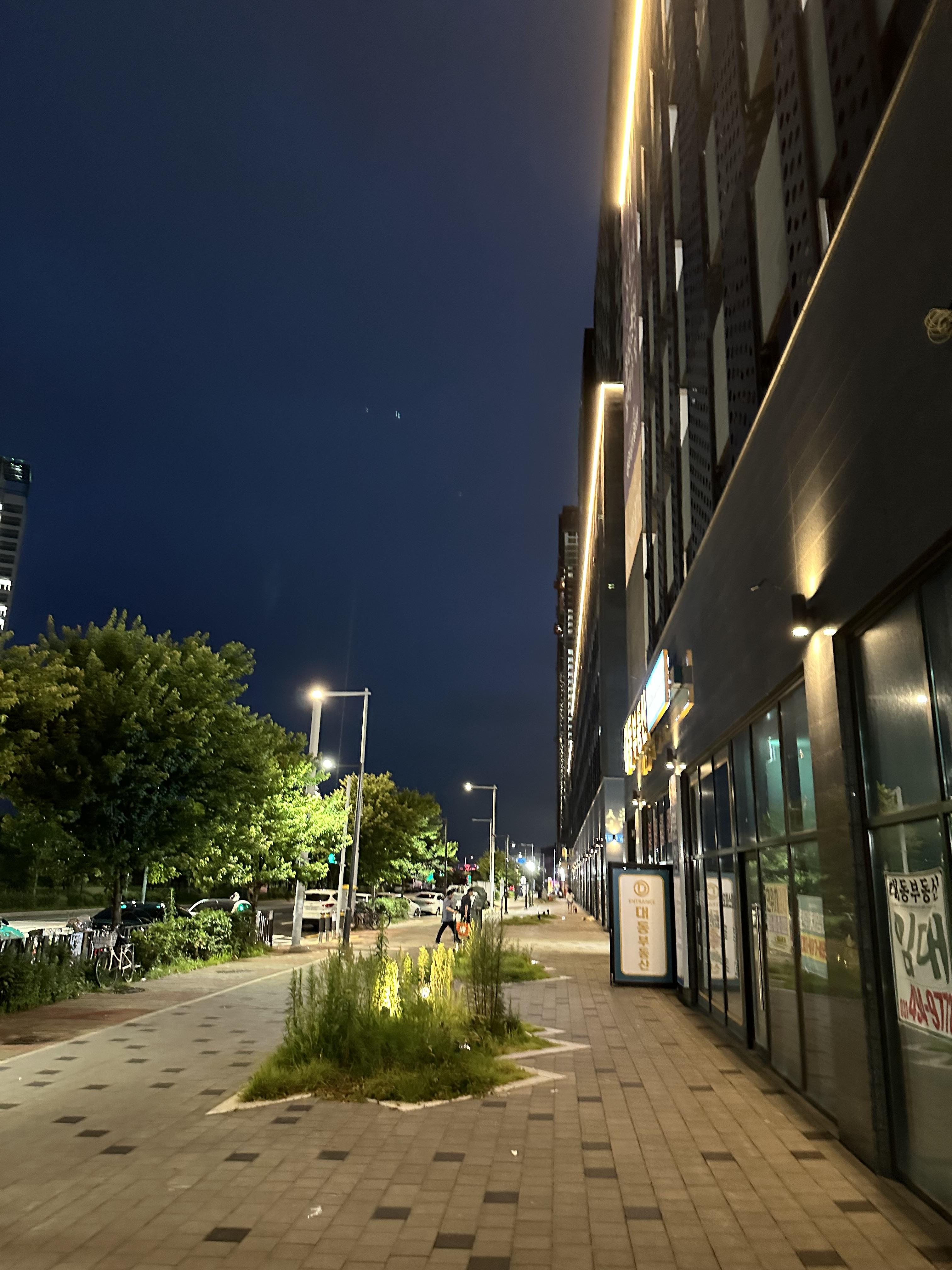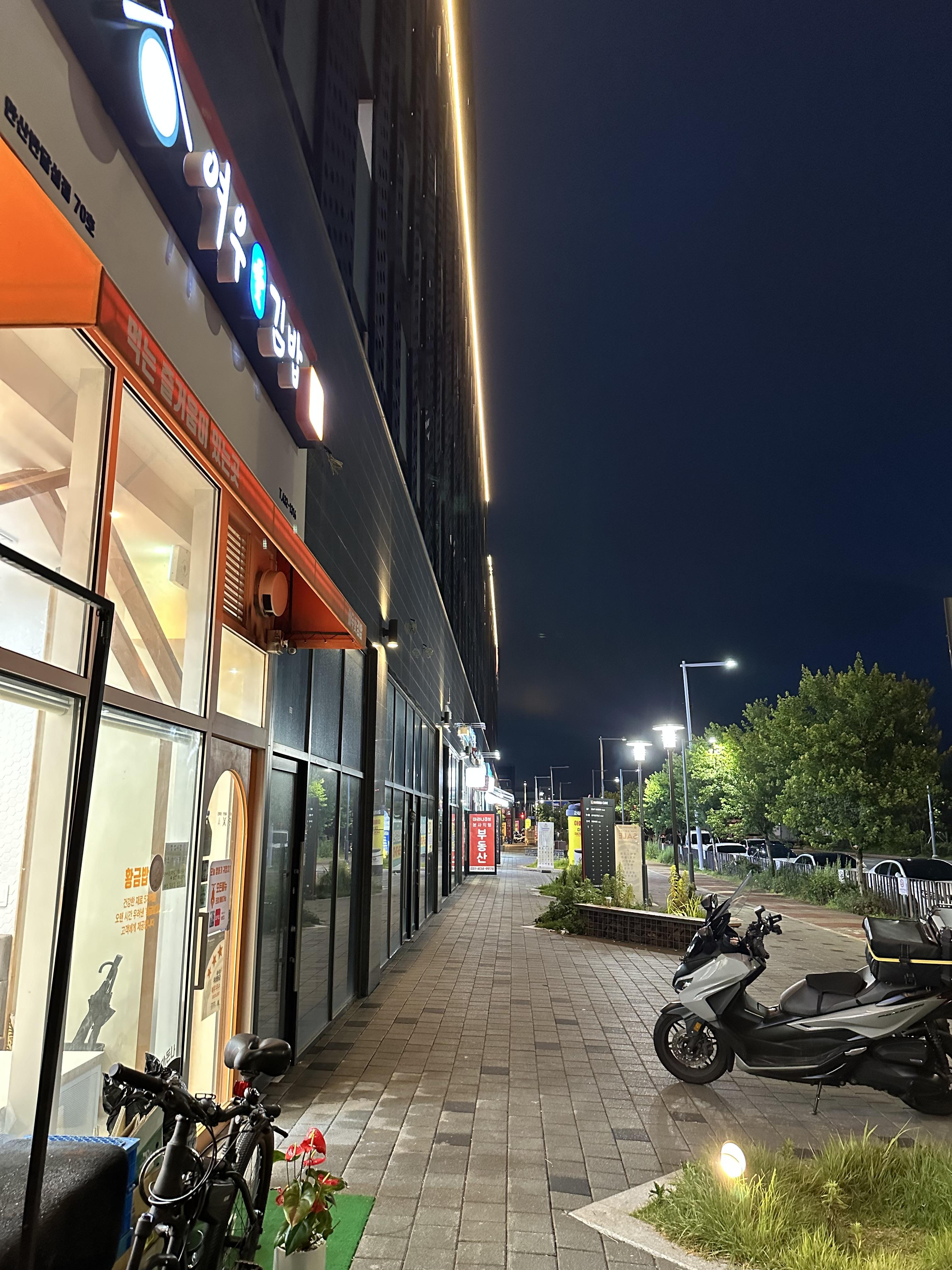 픽업 시간에 맞춰서 세탁방에서 세탁이 완료 되고 건조기에 세팅 시키고는 음식을 받으러 갔습니다. 반달섬에 위치한 마리나큐브 오피스텔이 준공한지 1년이 되었는데요. 초기에는 조명도 없고 상가도 없어서 섬처럼 어두운 도시였는데요. 1년이 지나니까 상가도 조금씩 늘어나면서 주위에 조명과 함께 도시의 분위기가 갖추워지고 있었습니다.