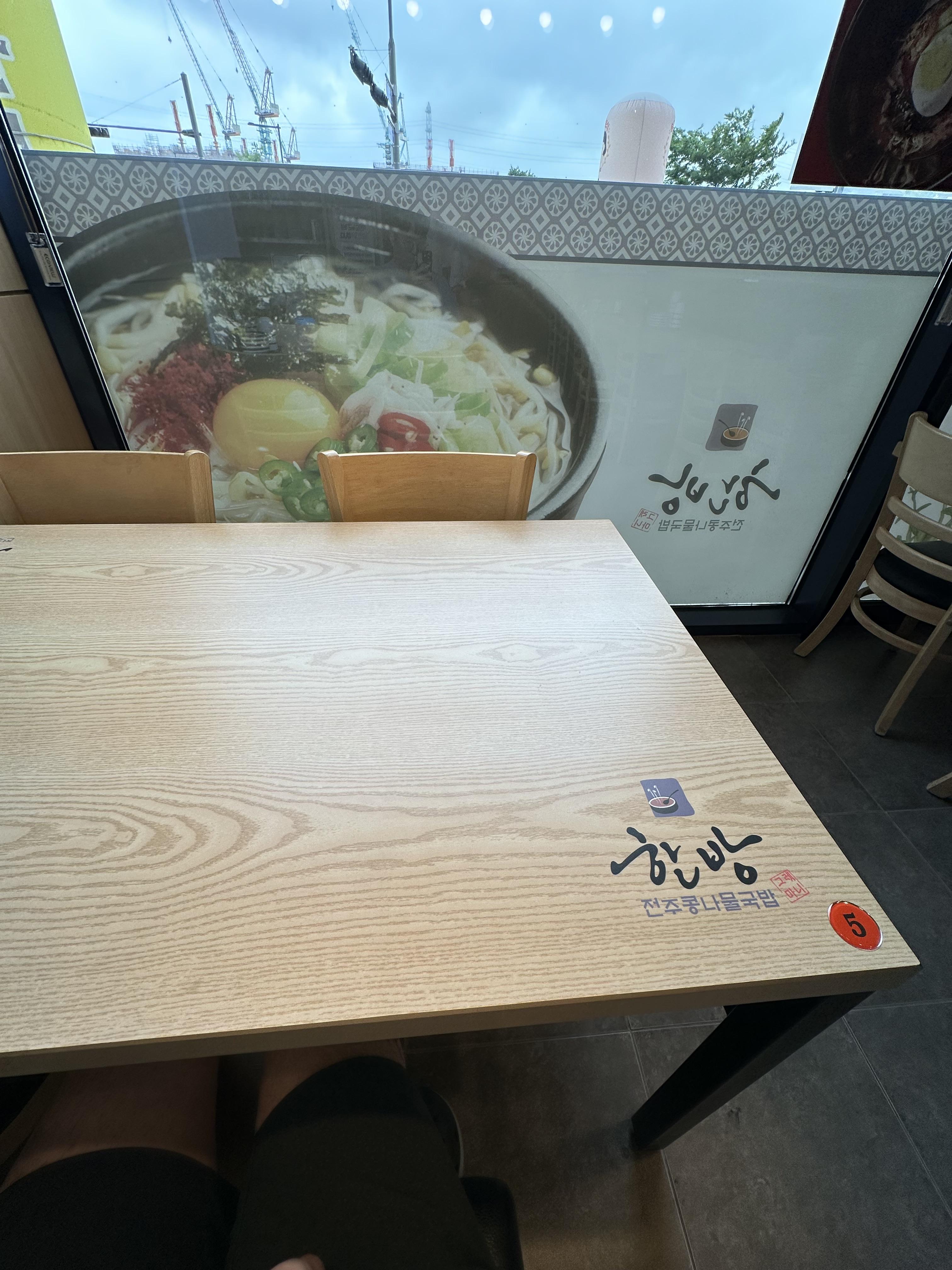 한방 전주 콩나물 국밥 안산 반달섬점의 매장 내부 크기는 다른 매장과 큰 차이는 없었습니다. 작지도 크지도 않은 적당한 크기였습니다. 아직도 반달섬 여기저기에서 공사중인 곳이 많기 때문에 창문 밖에는 공사장 풍경이 느껴지고는 합니다. 아마 2-3년은 더 지나야 주변 건물 모두 공사 끝나면서 인프라도 서서히 갖춰지지 않을 것 같습니다.