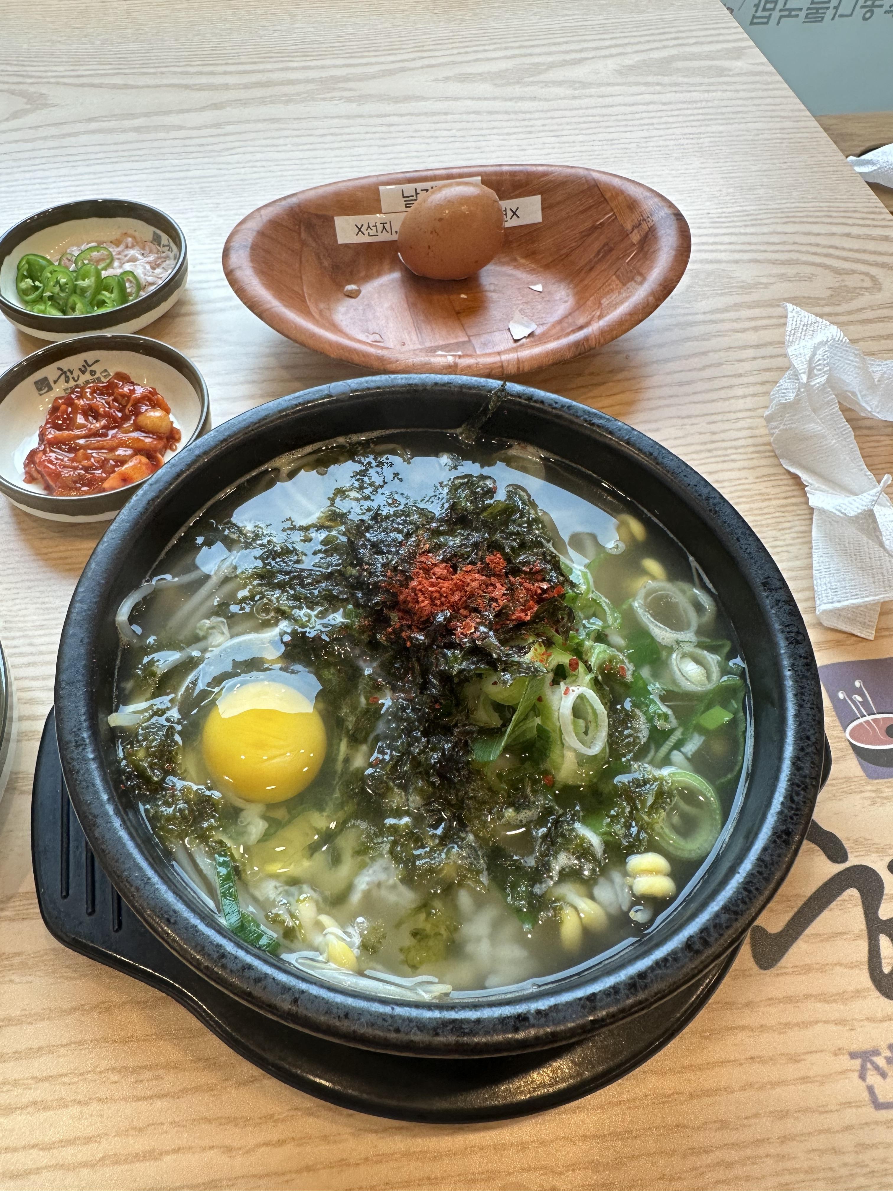 그리고 반찬 나올 때 함께 받은 날계란을 살살 깨서 콩나물 국밥에 넣고 저어주면 먹으면 됩니다. 국물이 뜨거우니까 잘 불어서 드시거나 앞젚시에 덜어서 먹으면 입안에 화상입는 일은 줄일 수 있습니다.