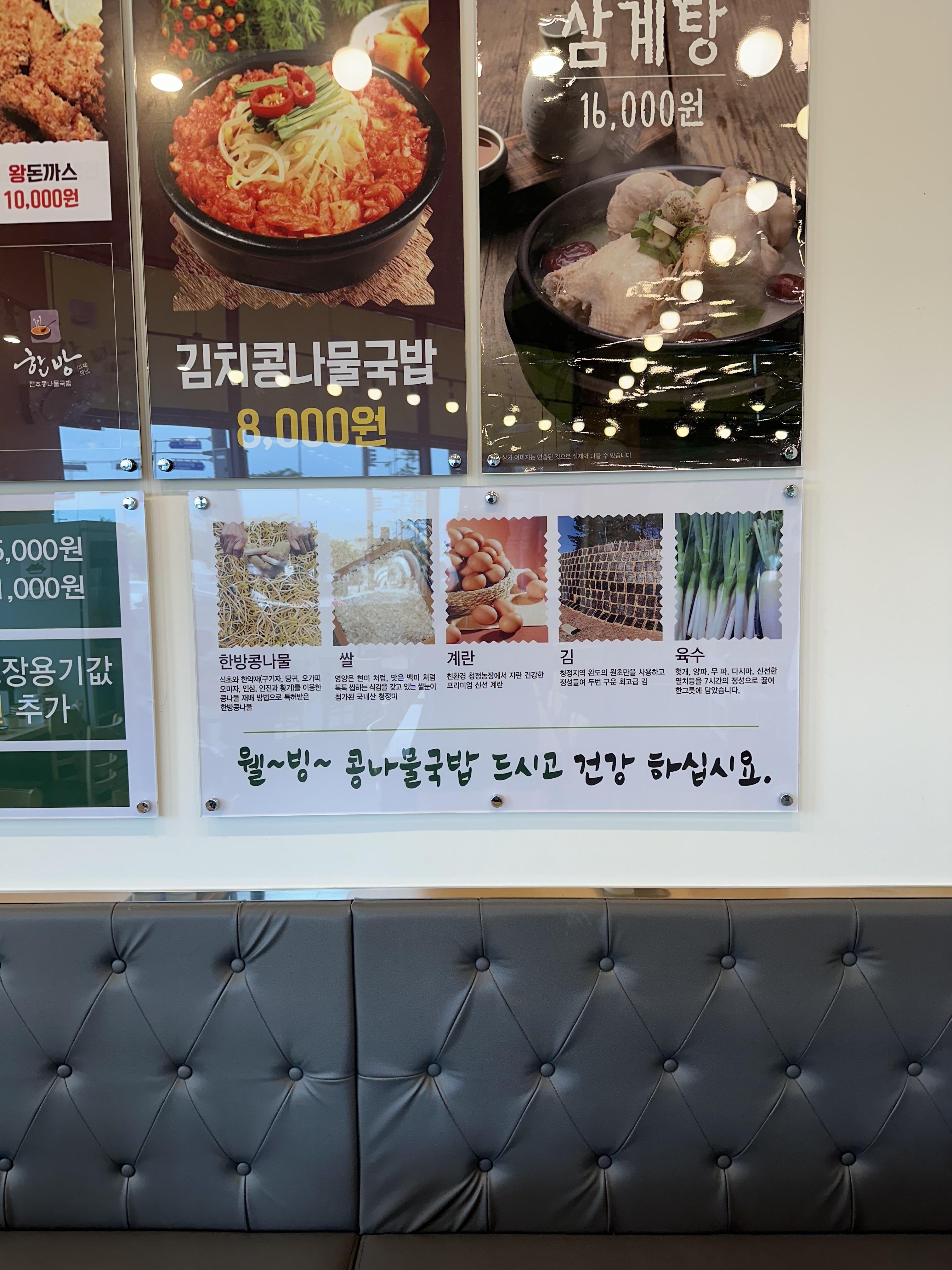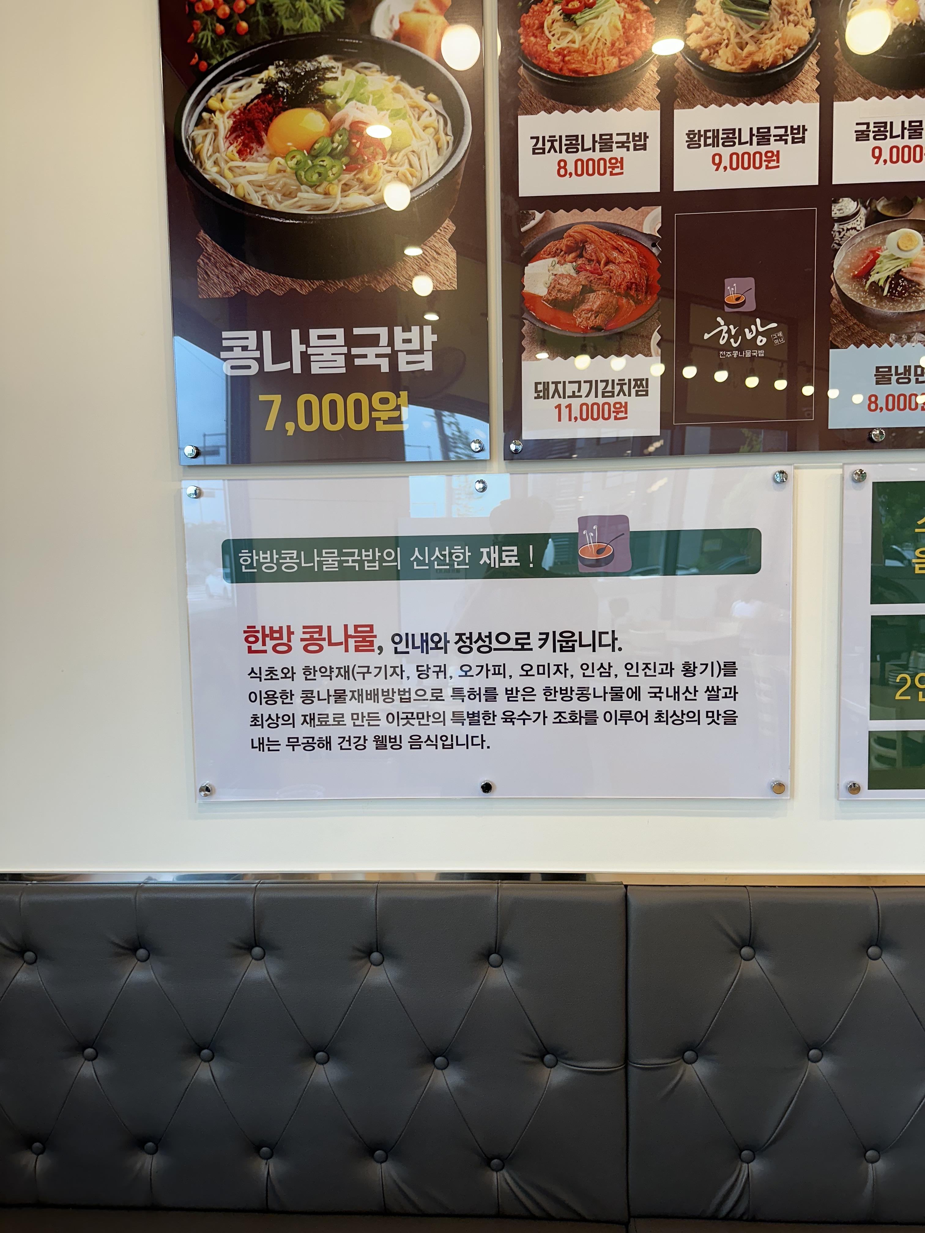 - 콩나물국밥은 무려 7000원이라는 요즘 고물가 시대에서는 저렴한 가격에 판매됩니다.