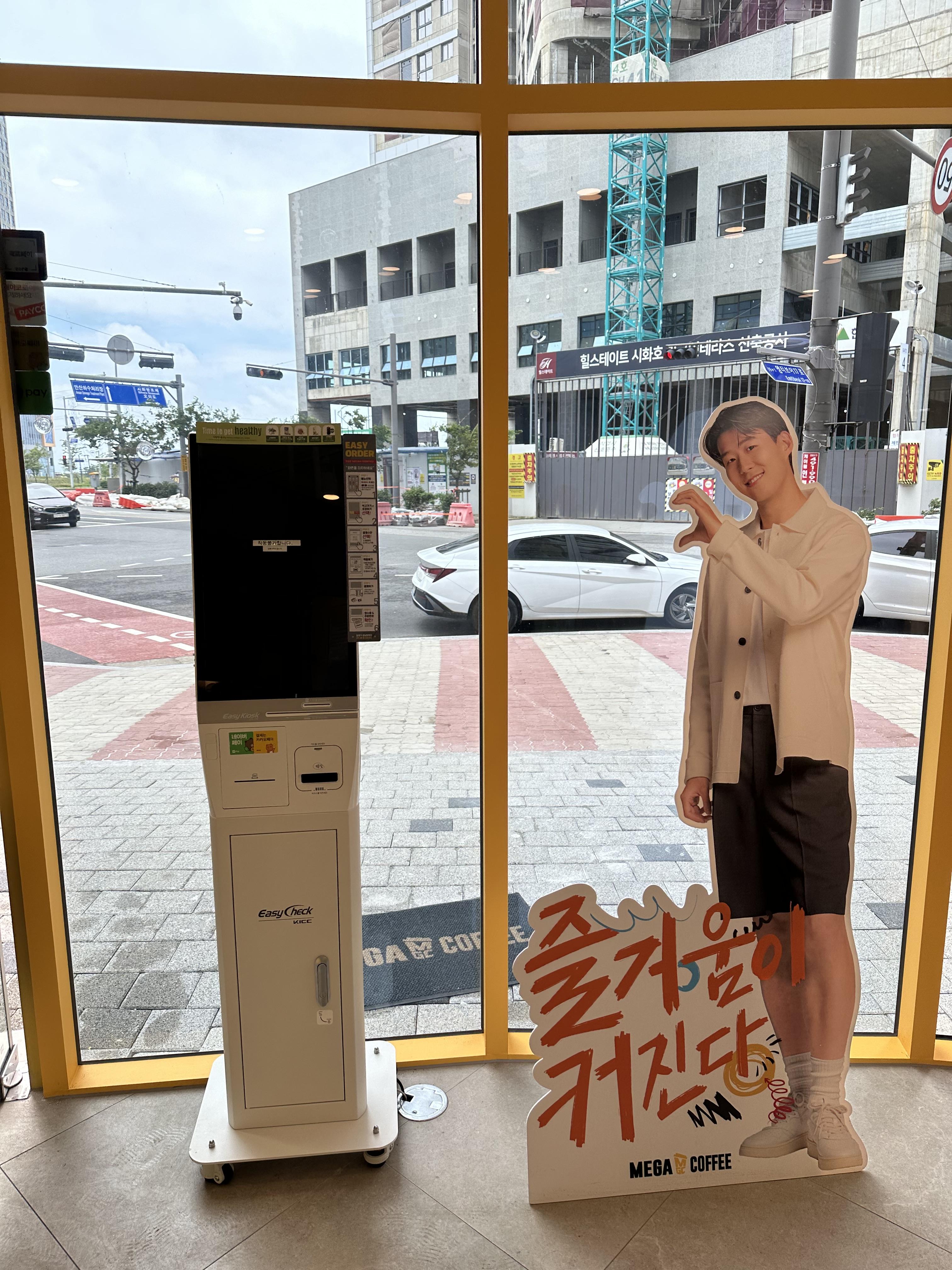 그리고 앞으로도 계속 들어올 예정이니 관심을 갖고 포스팅 하려고 합니다. 요즘 카페는 가게 안으로 직접 들어오지 않더라도 바로 테이크아웃 할 수 있도록 매장앞에 키오스크가 있는 곳이 많습니다. 메가커피 반달섬저의 경우에도 가게 들어오지 않고서도 키오스크를 이용해 주문을 할 수 있었습니다. 저는 메가커피 무료 쿠폰이 있어서 기한 내에 사용하는 점과 반달섬에 메가커피가 들어와서 이용해야겠다 싶어서 오게되었습니다.