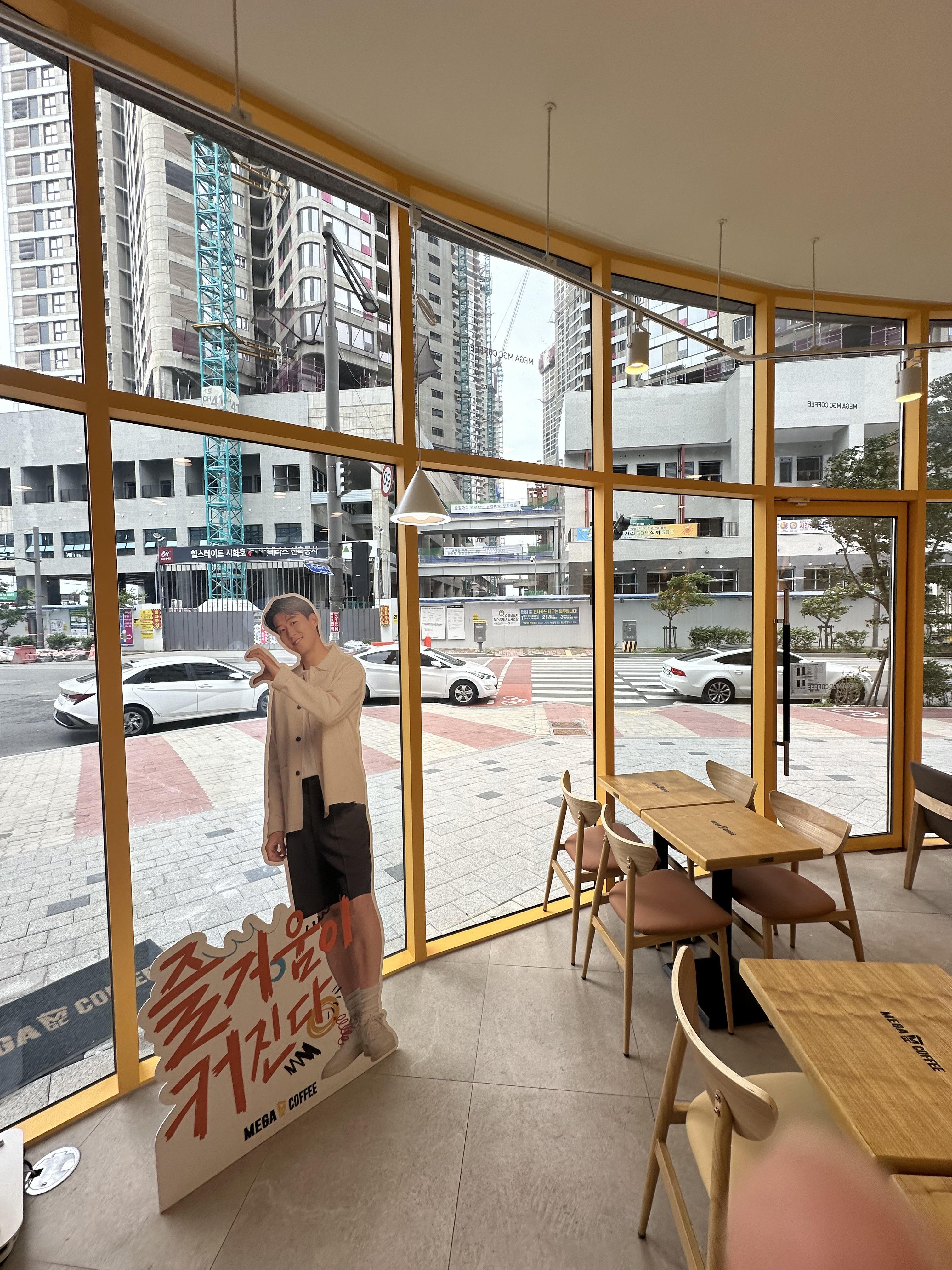 메가커피 반달섬점의 매장 내부 규모입니다. 다른 매장보다 작지는 않고 그냥 평범한 규모였습니다, 반달섬에는 메가커피 말고 프랜차이즈 카페로 빽다방도 있습니다. 빽다방은 제가 아직 소개 해드리지 않았는데요. 메가커피와 빽다방 모두 노란색이라는 공통점이 있습니다. 같은 노란색이라 메가커피나 빽다방이나 브랜드 로고만 없다면 구분 하기 힘들 것 같습니다. 메가커피 반달섬점 옆에는 내년에 준공 예정인 라군인테라스가 바로 보이고 있습니다.