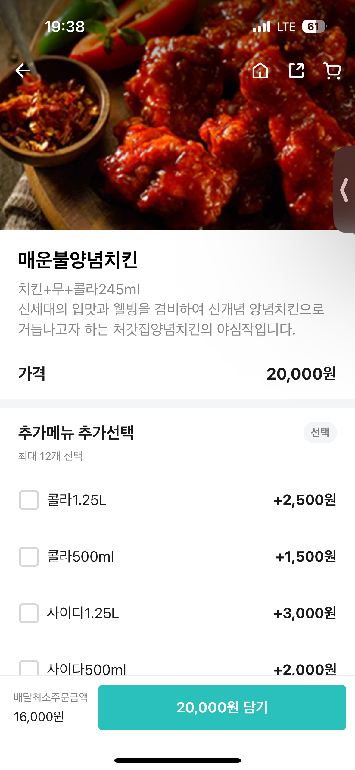처갓집양념치킨 매운불양념치킨 가격 알려드려요.