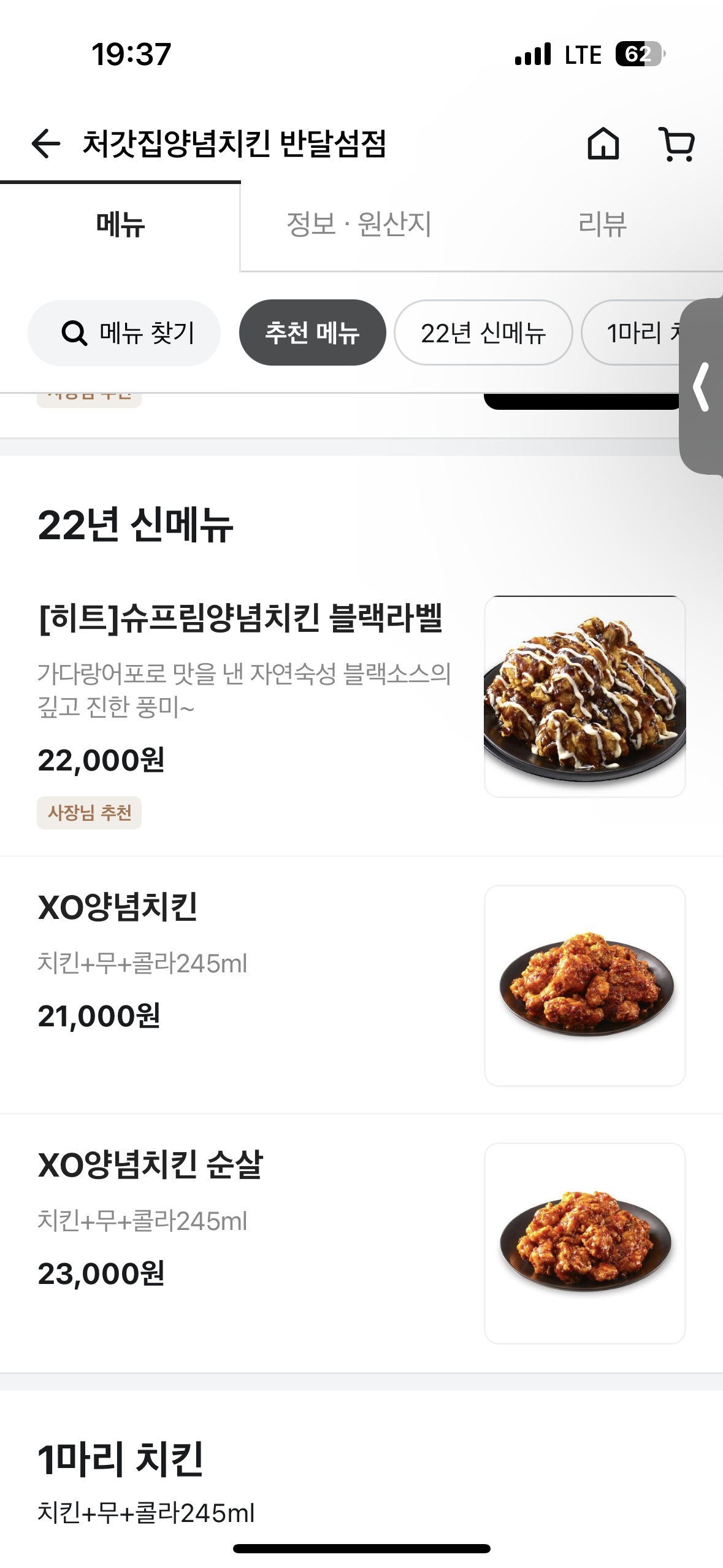 - 2022년 신메뉴로는 슈프림양념치킨 블랙라벨과 XO양념치킨, XO양념치킨 순살입니다.