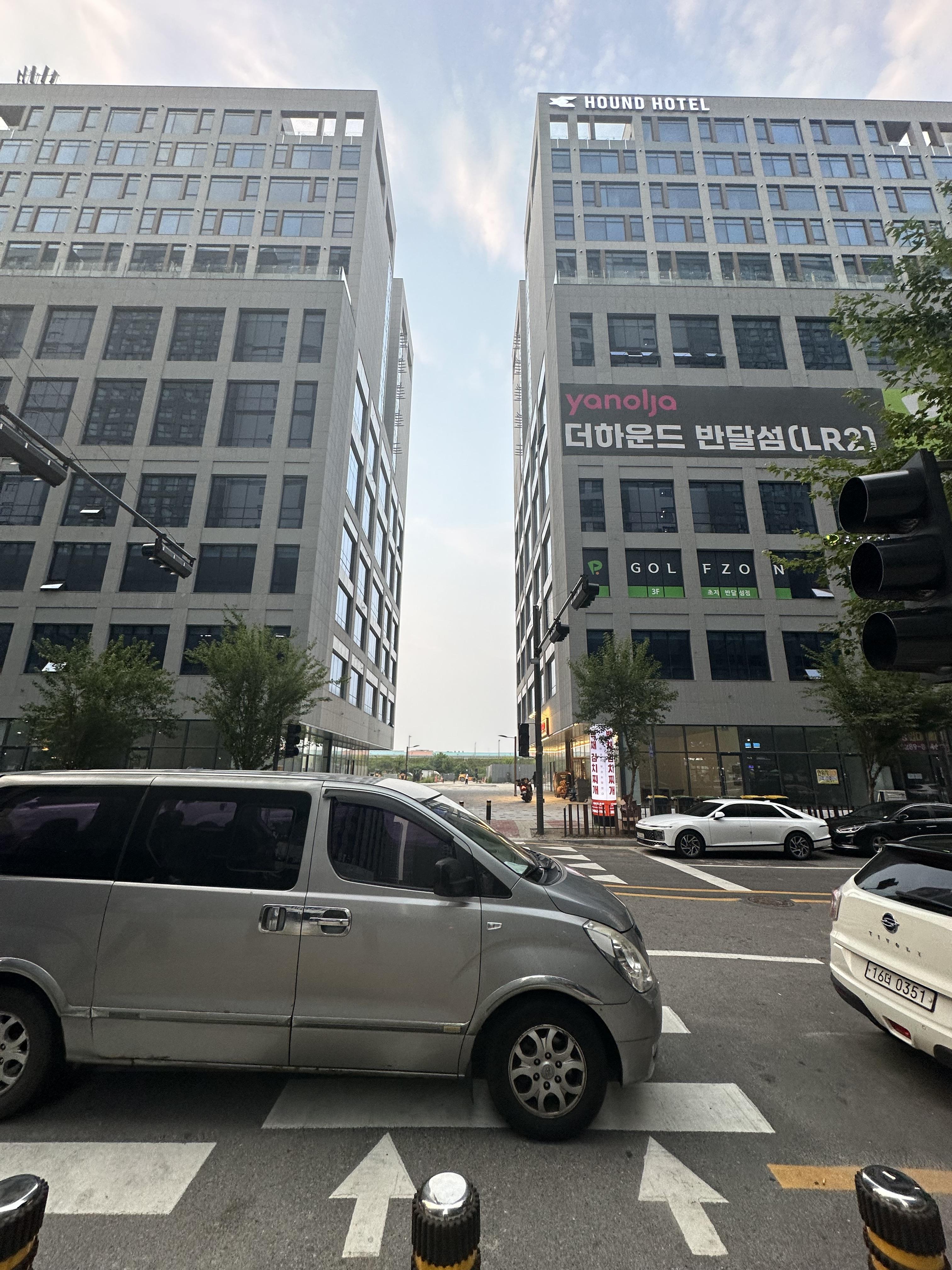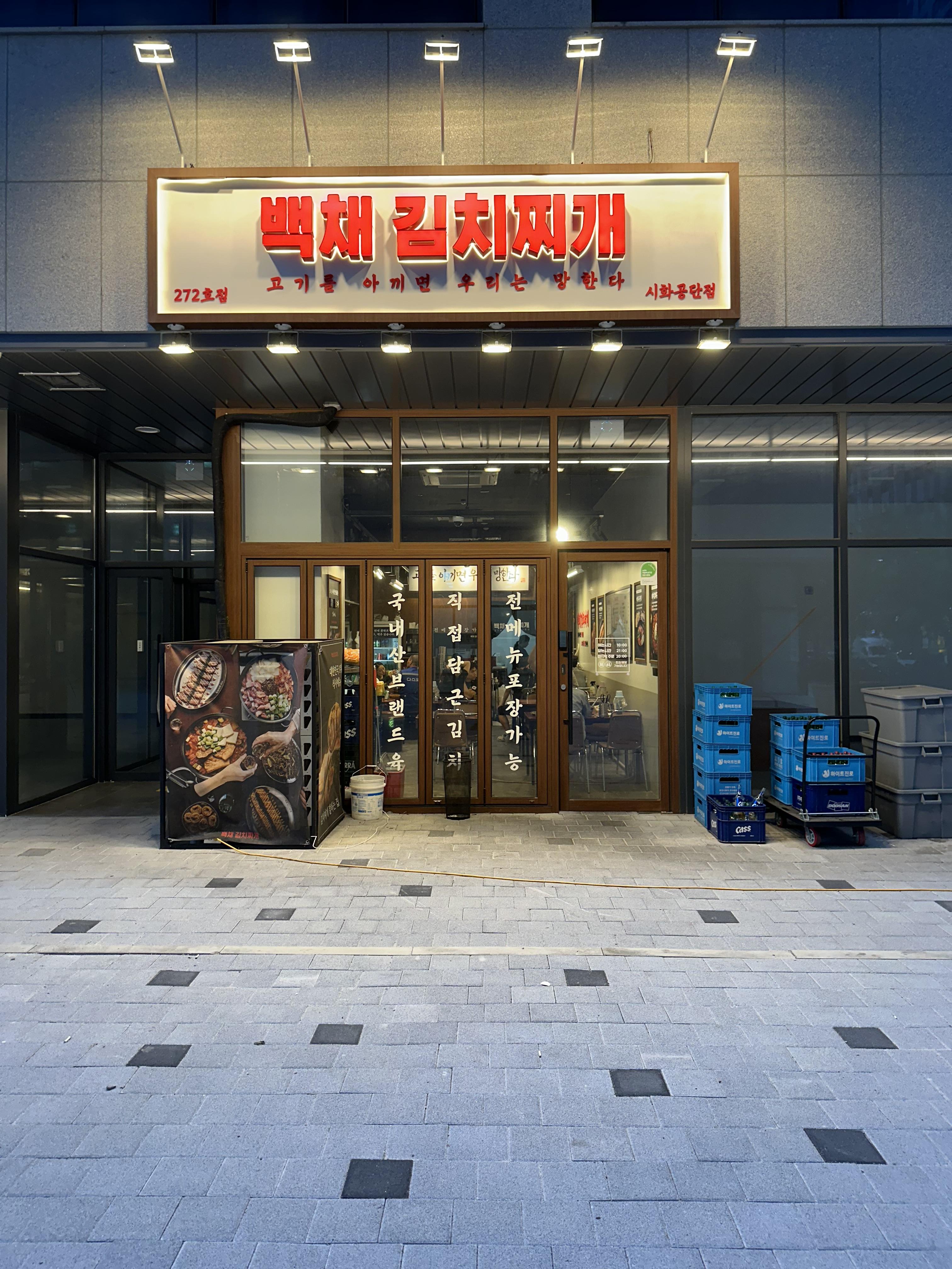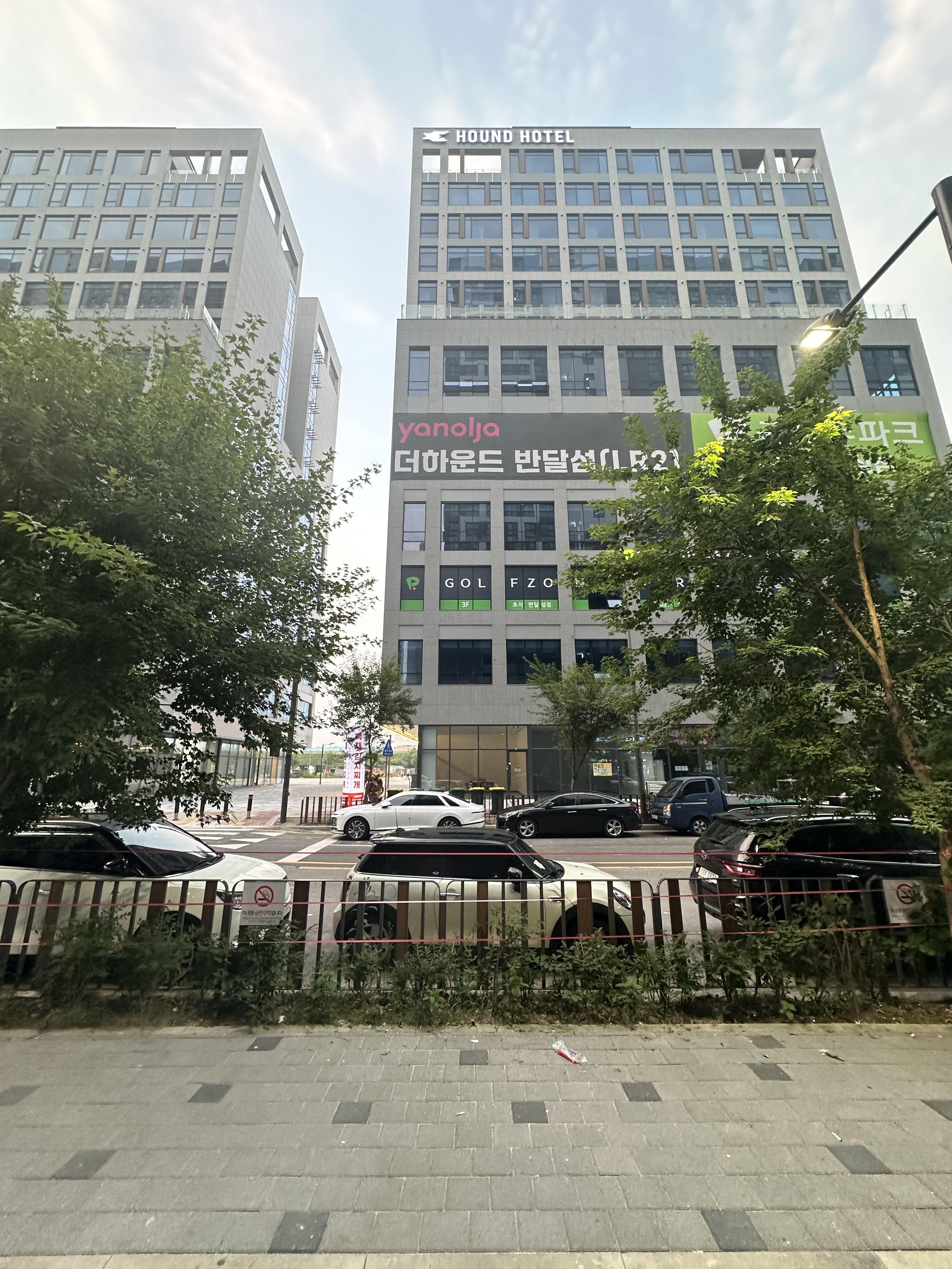 매장 내부에는 사람도 많고 사진과 영상만 찍고 당시에 7월 더운 여름에도 불구하고 덥지 않아 백채김치찌개 시화공단점 밖에서 기다리고 했습니다. 더하운드 호텔이 위한 건물은 쌍둥이 건물처럼 생겼습니다. 어렸을적 안산 반월공단(현 스마트허브)는 공장만 있어서 무서운것도 있고 별로 가고 싶지 않은 느낌이었습니다. 그러나 스마트허브안에 있는 반달섬에는 높은 건물과 다양한 프랜차이즈가 가게들이 있어서 공단이라는 이미지는 전혀 느껴지지 않습니다.