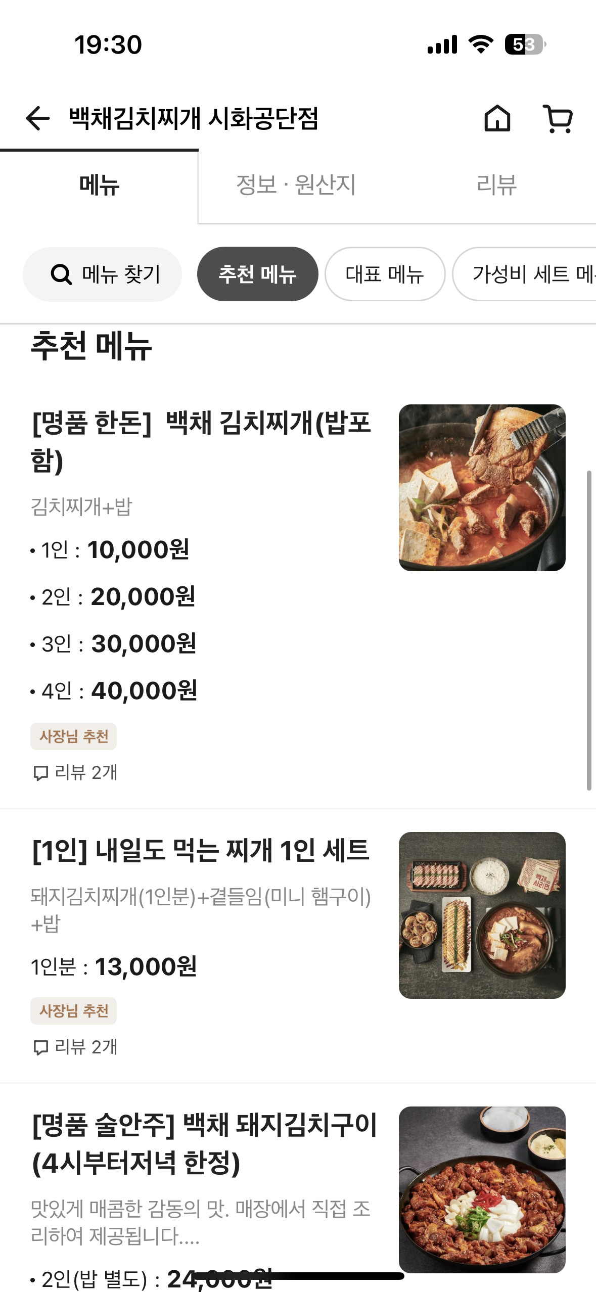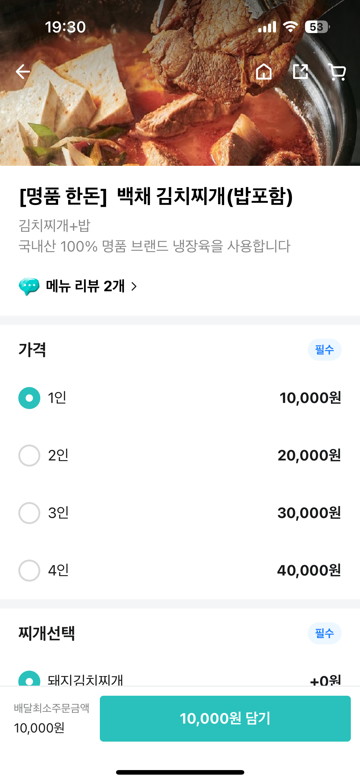 - 1인 가구를 위해서도 팔고 있으며 기본 김치찌개는 단돈 10000원