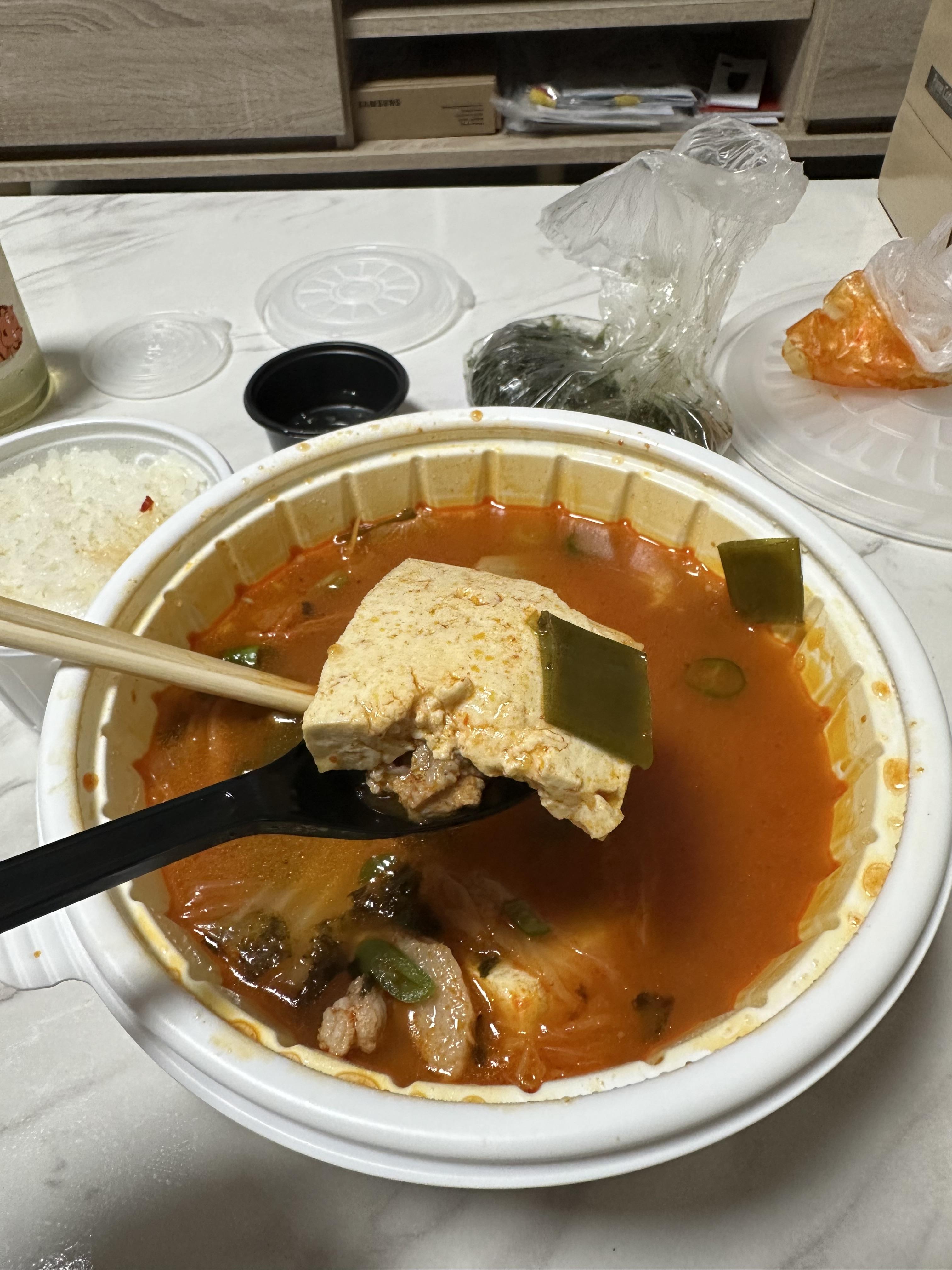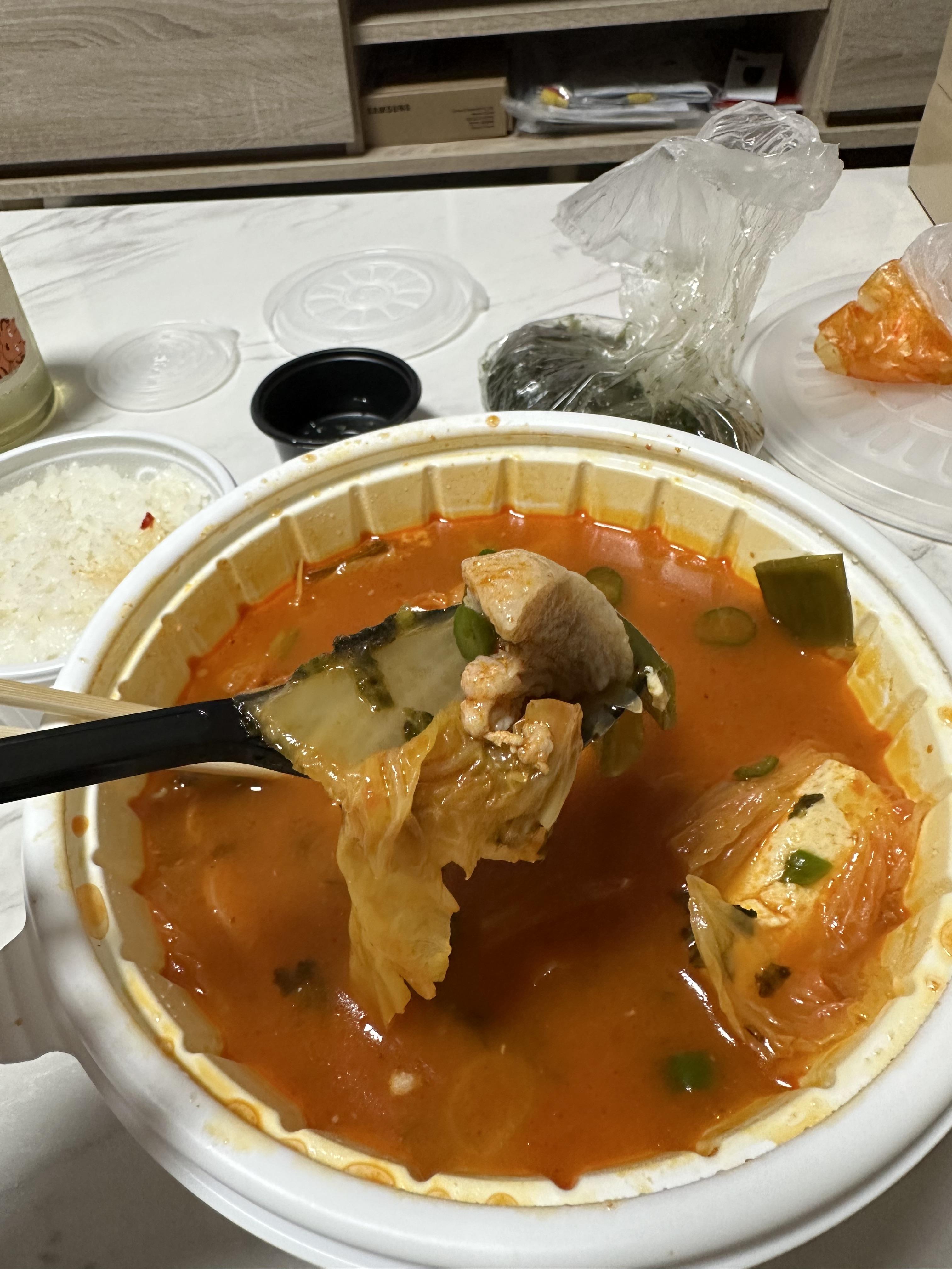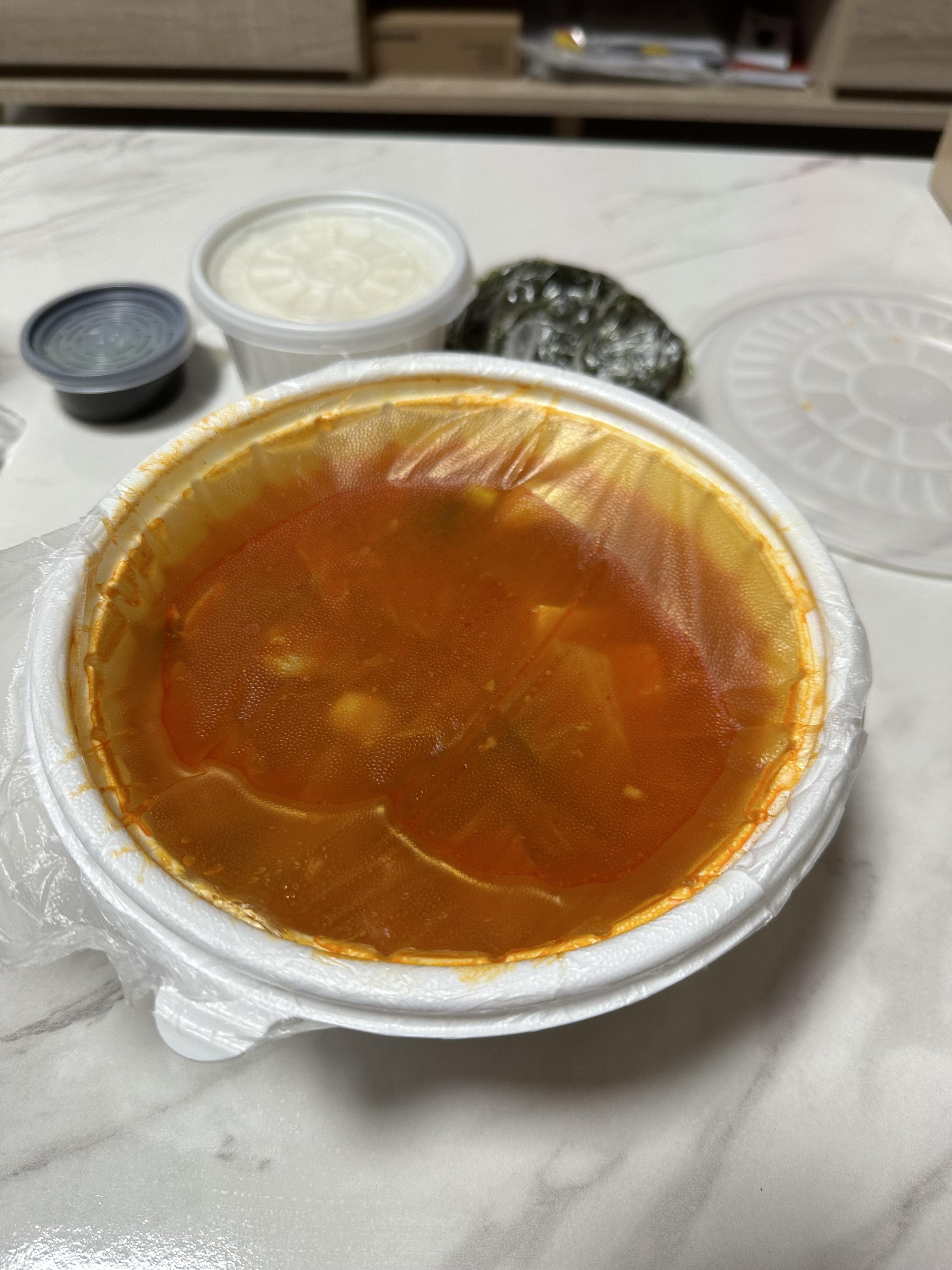 아무래도 김치찌개는 플라스틱 그릇 보다는 매장에서 직접 먹어봐야될 것 같습니다. 포장을 해오는 동안 식는 것도 있구요. 매장에서 뚝배기나 전용 그릇을 통해 막 끊인 김치찌개를 먹어봐야 진짜 김치찌개 맛을 알 수 있을 것 같습니다.