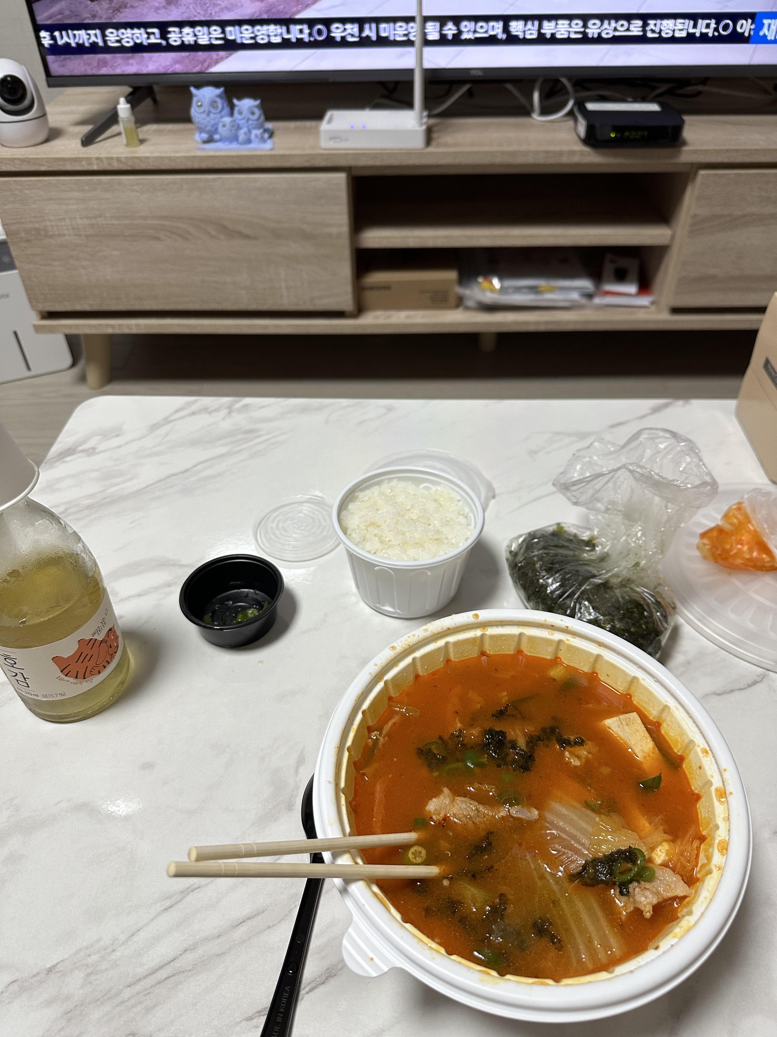 그러나 어찌되었든 뱃속에 들어가면 똑같은거라 생각했습니다. 아무래도 얼큰하고 매운 김치찌개에는 소주가 어울리겠죠. 혼자서 소주와 함께 티비보면서 백채김치찌개 한돈 1인분을 먹게되었습니다.