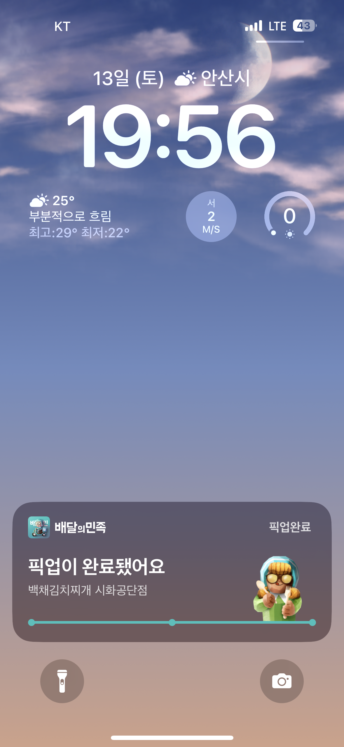 밖에서 기다린지 픽업 예정시간보다 5분 늦어진 시간에 직원분이 김치찌개 포장을 들고 나왔습니다. 조금 늦어서 미안하다면서 친절하게 음식을 전달받고 저는 오피스텔로 올라갔습니다. 올라가면서 보니 핸드폰 푸시알림으로 픽업이 완료가 되었다는 것을 볼 수 있었습니다.