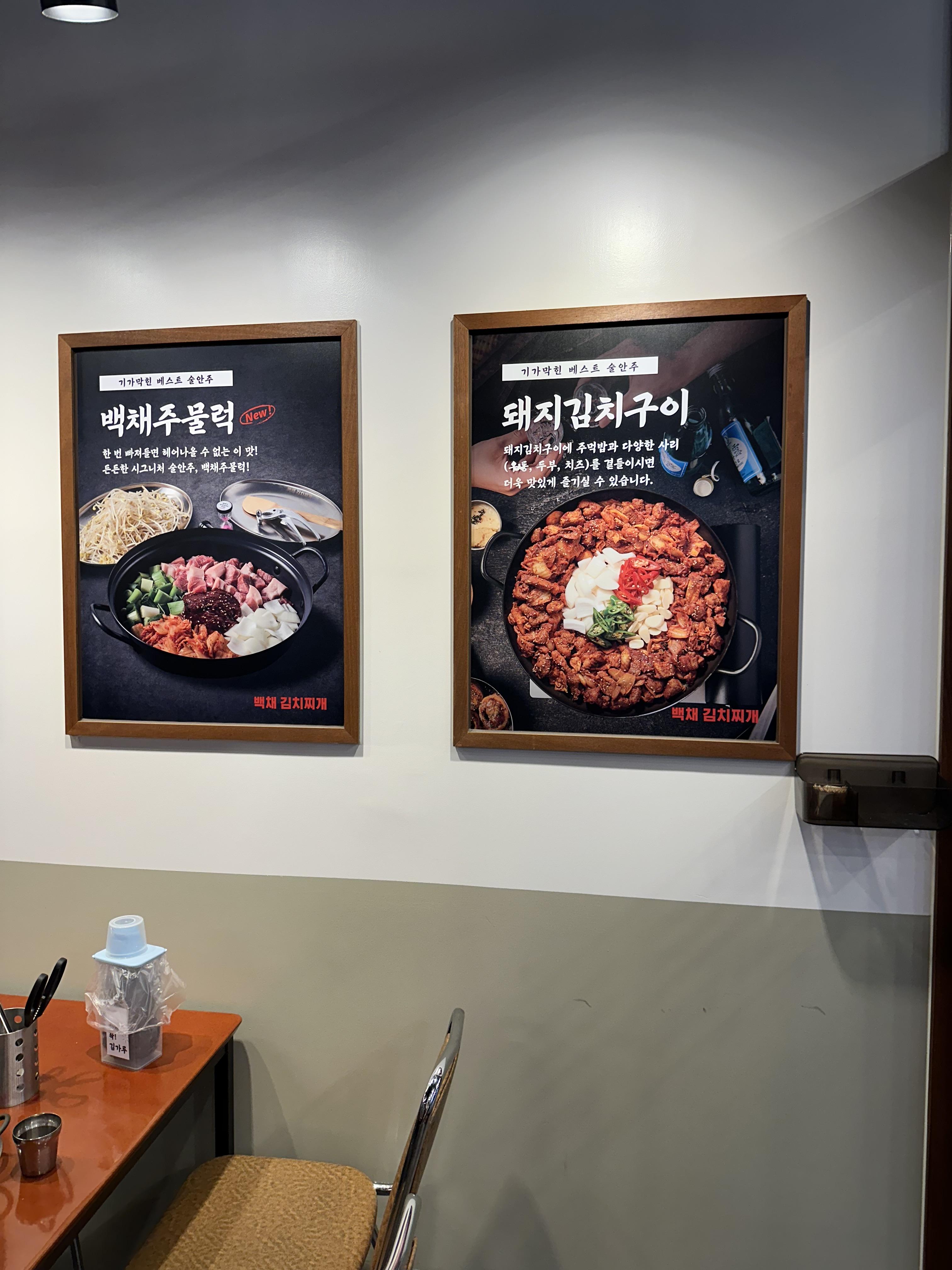 - 대표 메뉴로는 명품 한돈 백채 김치찌개 (밥 포함)이 있습니다. 김치찌개와 밥으로만 구성 되어있습니다. 그 외에 옵션으로 취향에 따라 청량 고추 넣을수 있습니다. 고기나 라면사리, 추가 김치, 만두 사리 등 다양하게 있으니 배민 앱 참고 바랍니다. 가구수 별로 다양한 가격에 판매되며 1인부터 다양하게 시킬 수 있습니다. 1인 가구 부담 안가져도 되요. 추천 해요.