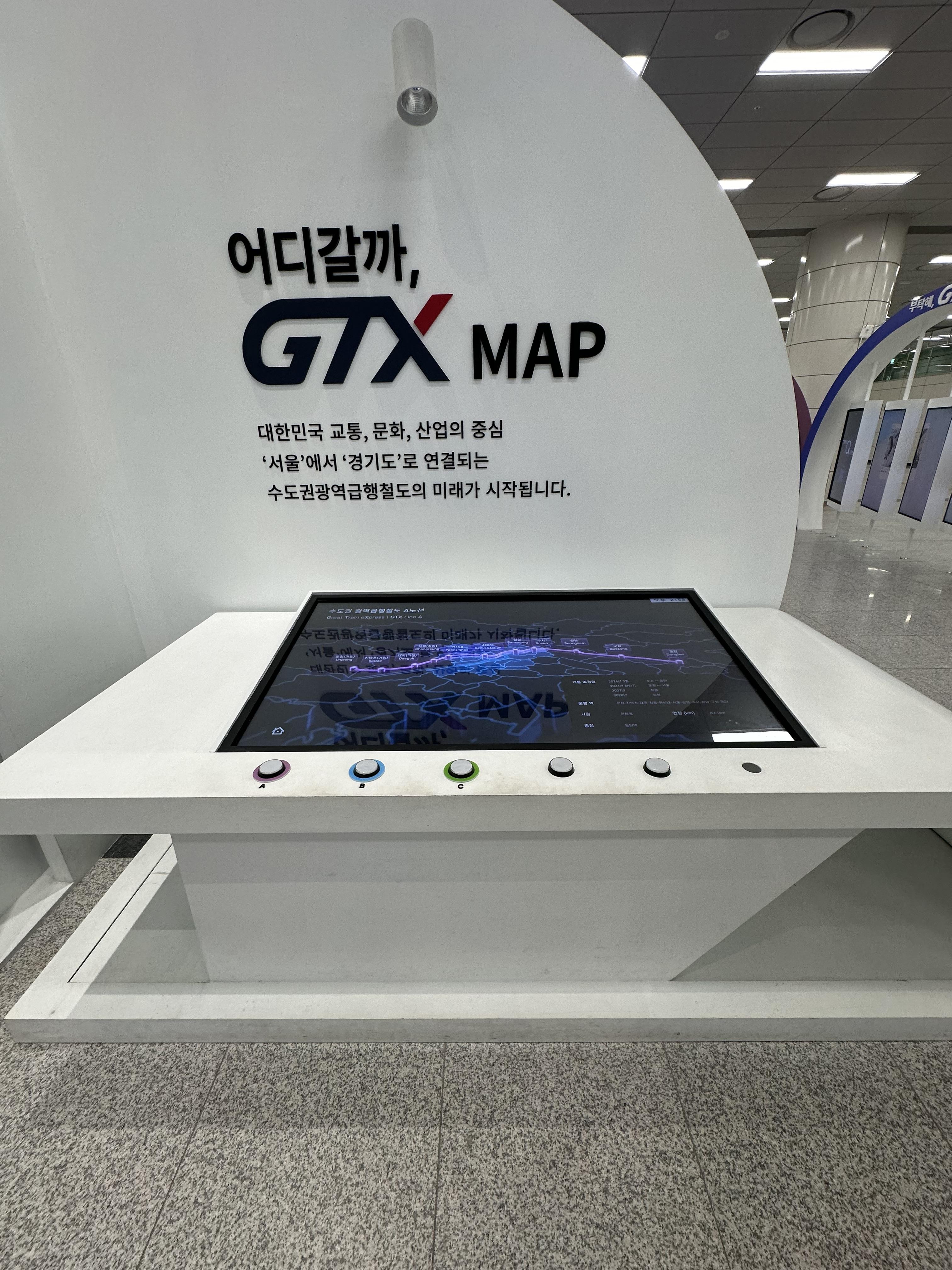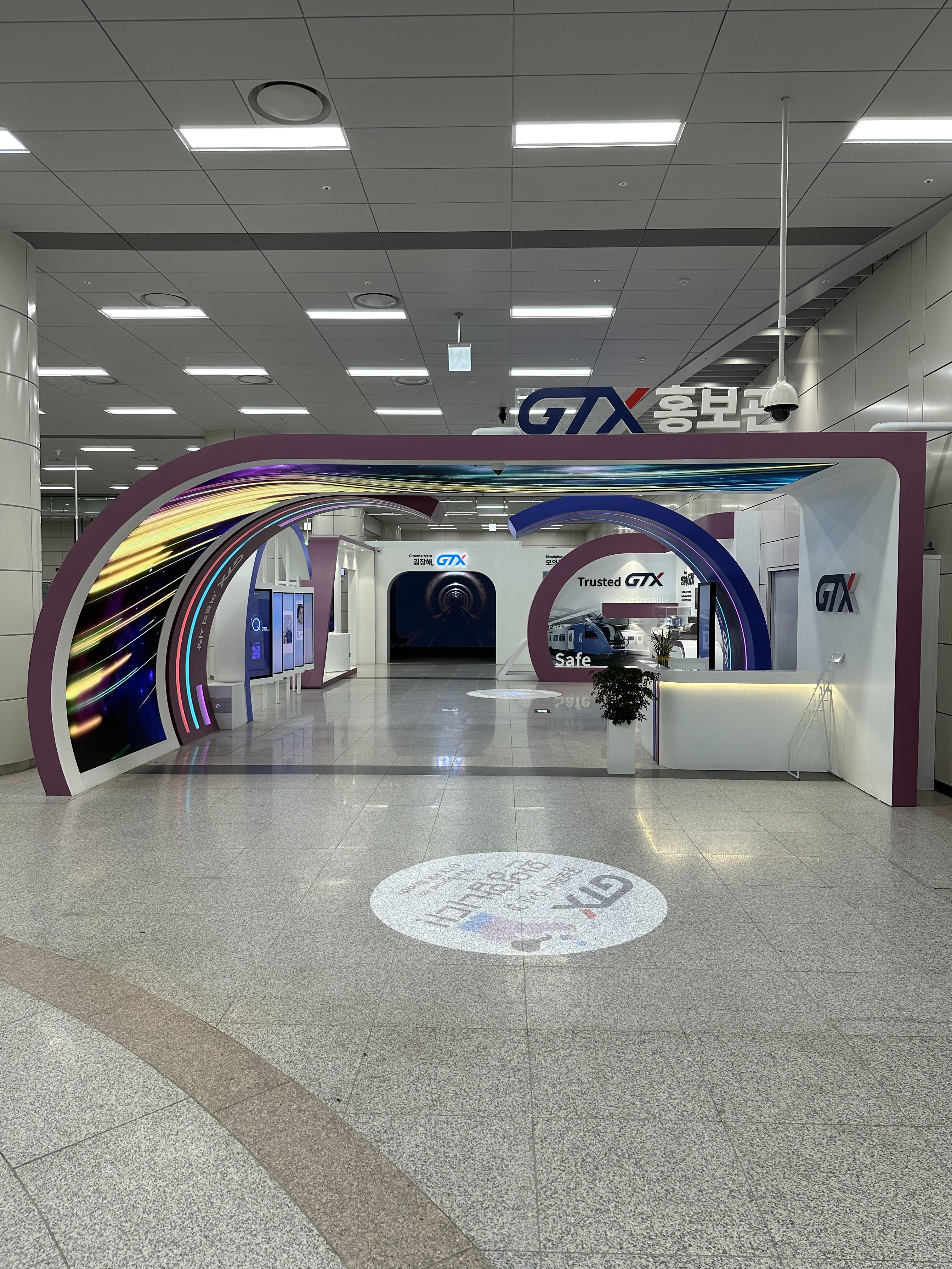 수서역 광역급행철도 GTX-A의 개찰구는 종점이기도 하며 향후 삼성과 파주 운정방향과 동탄방향 출구가 하나로 되어 있는 것으로 볼 수 잇었습니다. 또한 승강장도 양쪽으로 동탄방향과 삼성방향으로 되어있어서 굳이 개찰구 밖으로 나가지 않더라도 다시 동탄방향으로 가는 GTX-A를 탈 수 있었으나 오래간만에 수서역 구경도 하며 SRT도 타보고 싶어서 수서역으로 빠져 나왔습니다. 수서역 한쪽에는 GTX 홍보관이라고 해서 작은 전시관이 설치 되어있었습니다.
