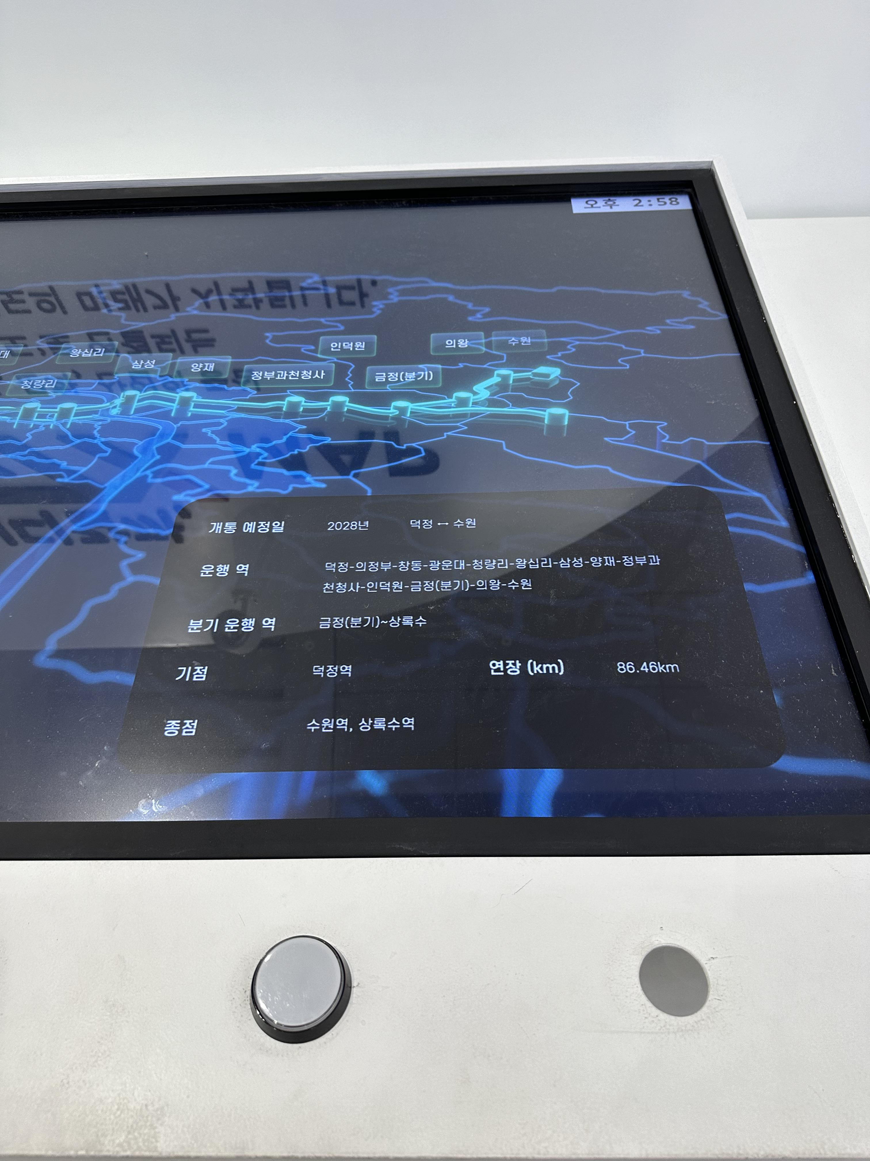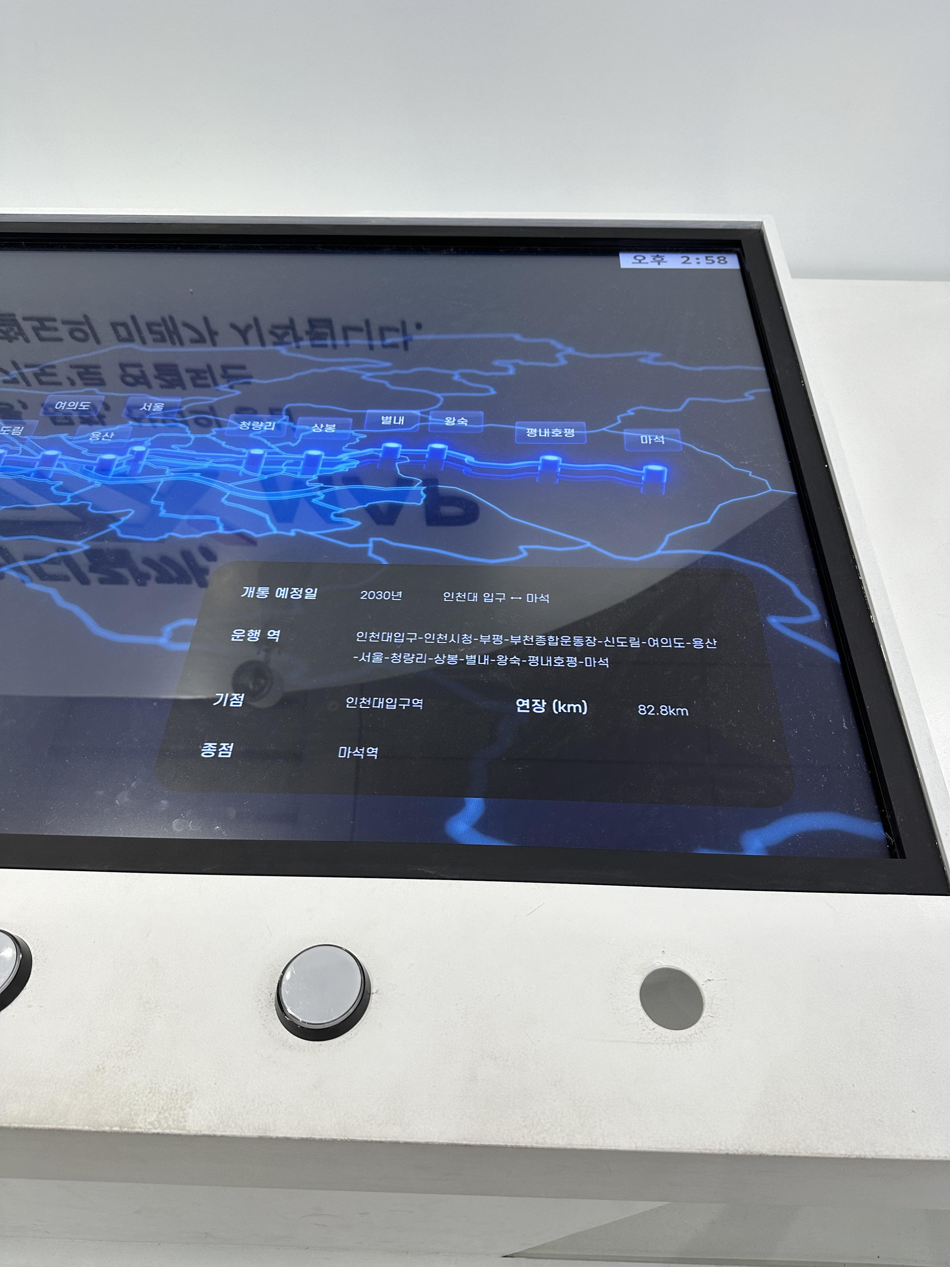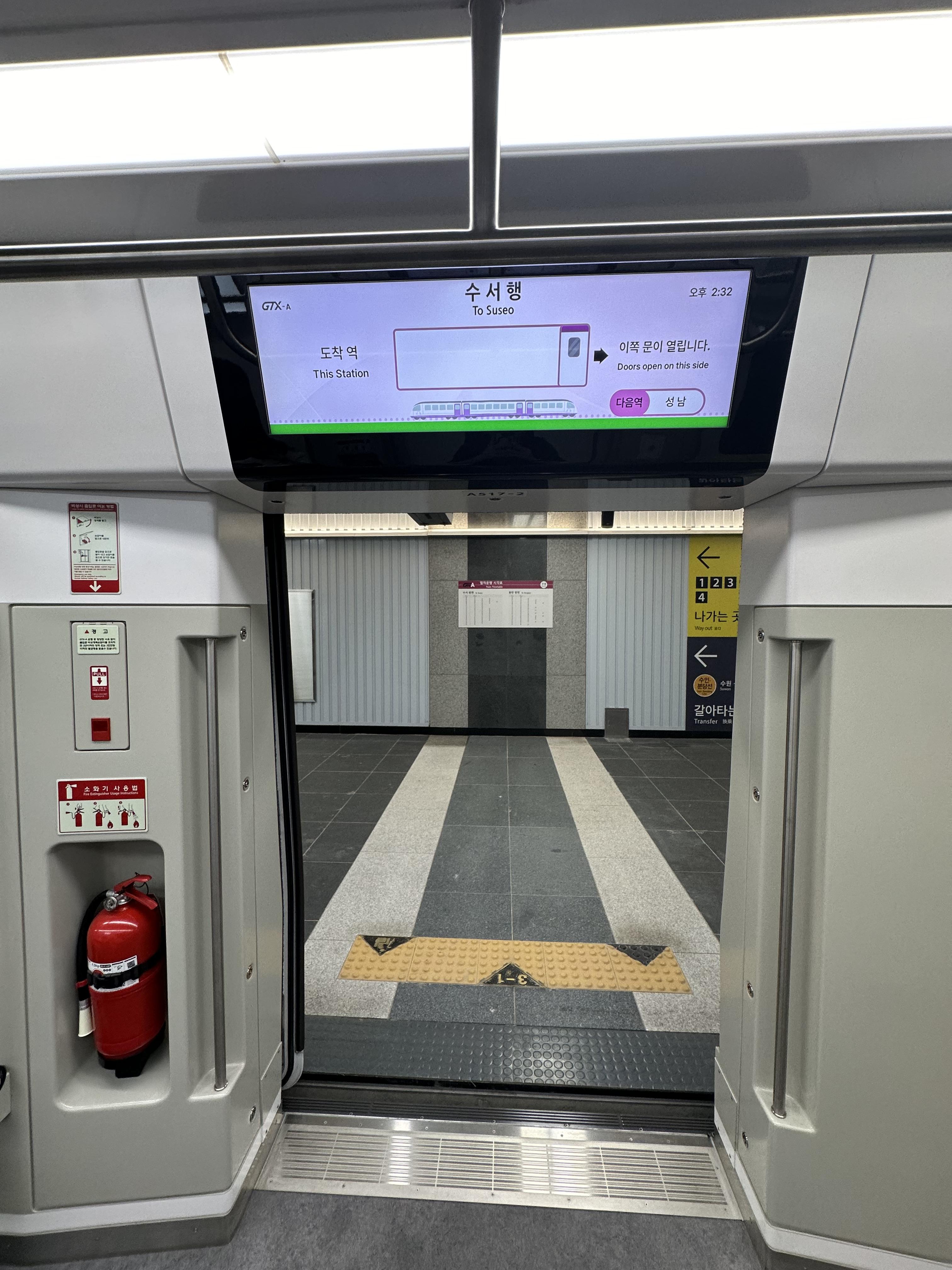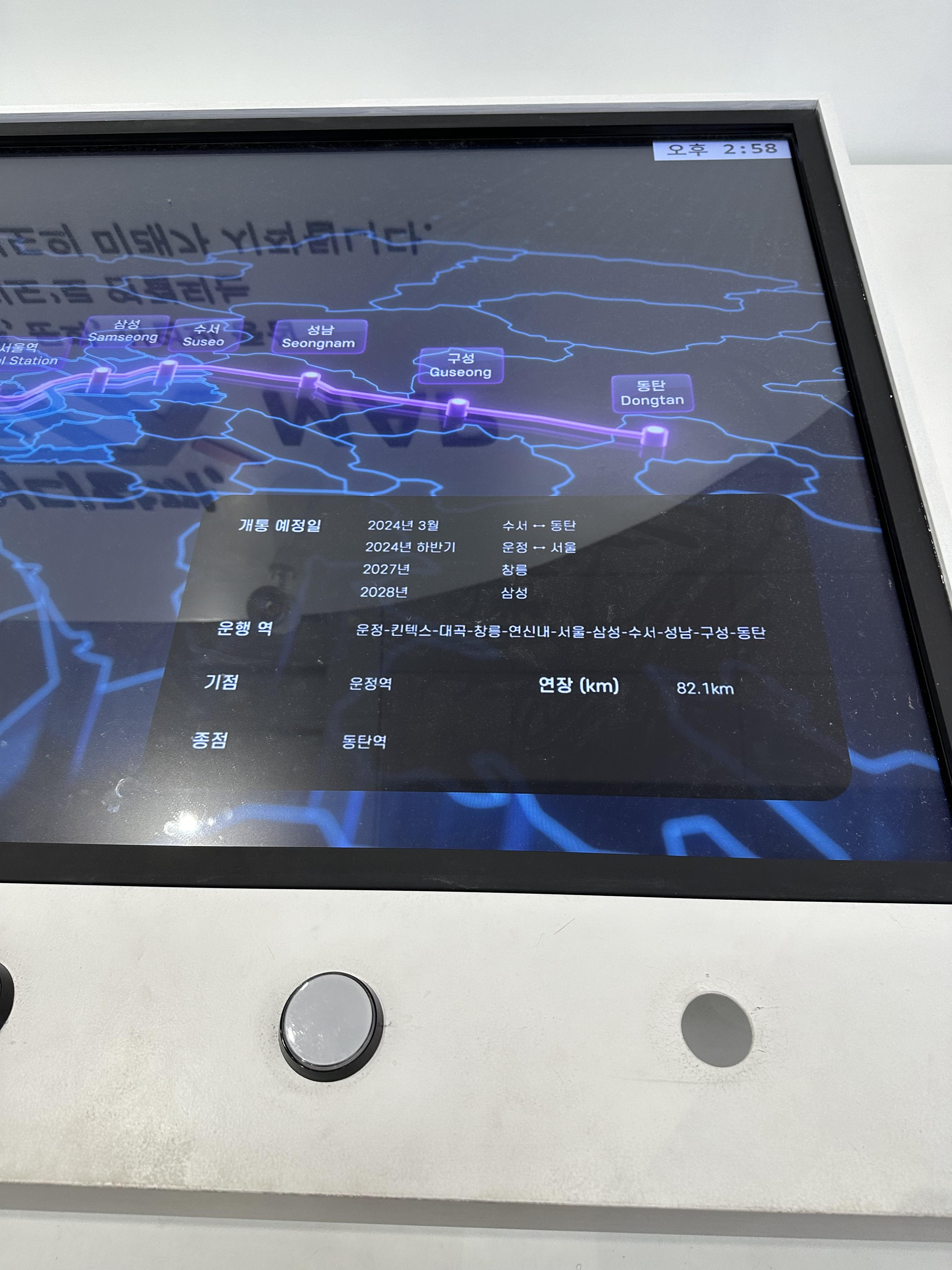 - GTX-A의 노선도는 LED로 보여주고 있으며 운행 중 간간히 현재 몇 km로 달리는지도 보여지고 있었습니다.
