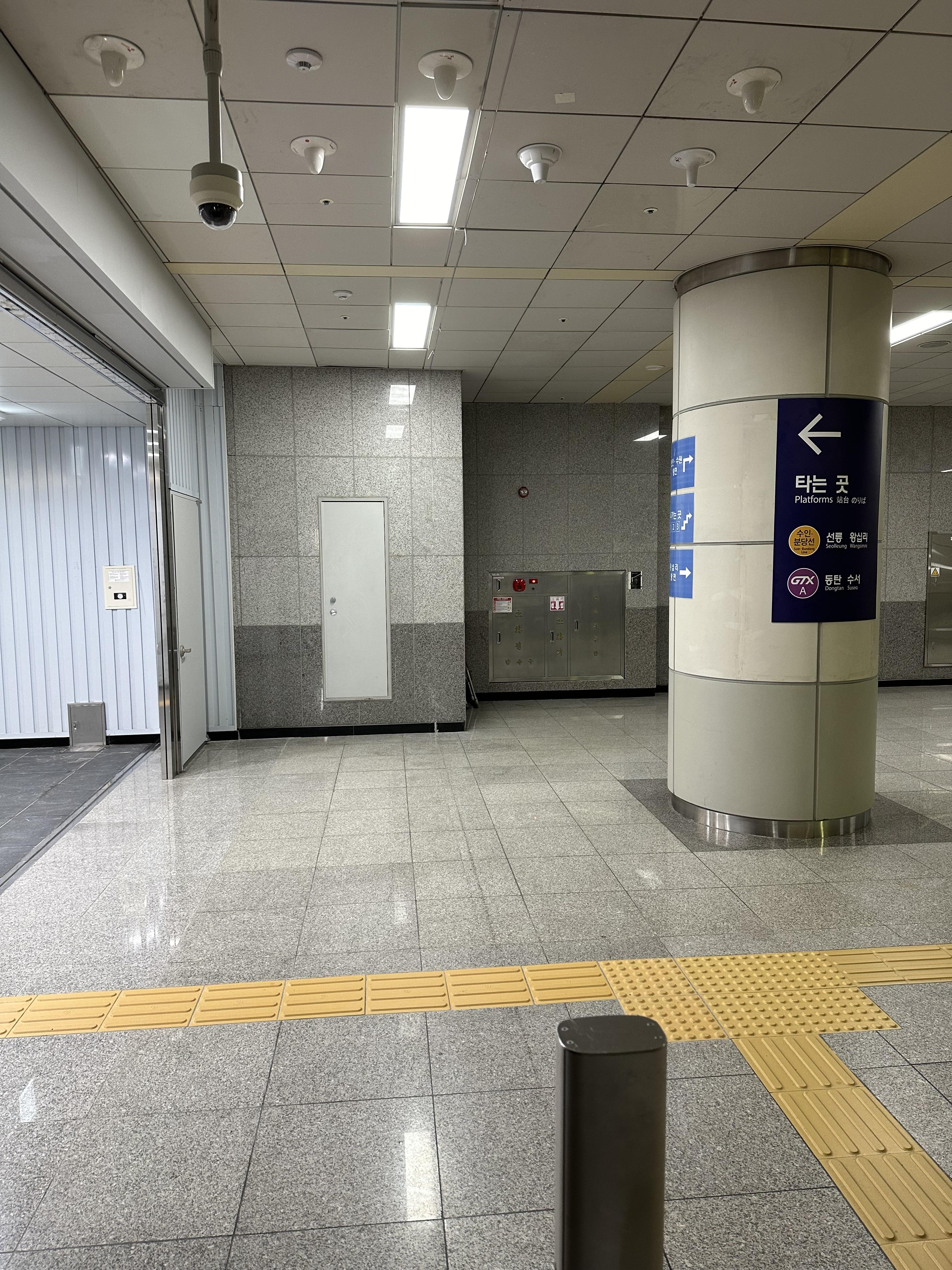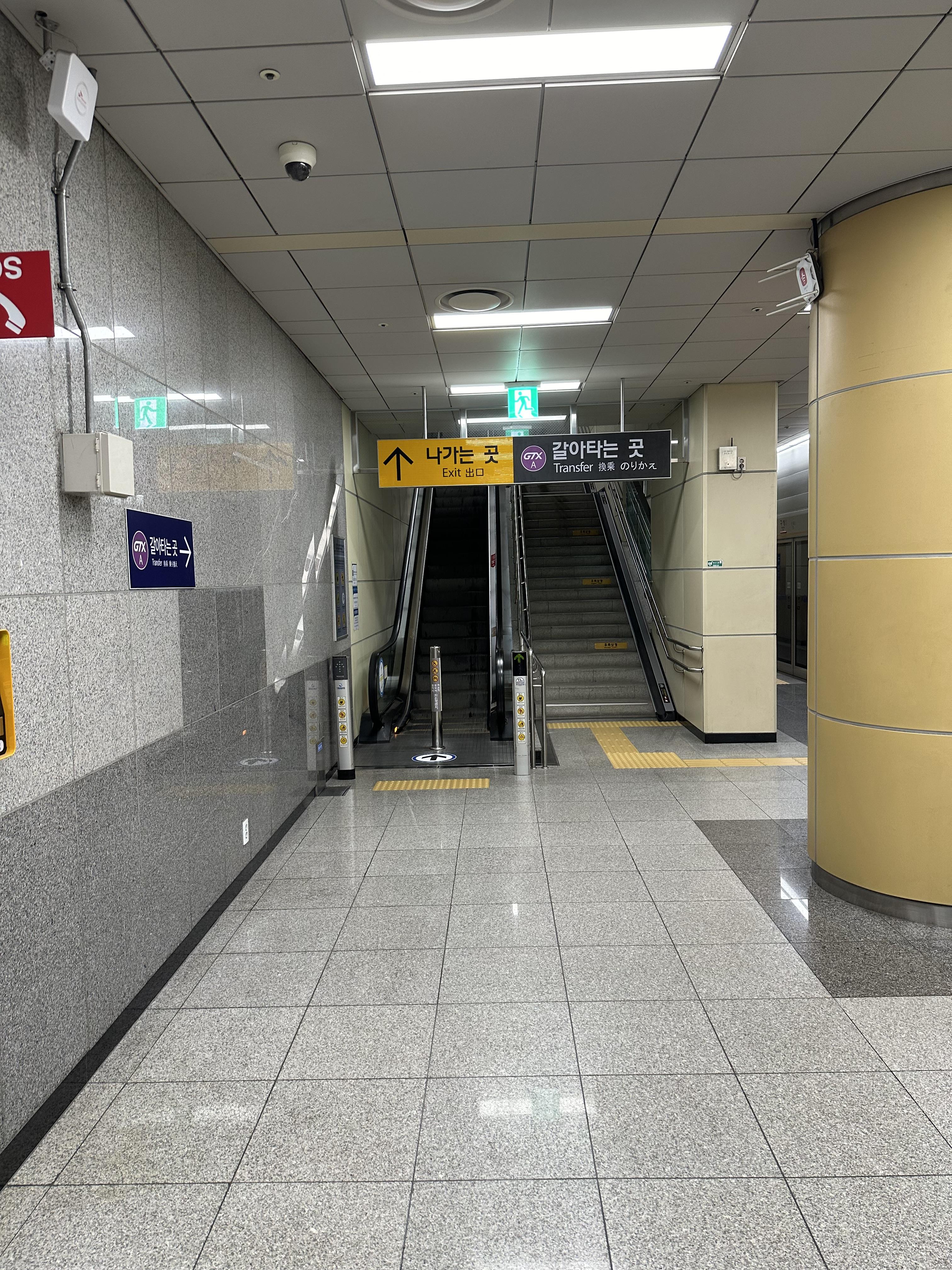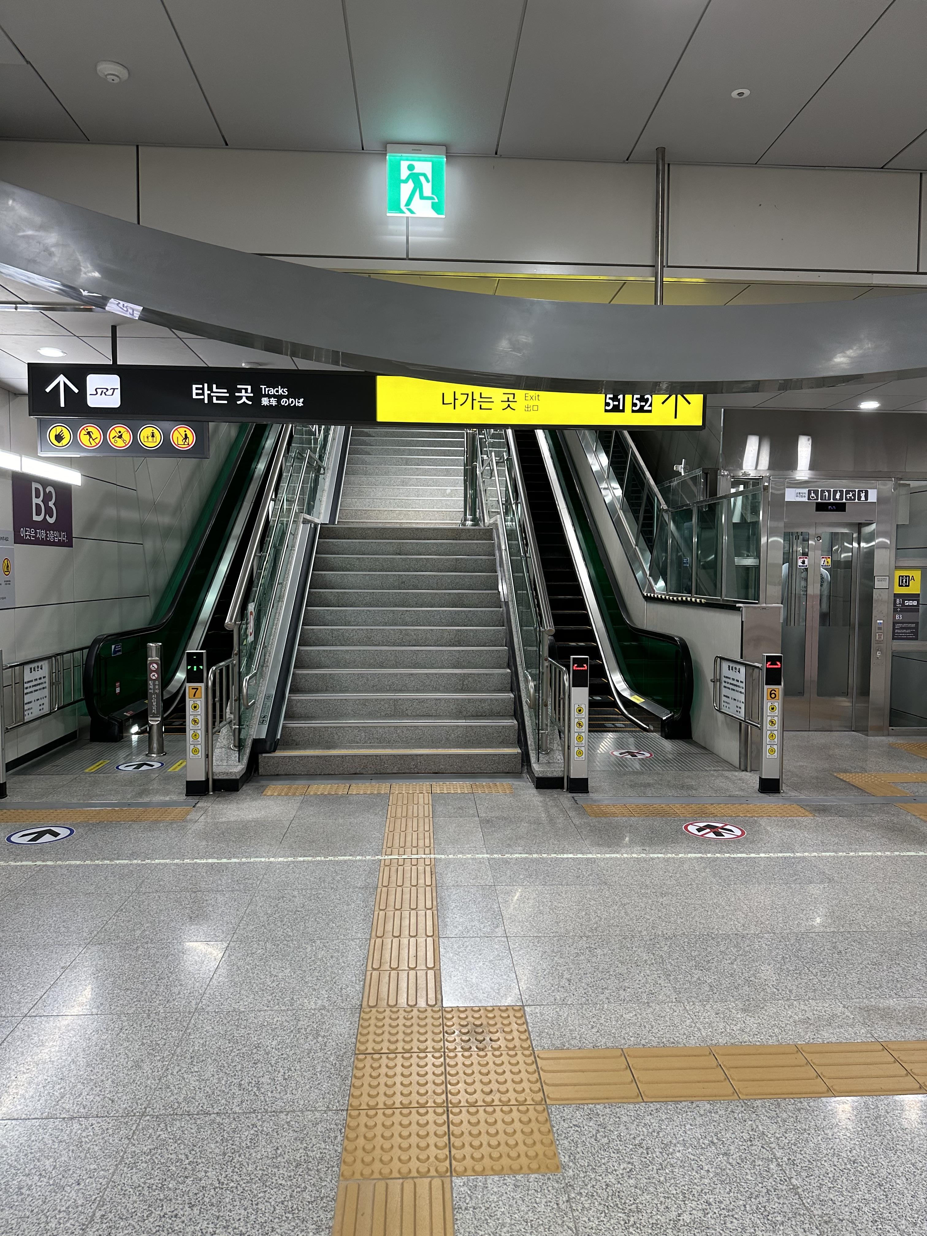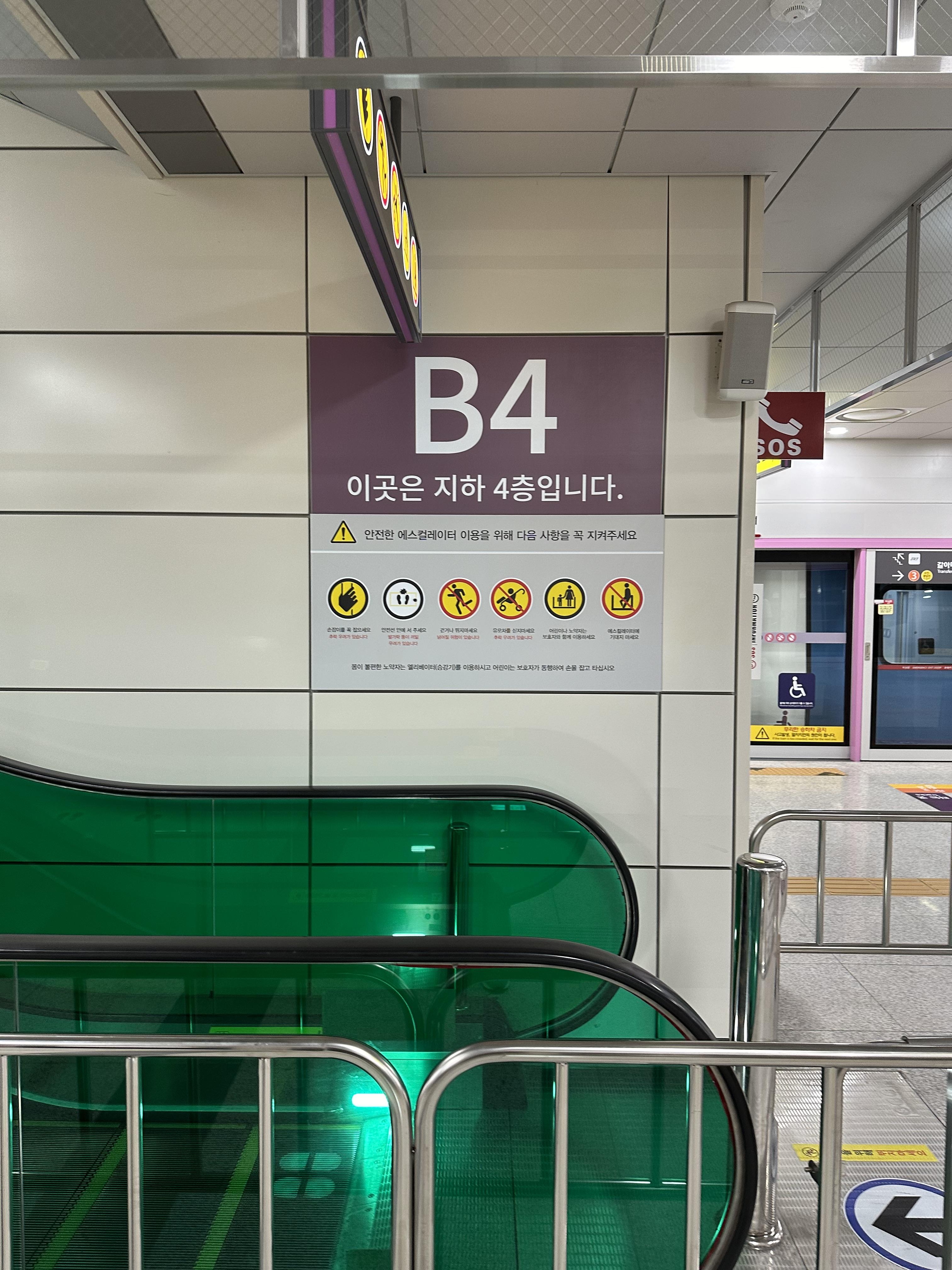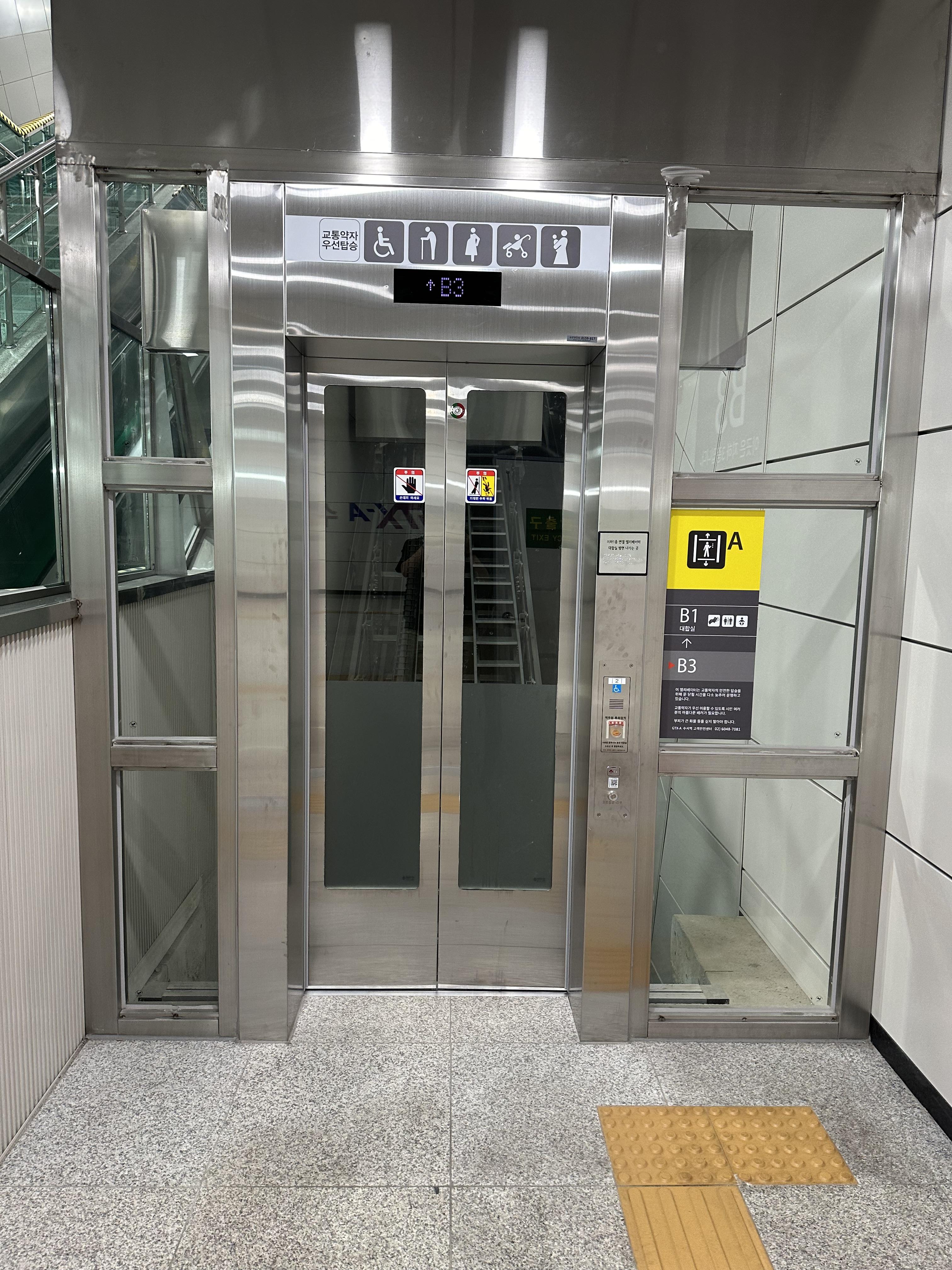 에스컬레이터가 상당히 높게 올라가야 한다는 것이 보여집니다. 엘레베이터도 있습니다. 요즘에 지어지는 역사의 경우 대부분 대심도에 지어지고 기존에 지하철역 엘레베이터처럼 수직이 아닌 경사형으로 되어있는 엘레베이터가 지어지고 있습니다. 경사형 엘레베이터는 대표적으로 서해선과 4호선 초지역 환승 통로에서도 볼 수 있으며 수서역도 마찬가지로 경사형 엘레베이터 였습니다.