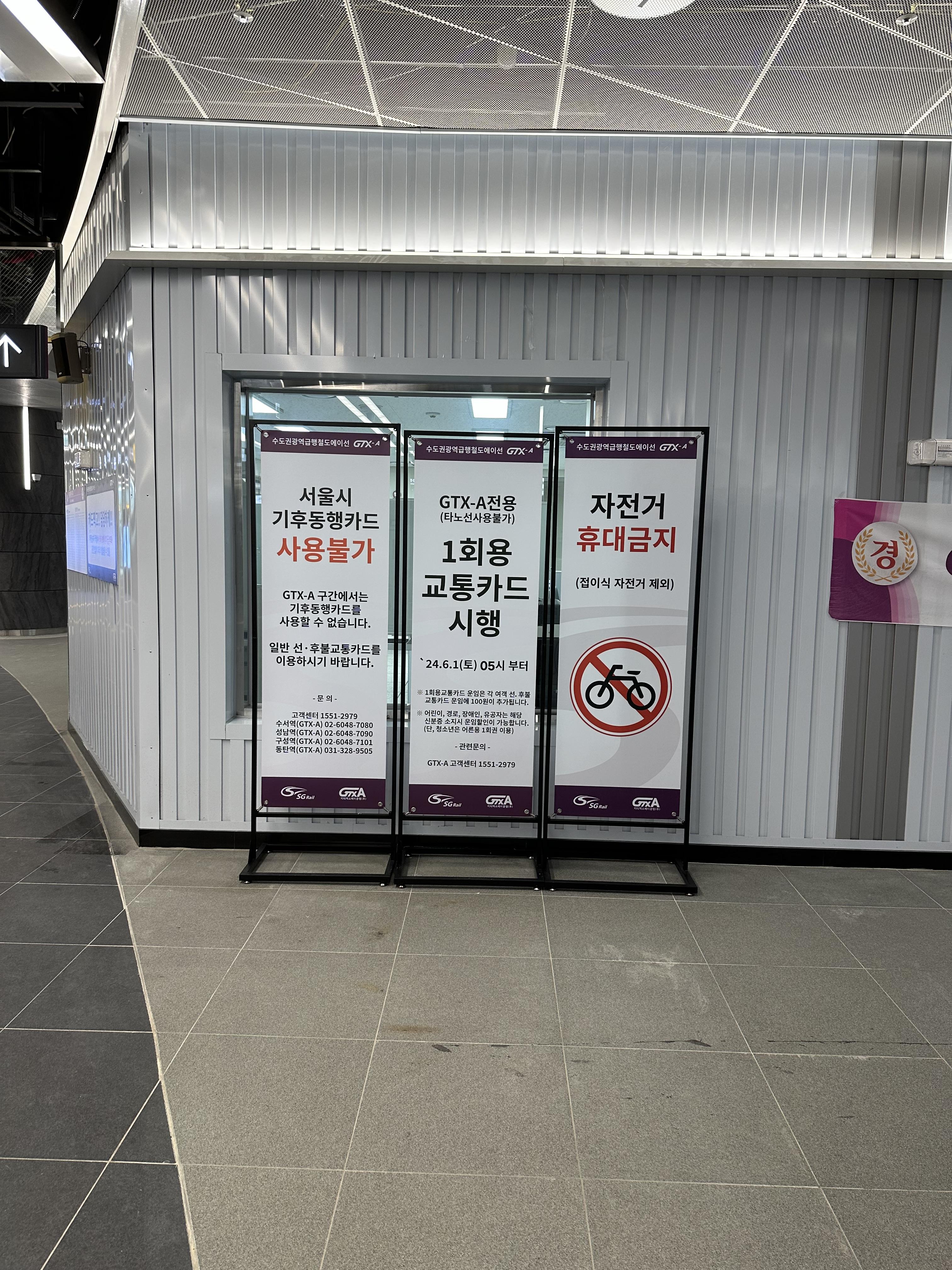 - 1회용 교통카드는 GTX-A 구간 전용으로 타교통수단에서 사용 및 보증금 환급이 불가능이라고 해요. 주말에 발매한 1회용교통카드를 평일에 사용 시 추가 운임이 부과 될 수 있다고 해요.