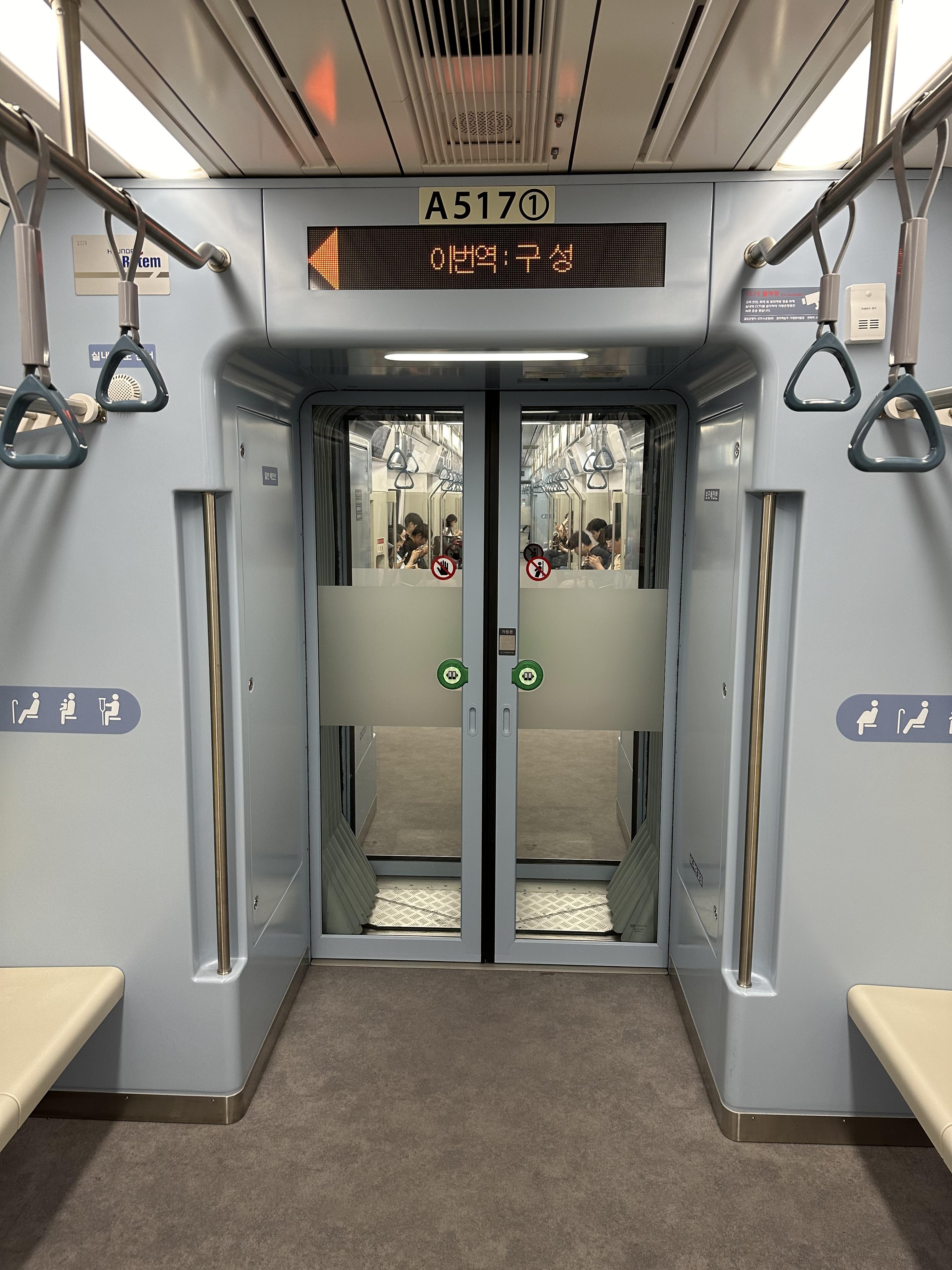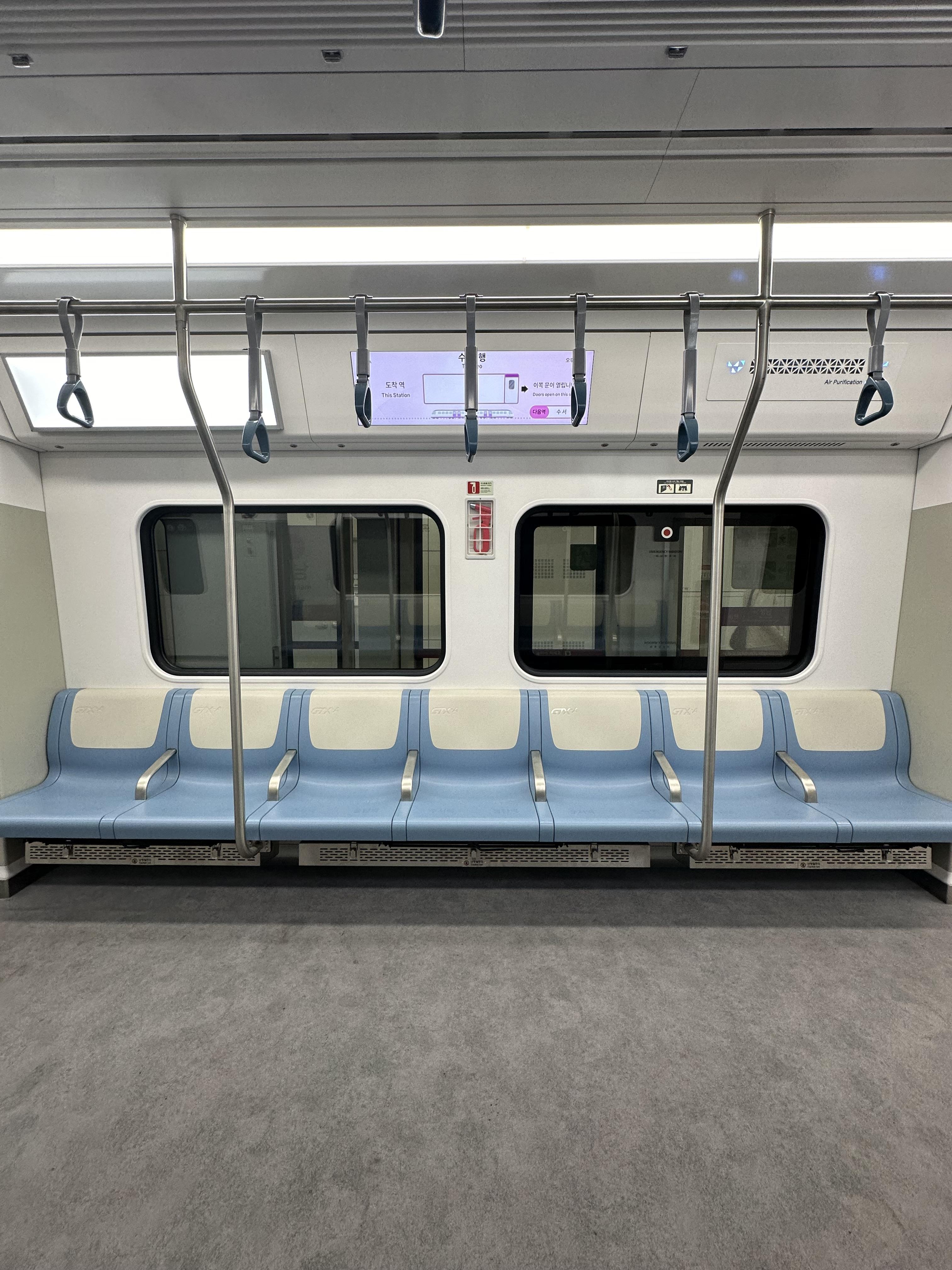출입문 사이에 좌석에는 총 7명이 않을 수 있었으며 좌석 사이사이에는 칸막이가 있어서 자신만의 공간을 느낄 수 있었습니다. 개인주의 성향이 커지면서 최근 제작되는 GTX나 KTX 이음의 경우 사용자의 개인 공간에 많이 신경쓰는 것 같습니다.