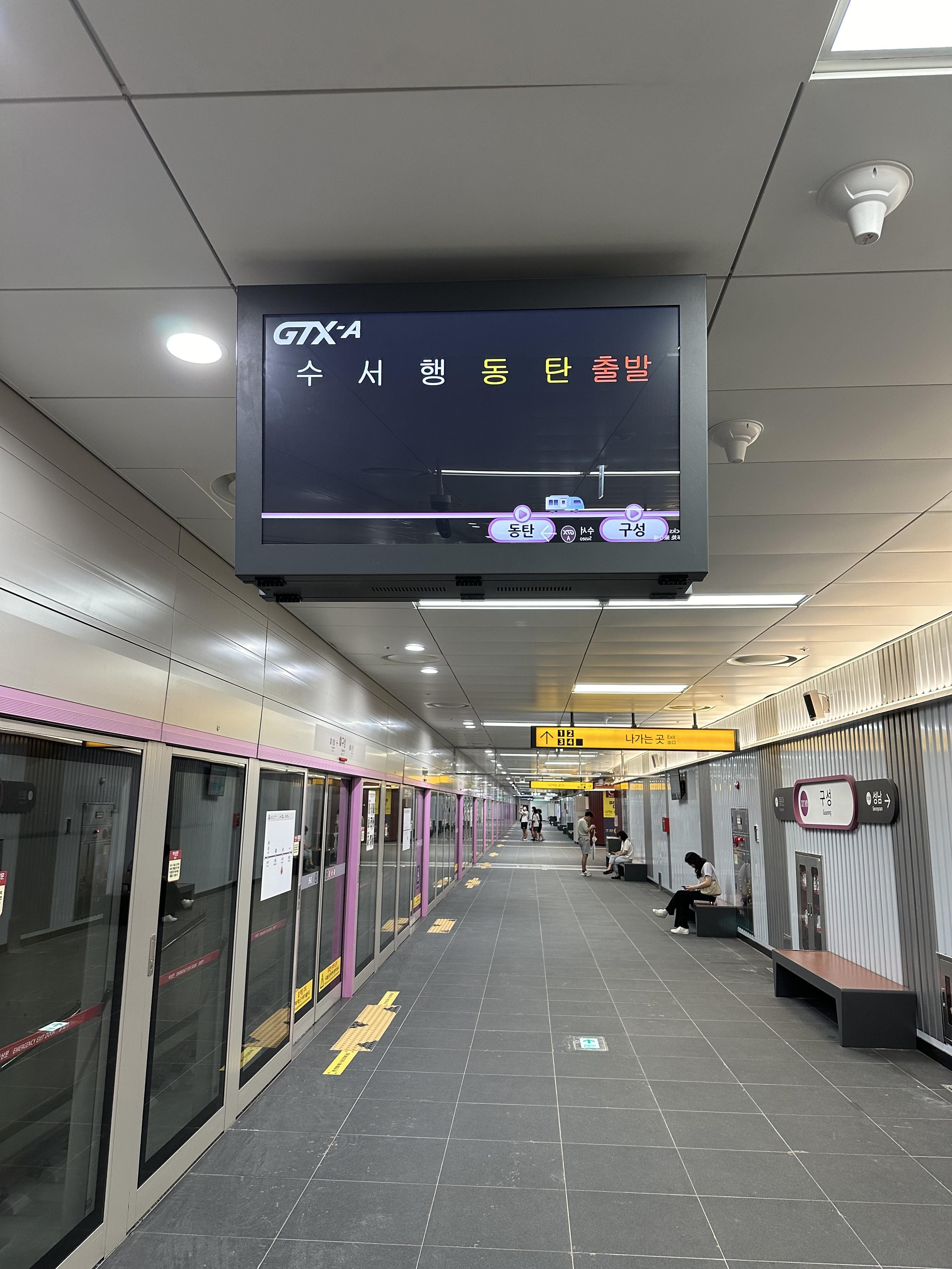 구성역에서 환승태그를 찍고 에스컬레이터를 타고 내려와 수서 방면으로 개찰구에 환승 태그를 하고 짧은 에스컬레이터를 타고 GTX-A 구성역 승강장에 도착했습니다.