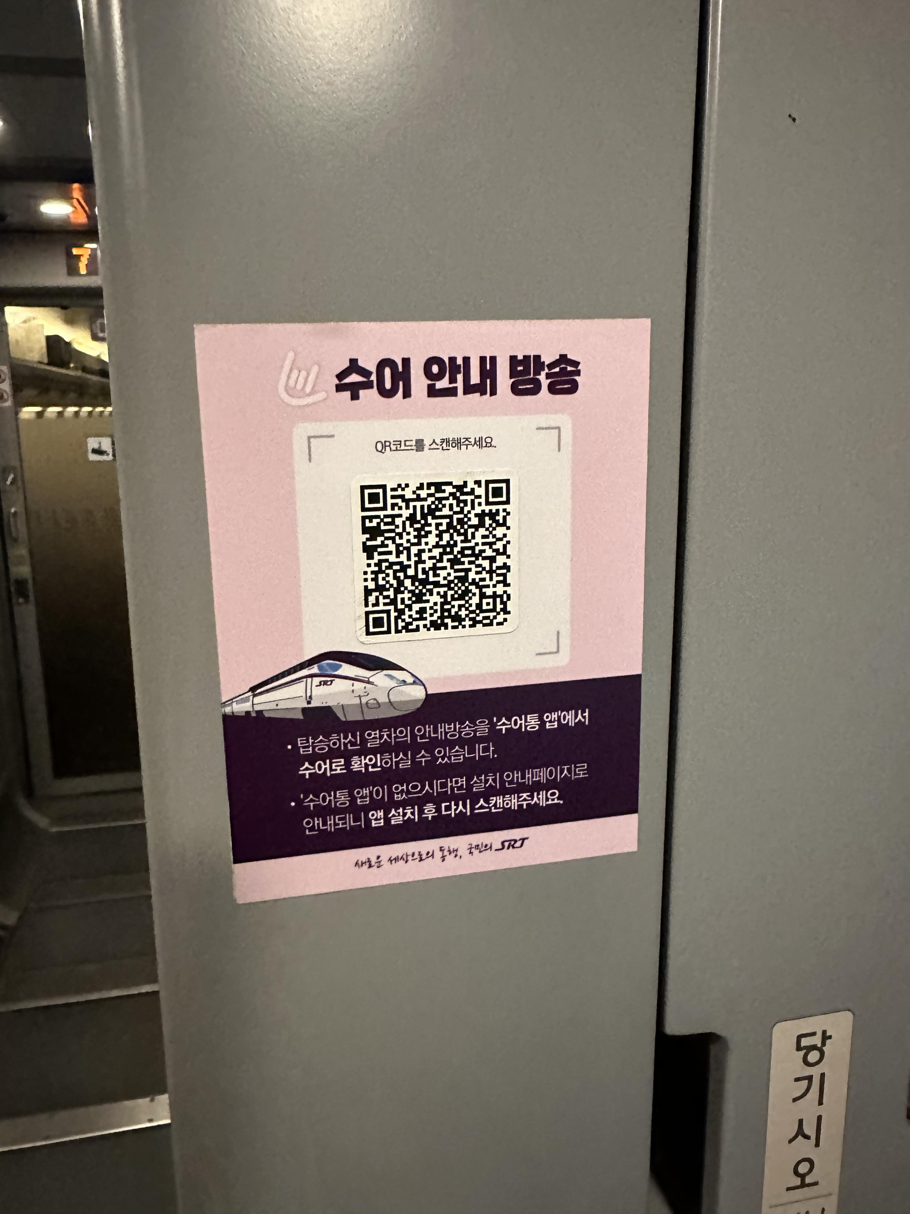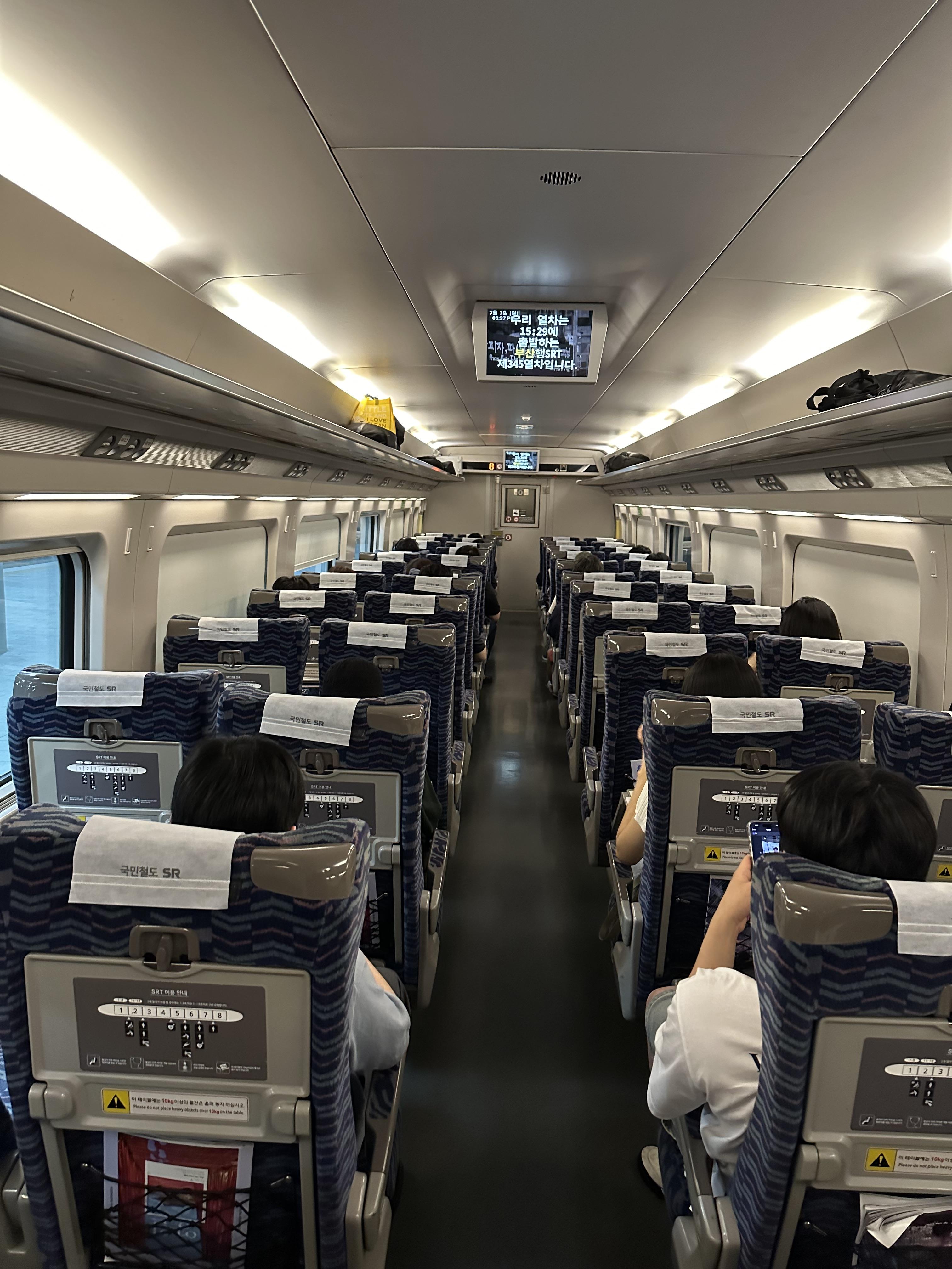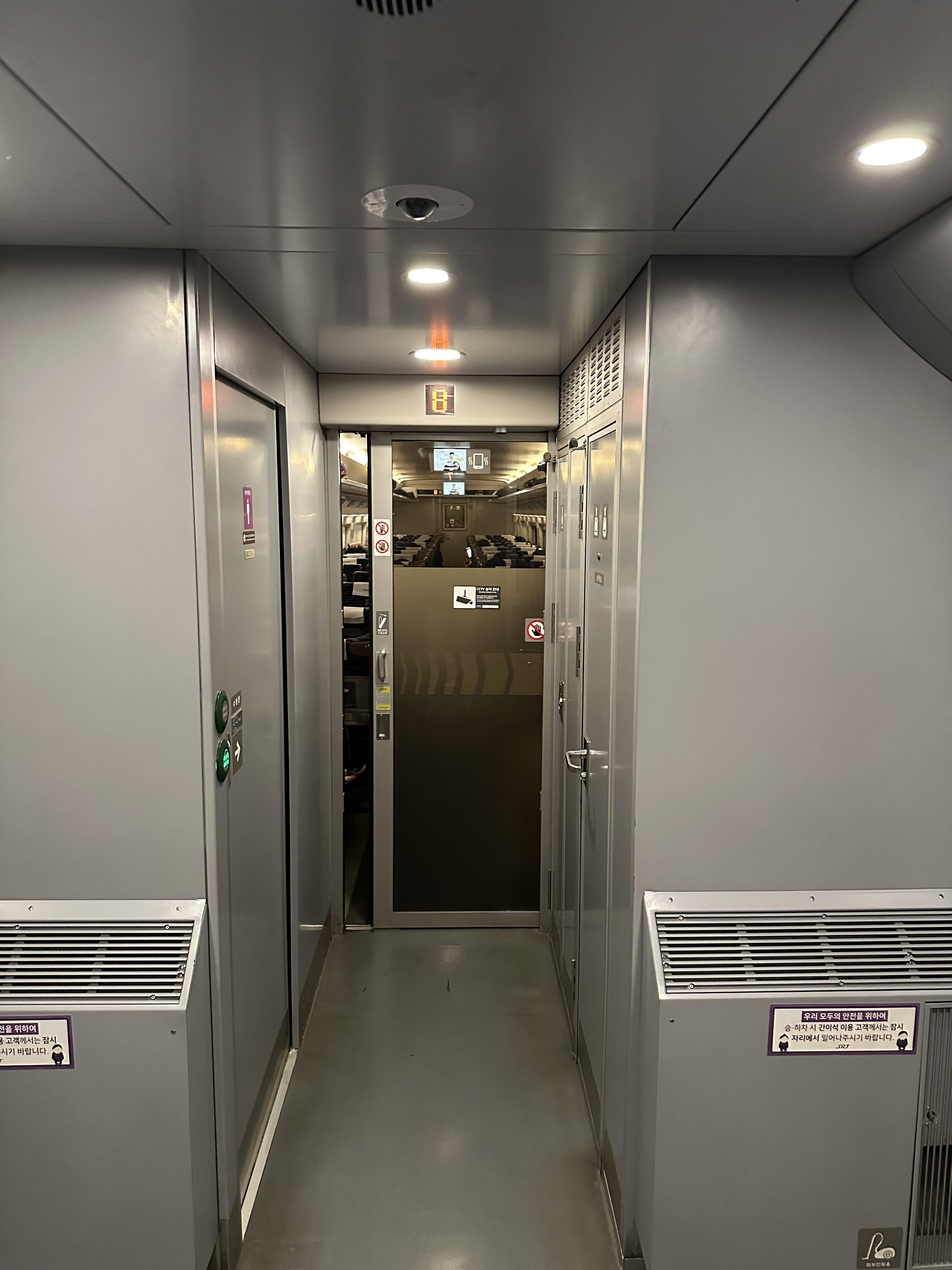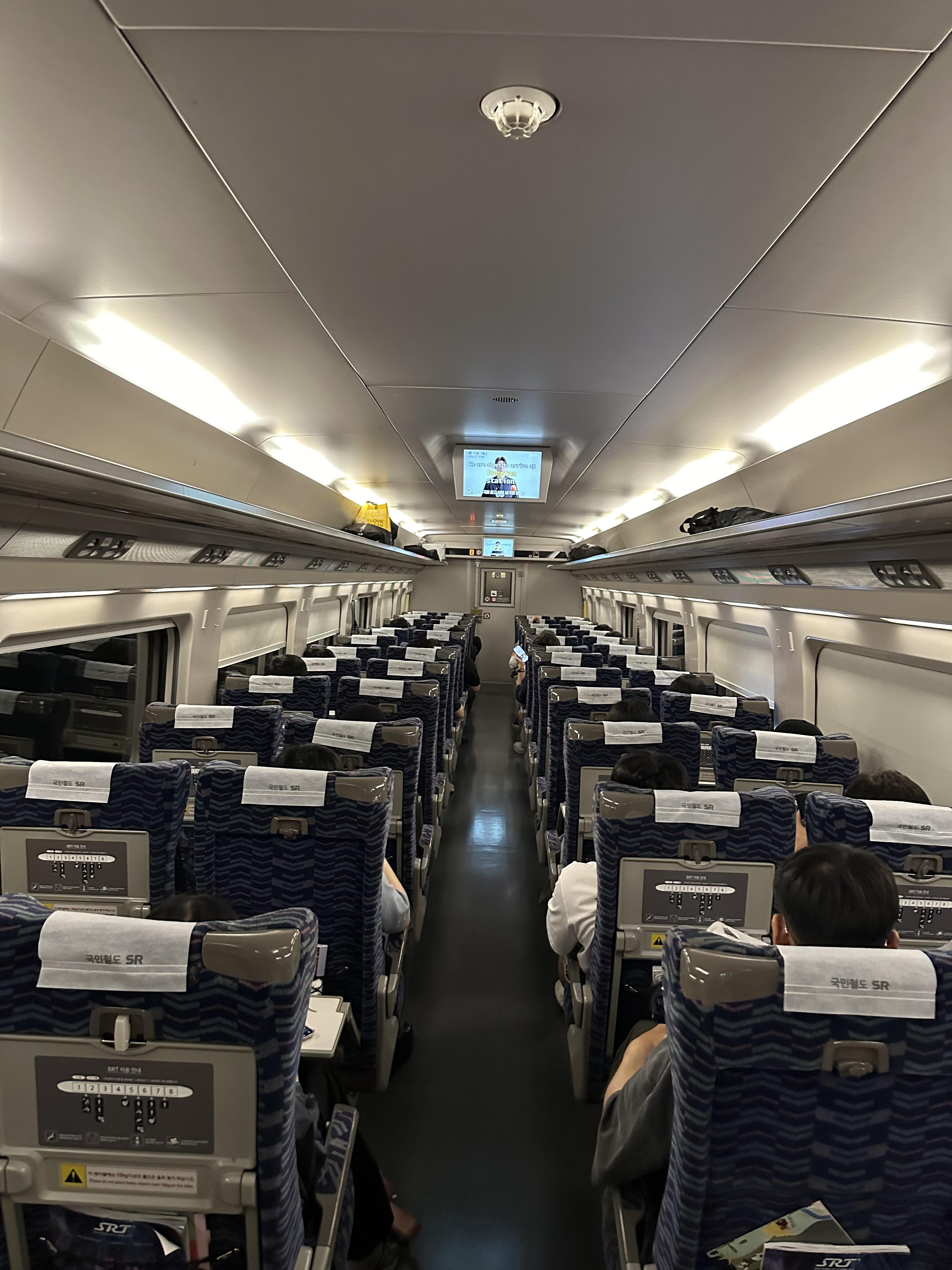 SRT 뿐만 아니라 KTX나 KTX산천, KTX이음, ITX 청춘열차 모두 출입문 앞에는 이렇게 작은 의자가 있습니다. 자유석이라고 불리는 의자입니다. 자유석이라는게 열차 예매할 때 선택 할 수도 있습니다. 다만 출입문 바로 앞에 있기 때문에 여름에는 문이 열릴때마다 뜨거운 바람과 겨울에는 찬바람을 느껴야 하기 때문에 가급적이면 객실내 좌석을 미리 미리 끊는 편을 추천합니다.