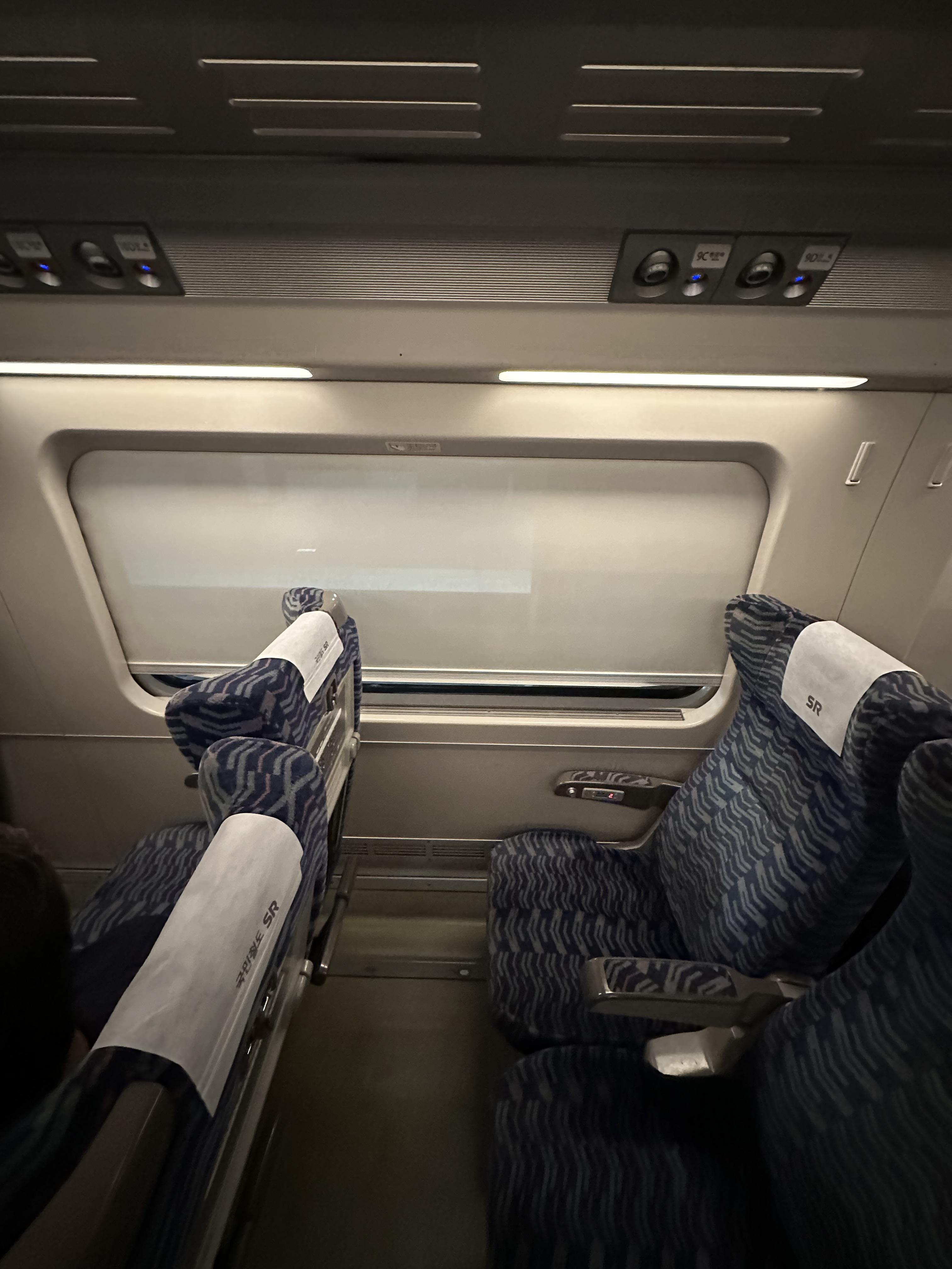 SRT는 수서부터 평택 지제까지는 지하이다보니 어두운 터널만 보이는 창문을 바라봐야 했습니다. 창문을 찍고 싶은데 어두운 터널이다보니 창문에 계속 비춰서 찍지 못했습니다.