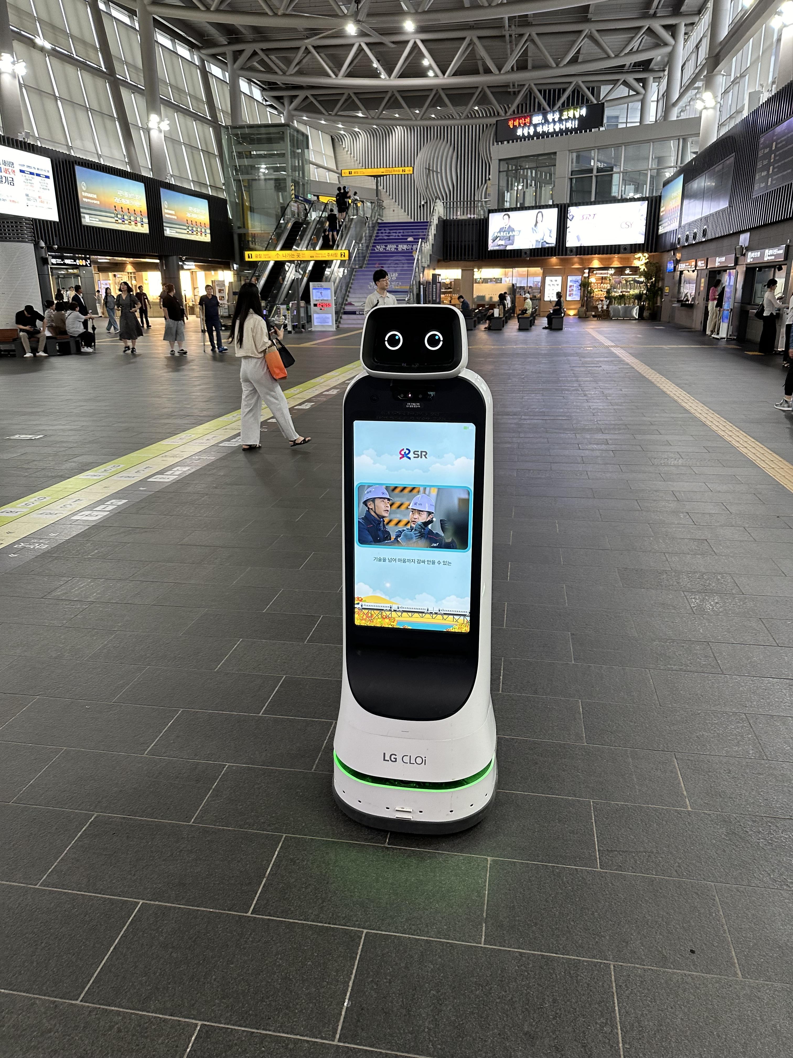 요즘에는 챗봇도 나오고 있습니다. 이미 오프라인에서는 로봇이 돌아다니고 있습니다. 그리고 로봇을 선택하면 로봇이 수서역에 대한 다양한 정보를 제공 하고 있습니다.