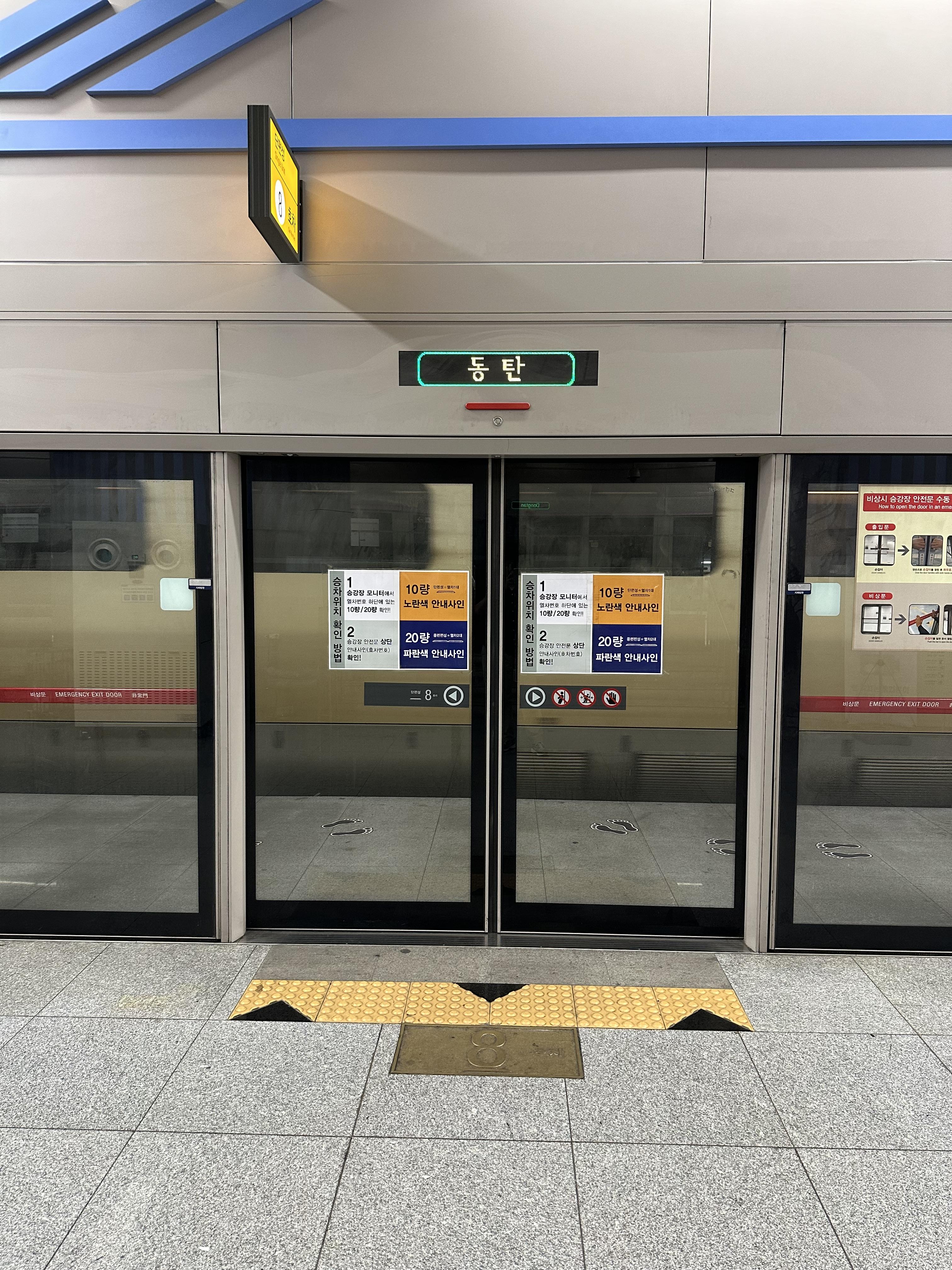 그러나 동탄역의 경우 지하에 있고 일부 SRT의 경우 고속으로 지하 동탄역을 통과해야기하기 때문에 사고 우려부분에서 지하에 스크린도어를 설치했습니다. 국내에서는 저상홈 플랫폼에 지하철과 같은 스크린도어를 설치한 최초의 저상홈 스크린도어 역이 동탄역입니다.